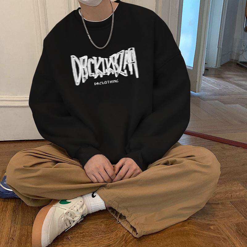 블랙 라운드넥 스웨트셔츠 플러스 플리스-2350【GL】