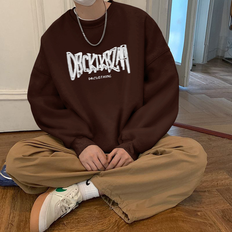 브라운 라운드넥 스웨트셔츠 플러스 플리스 스타일-2350【GL】