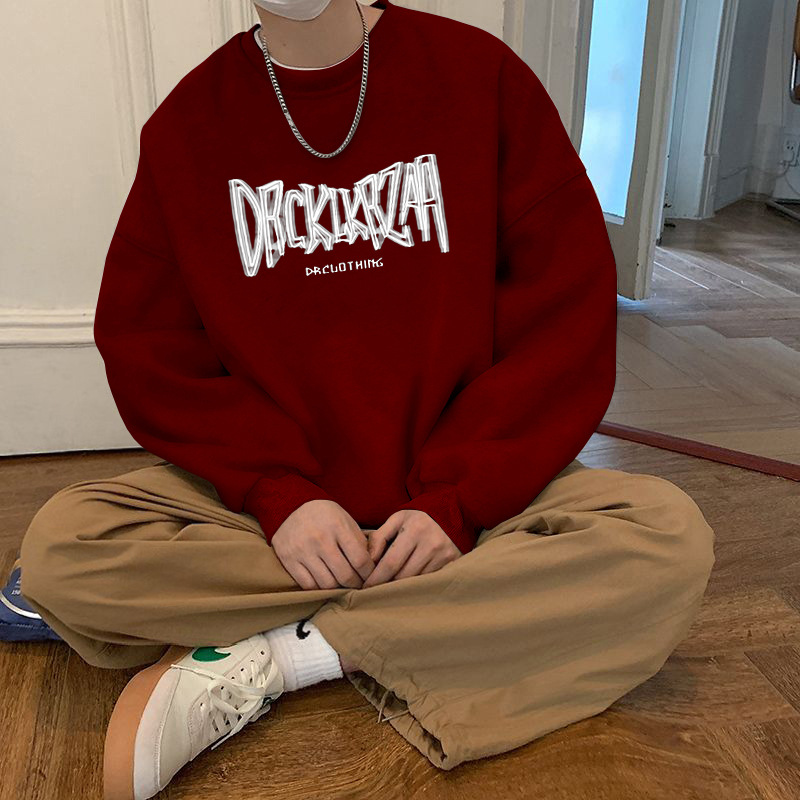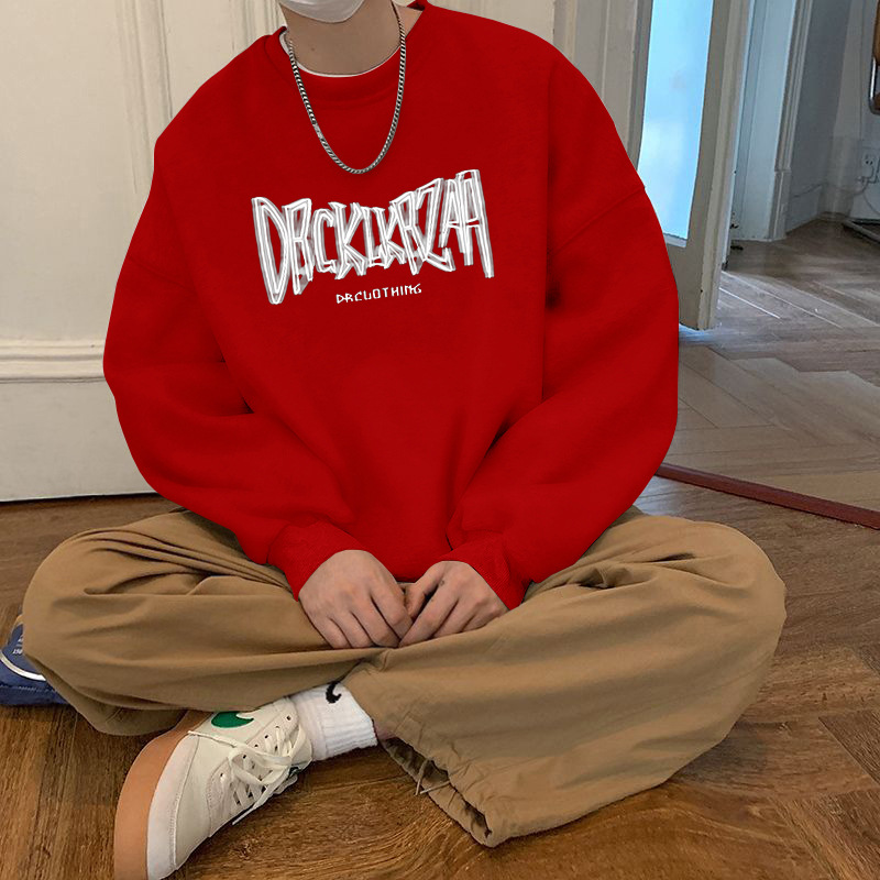 빅 레드 라운드넥 스웨트셔츠 플러스 벨벳 스타일-2350【GL】