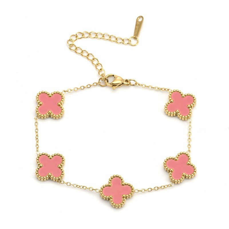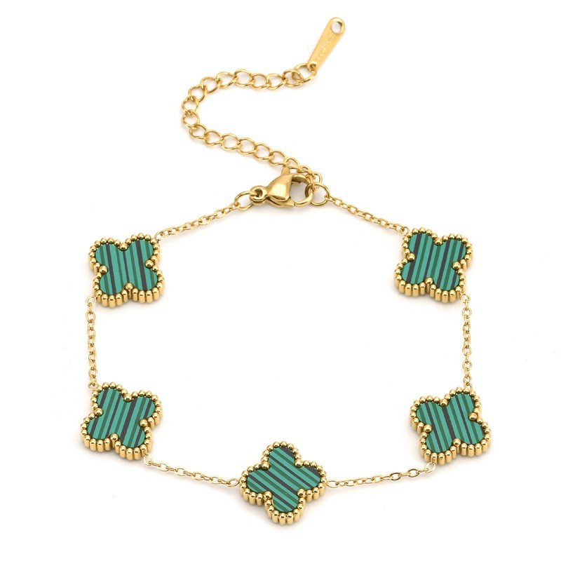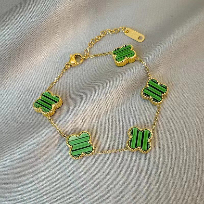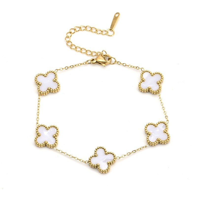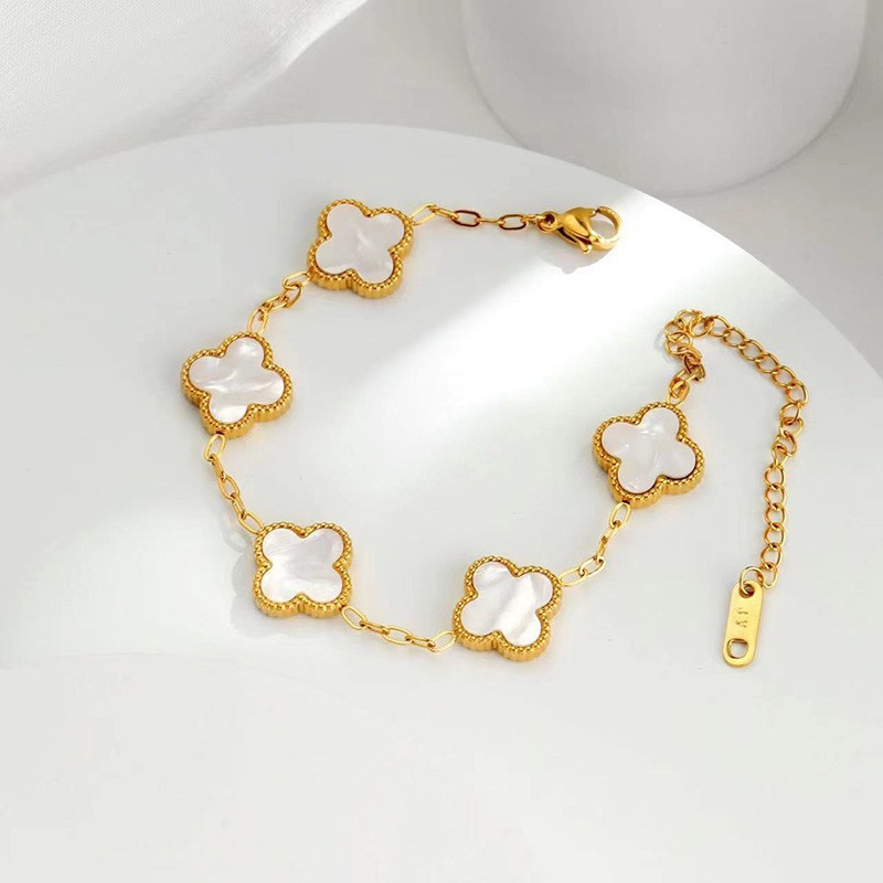 유럽과 미국의 새로운 스타일, 다재다능하고 행운을 가져다주는 네잎 클로버 팔찌, 고급스러운 18K 골드 양면 자개 스테인리스 스틸 장식