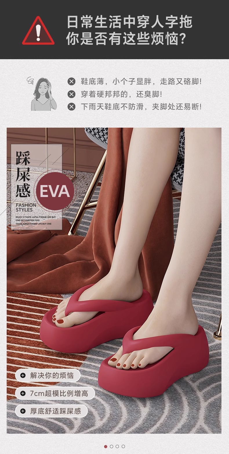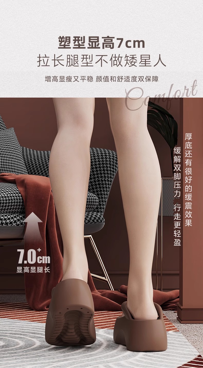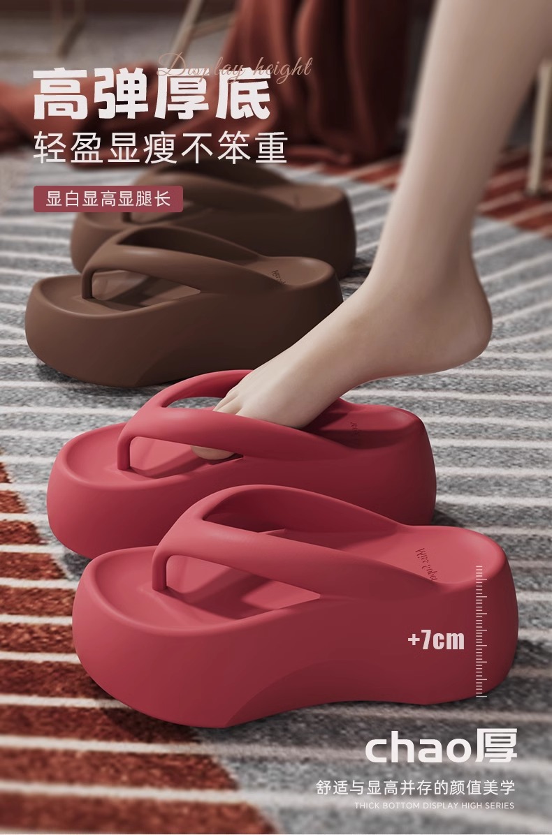 7.0 두꺼운 밑창 높이 증가 똥 느낌 플립 플롭 여성의 여름 실내 가정 및 외장형 하이 엔드 비치 해변 착용은 뾰족한 발이 아닙니다.