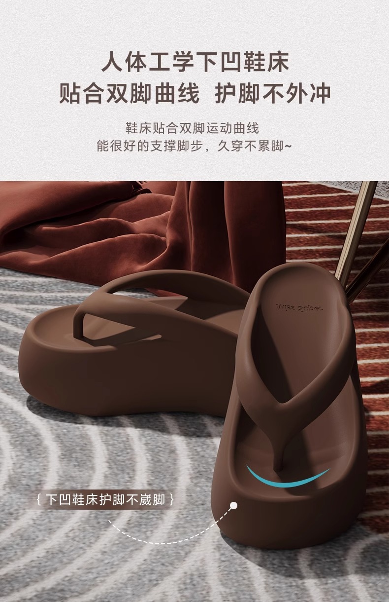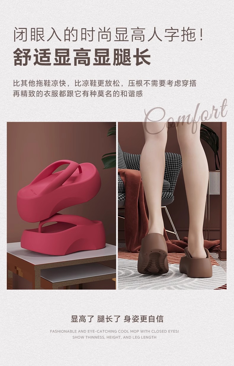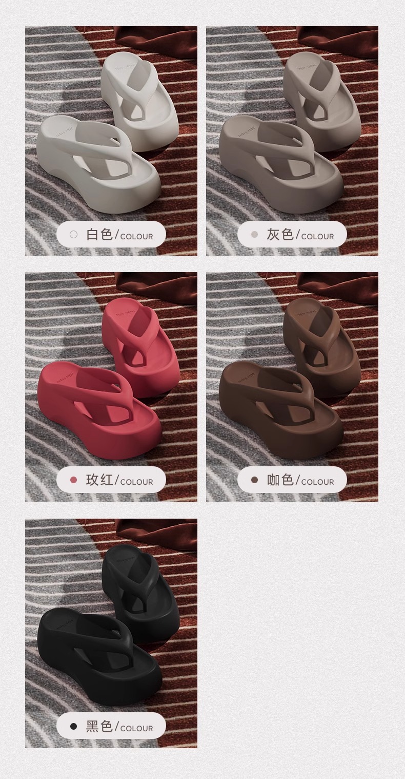 7.0 두꺼운 밑창 높이 증가 똥 느낌 플립 플롭 여성의 여름 실내 가정 및 외장형 하이 엔드 비치 해변 착용은 뾰족한 발이 아닙니다.