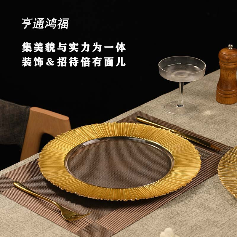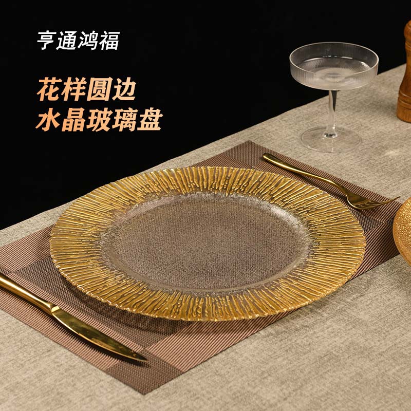 북유럽 스타일 식기 Ins 스타일 유리 플레이트 패턴 라운드 에지 스테이크 웨스턴 플레이트 크리스탈 유리 보헤미안 스타일