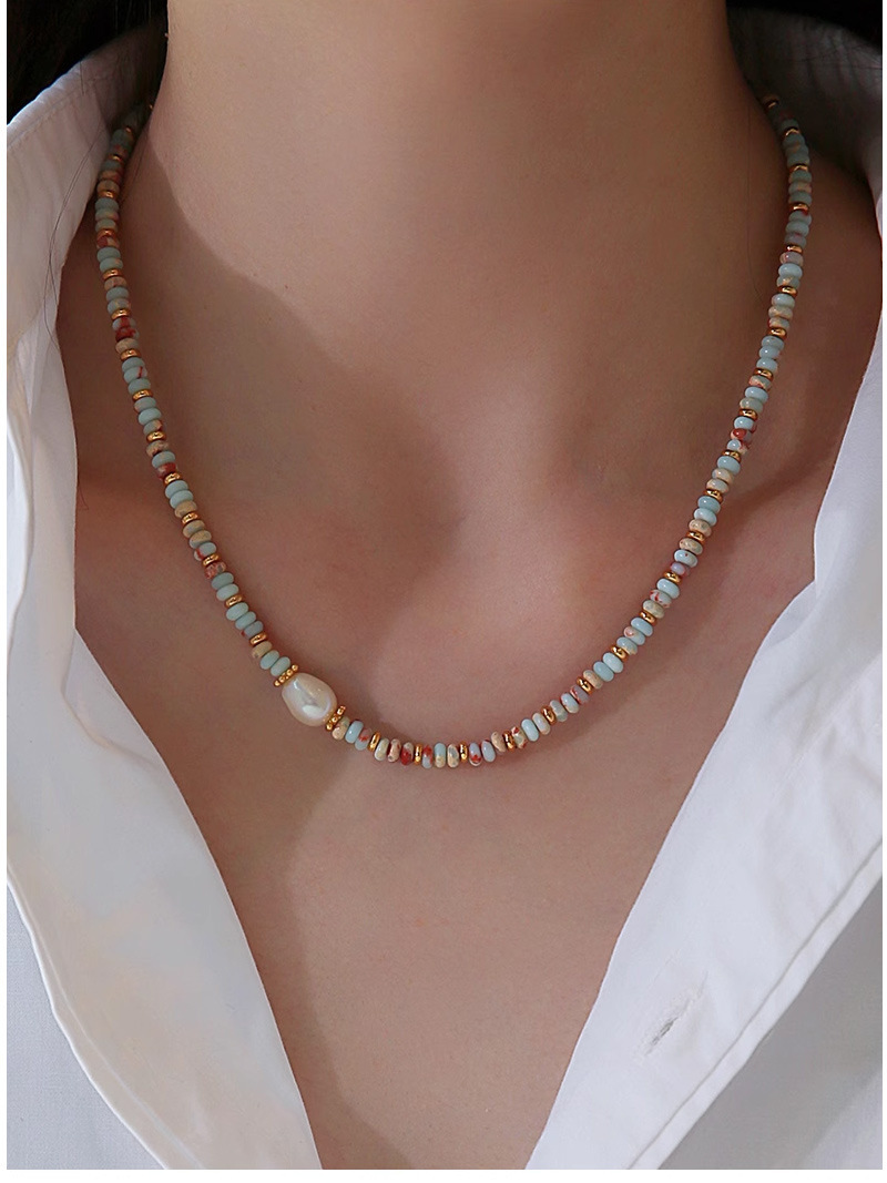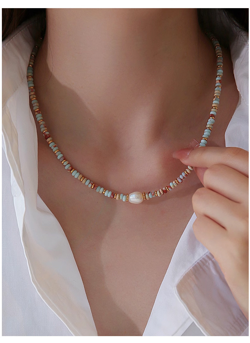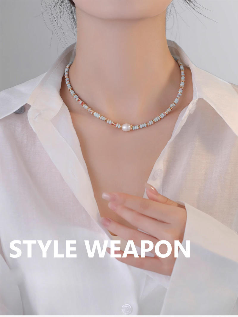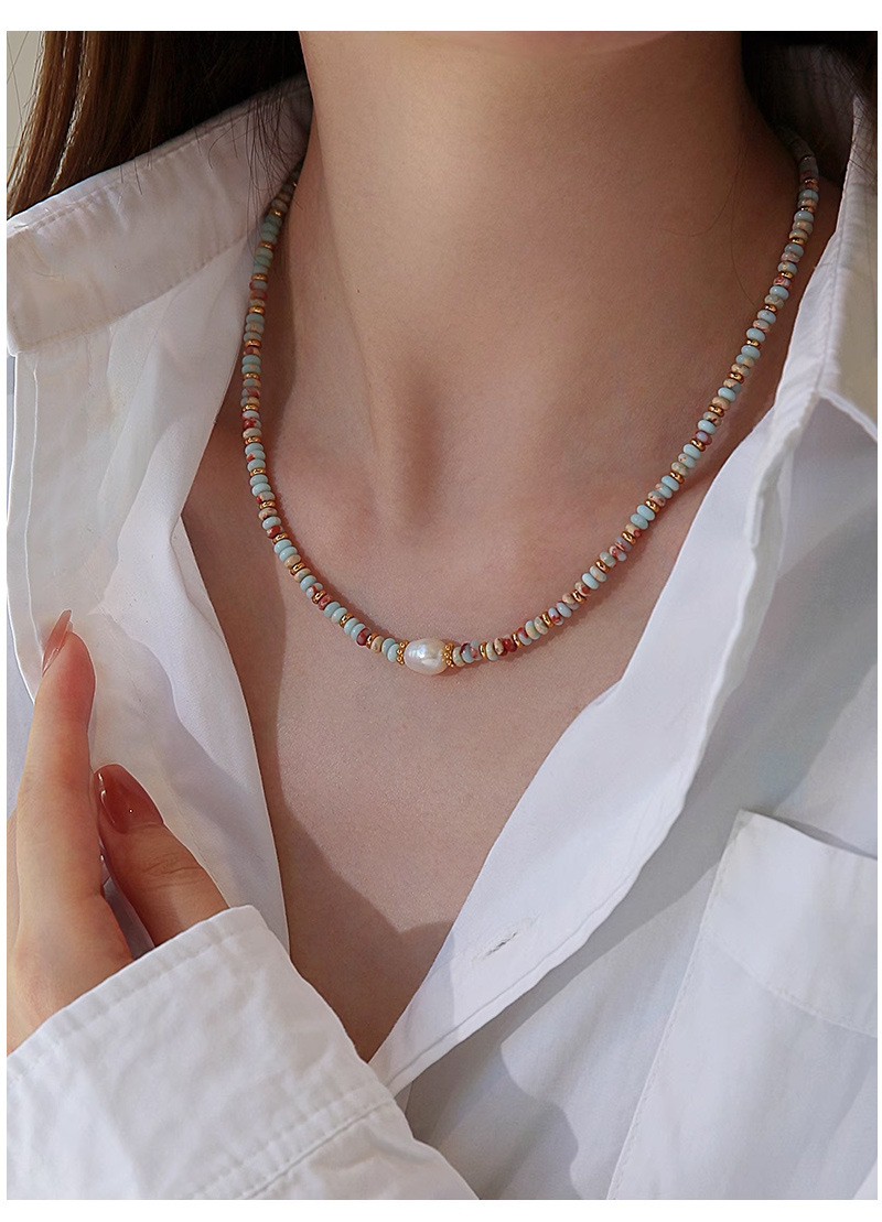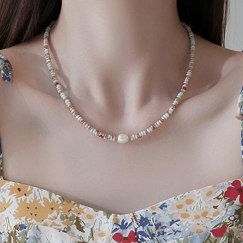 컬러 도파민 Shoushan 돌 담수 진주 목걸이 여성 기질 패션 틈새 가을 및 겨울 구슬 목걸이 보석