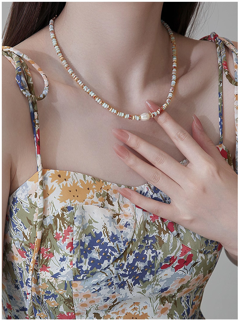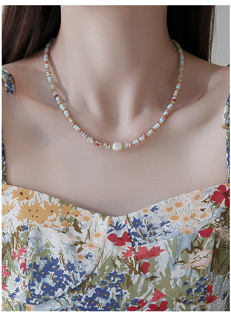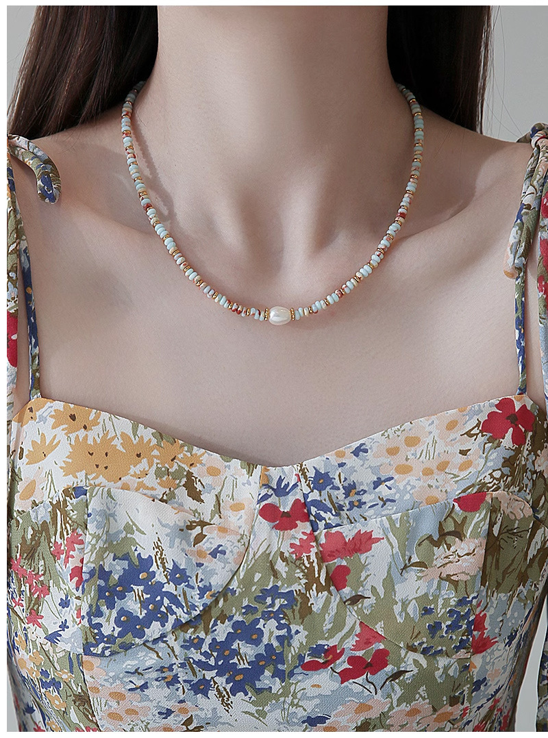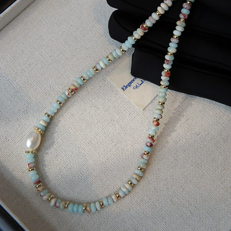컬러 도파민 Shoushan 돌 담수 진주 목걸이 여성 기질 패션 틈새 가을 및 겨울 구슬 목걸이 보석