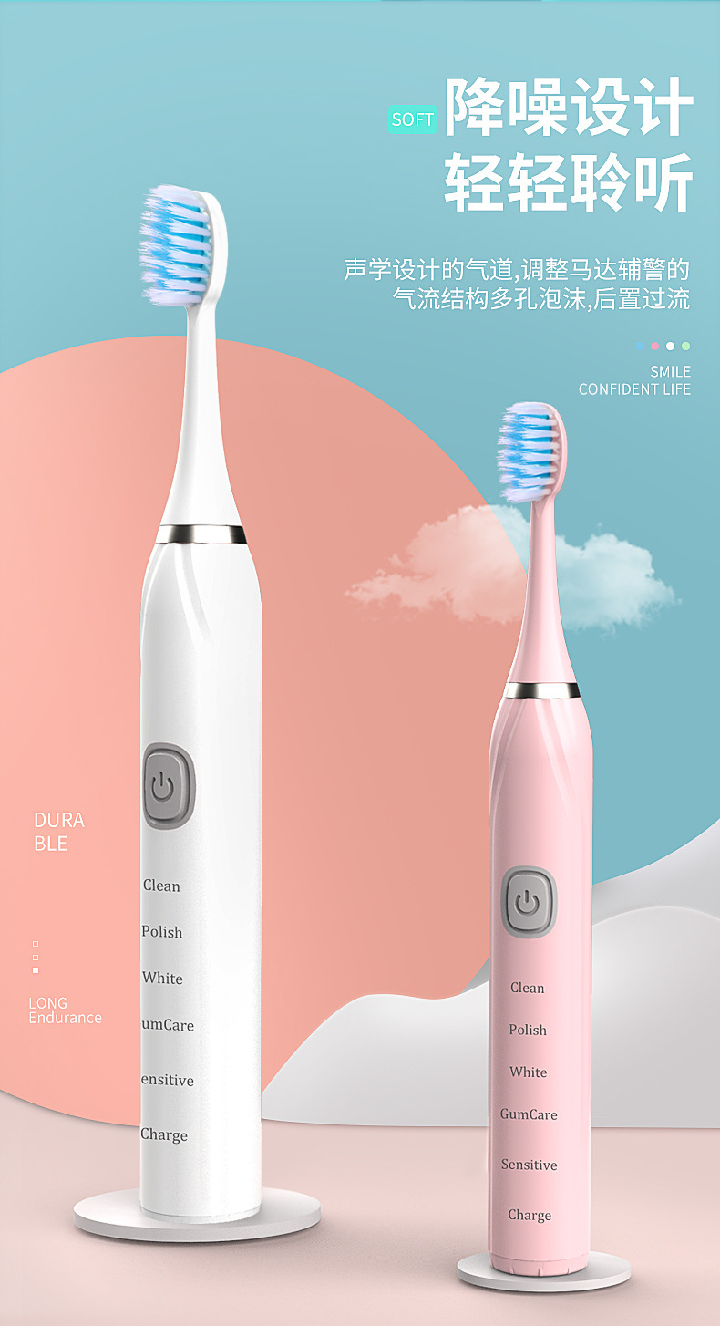 공장 직송 진동 소프트모 칫솔 치아세정기 충전식 자동 음파식 성인용 전동 36dB 저소음