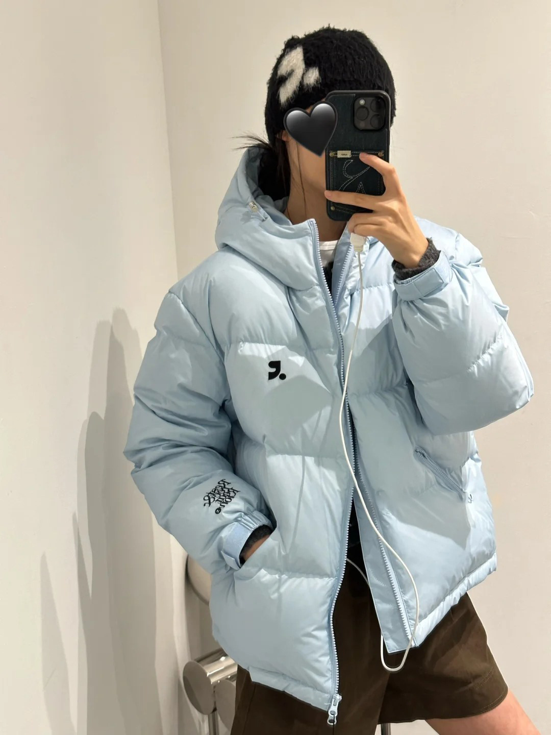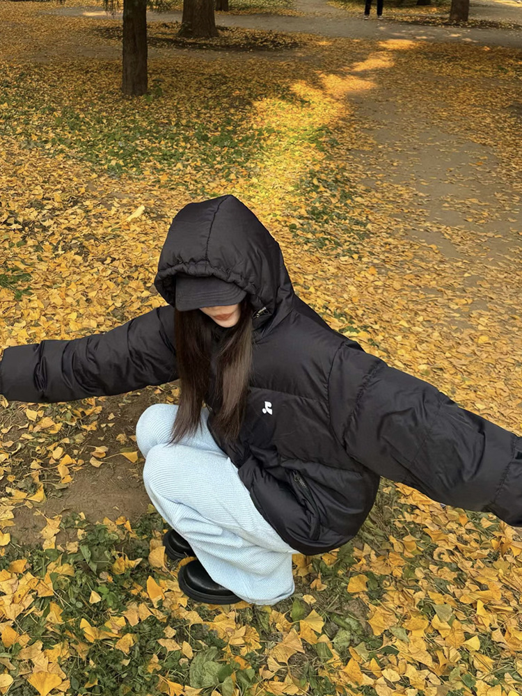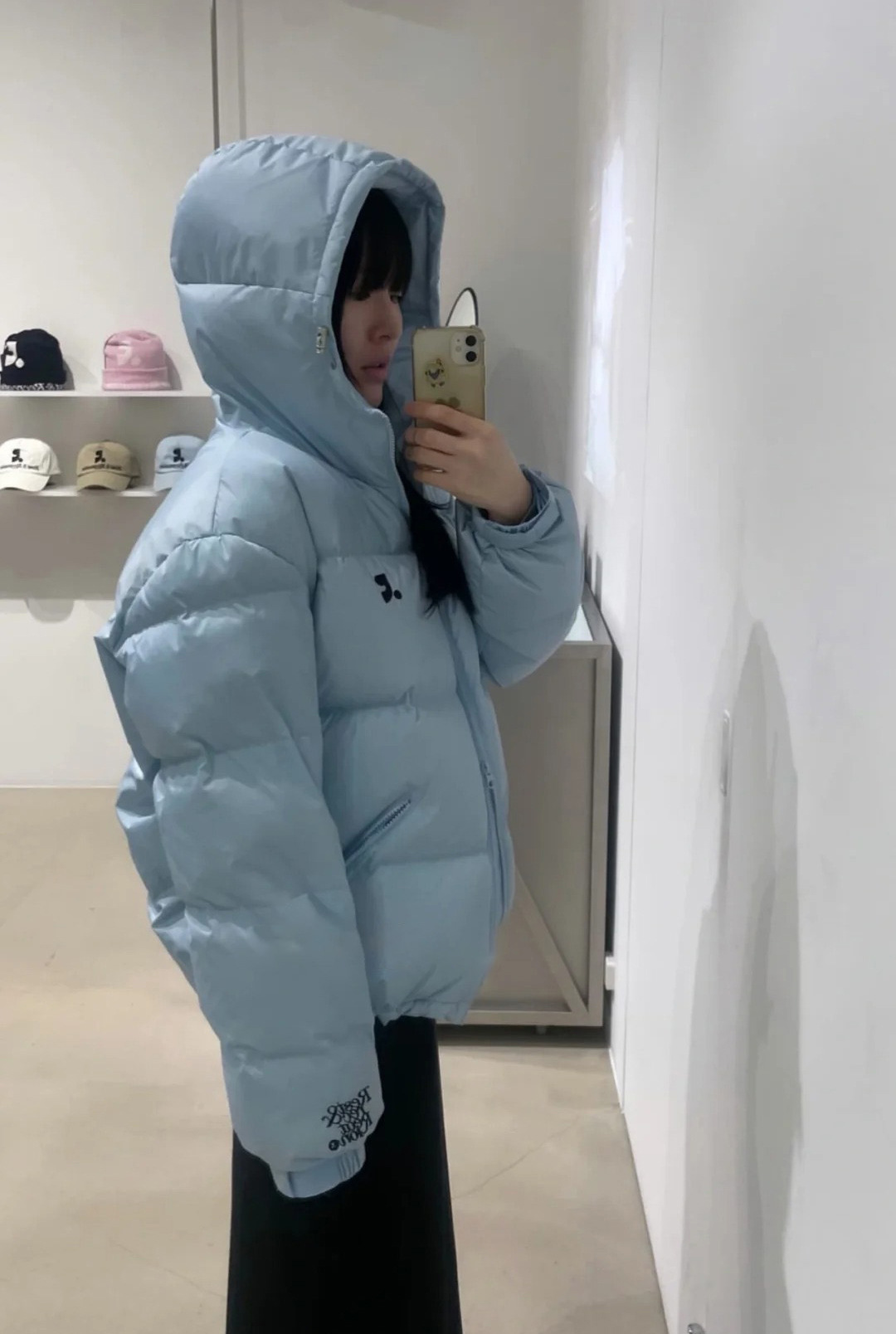재고 있음 단색 후드 패딩 재킷 여성용 r&r 한국 스타일 인스 디자이너 트렌드 2024 화이트 덕다운 재킷
