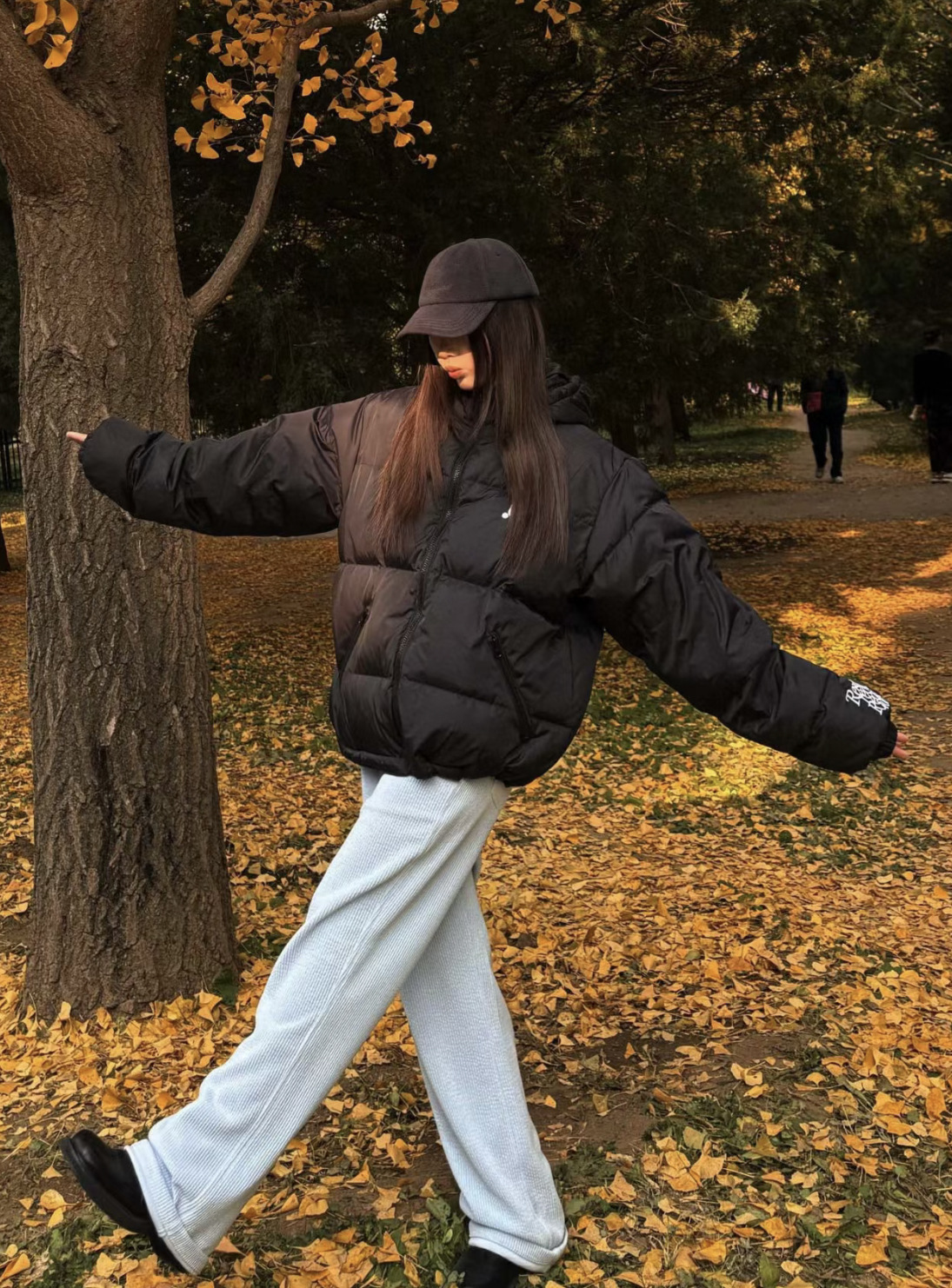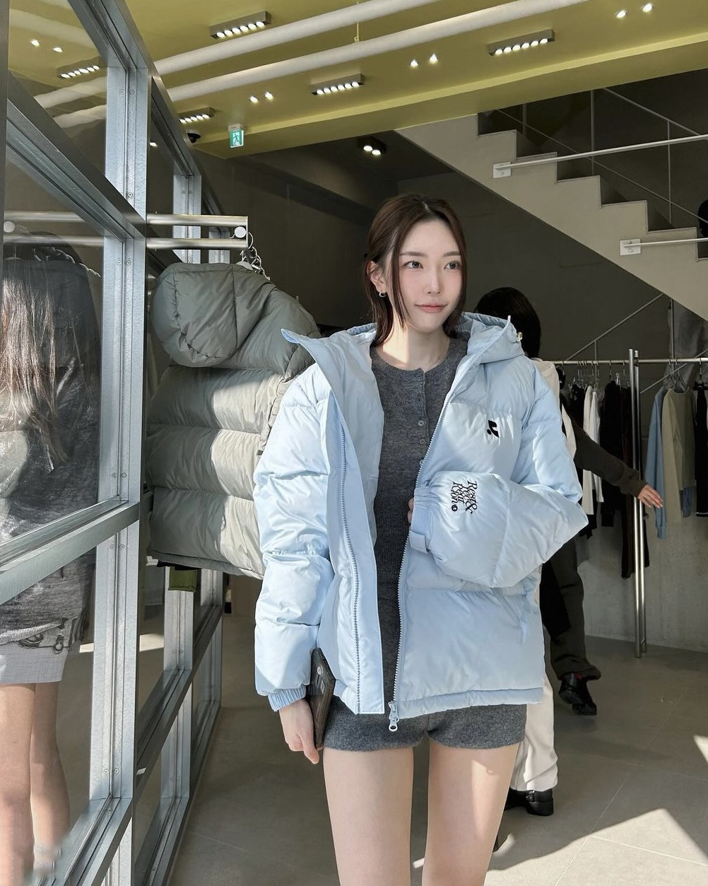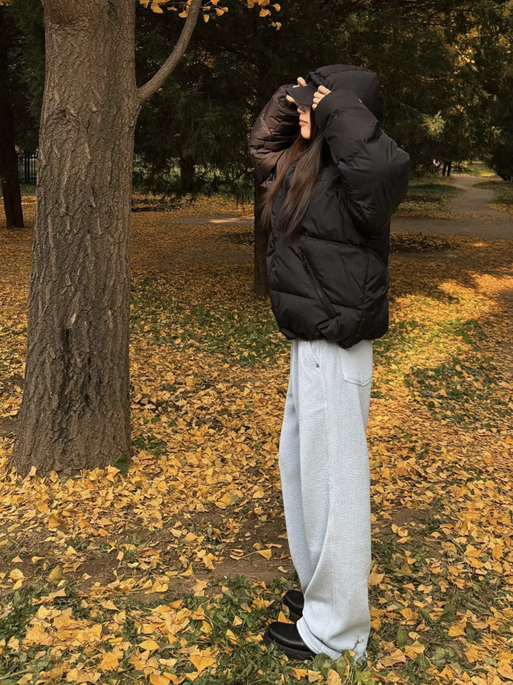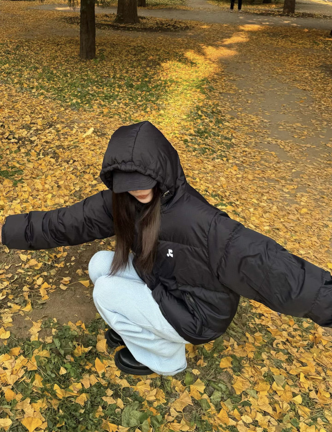 재고 있음 단색 후드 패딩 재킷 여성용 r&r 한국 스타일 인스 디자이너 트렌드 2024 화이트 덕다운 재킷