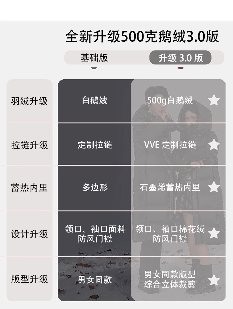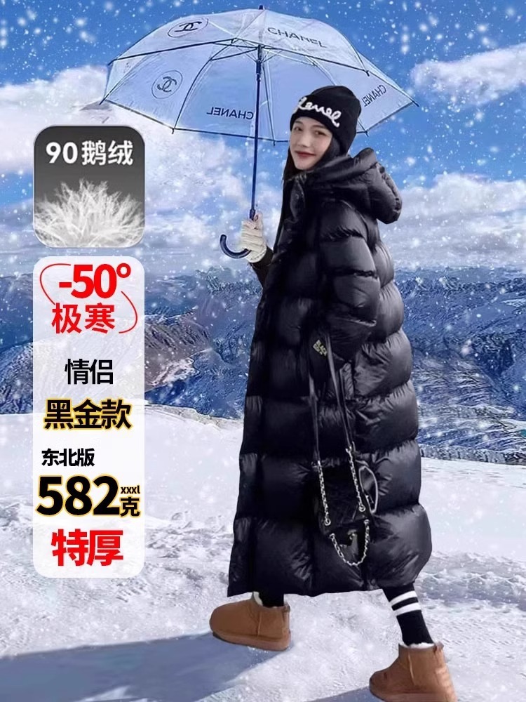 동북 관광 방한 의류 500g 거위 다운 재킷 여성 긴 두꺼운 하얼빈 장비 커플 재킷 남성