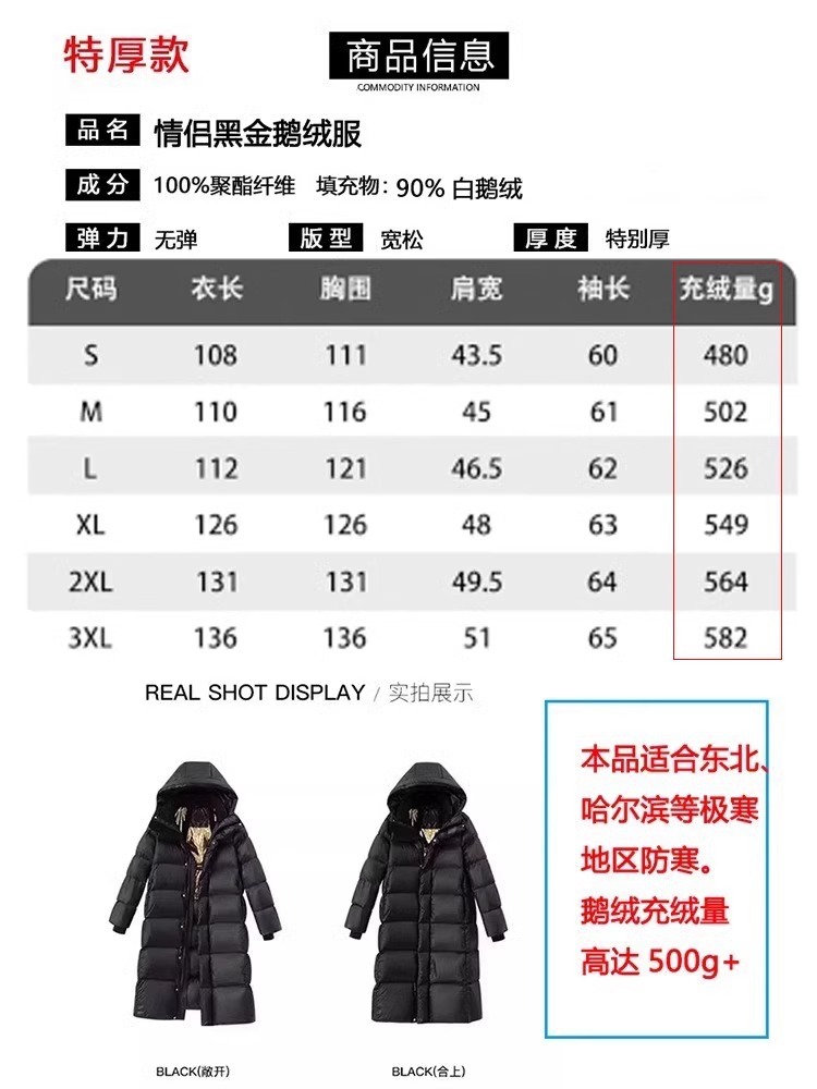 500개 이상의 두꺼운 방한 구스다운 다운 재킷 하얼빈 여행 장비