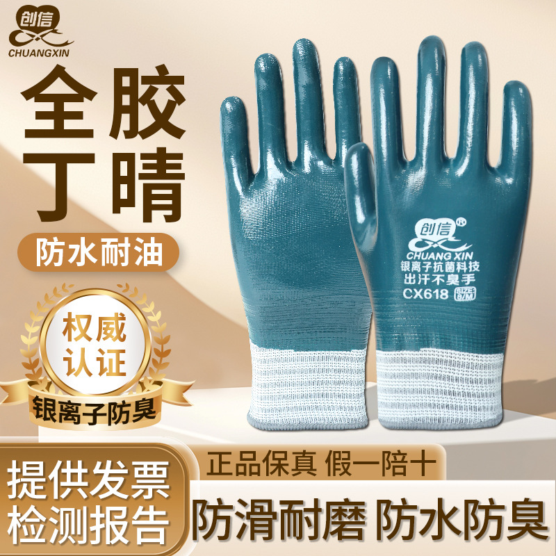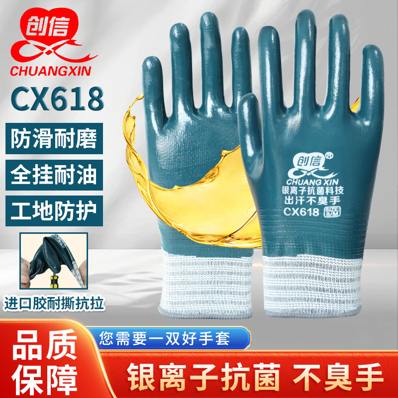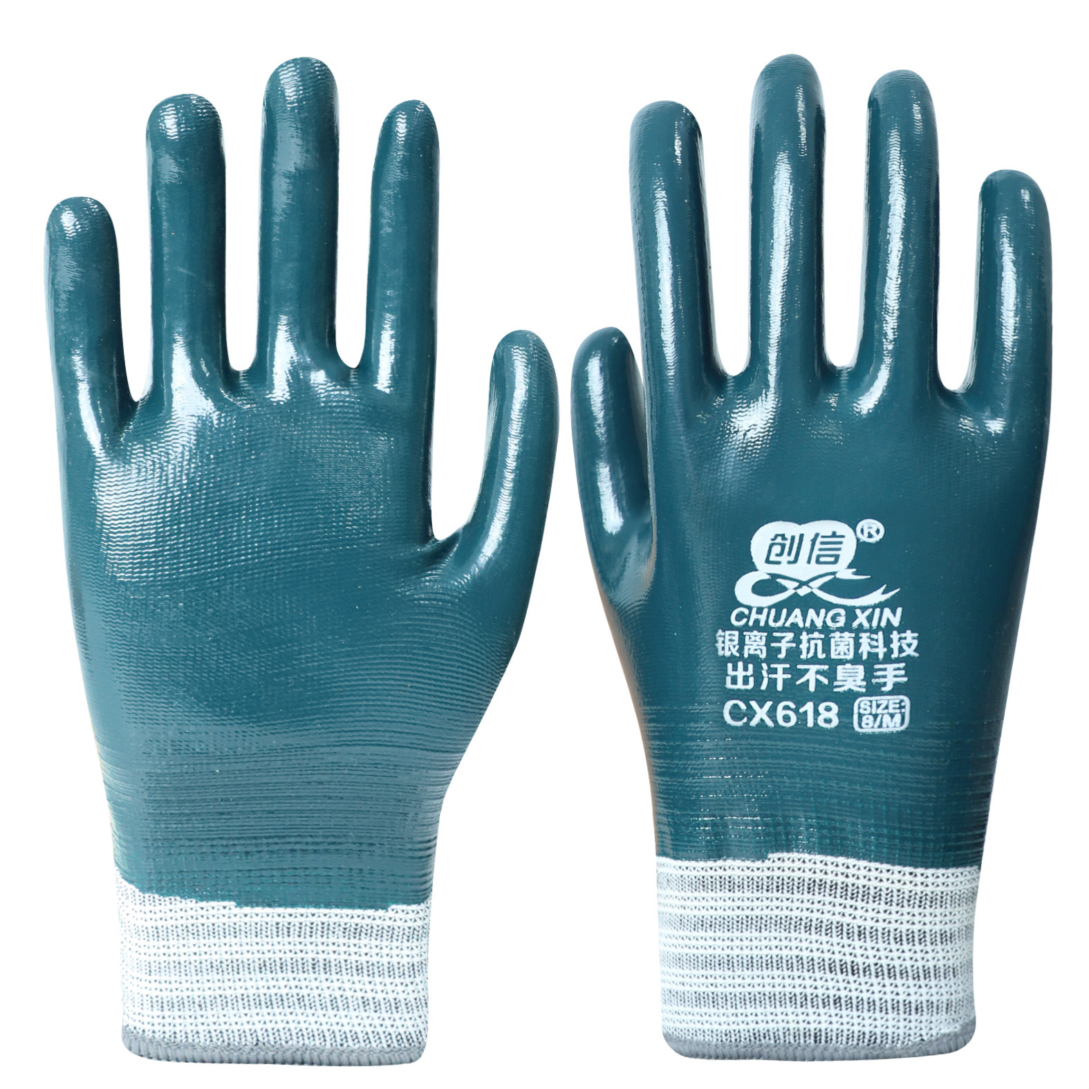 Chuangxin 니트릴 장갑 노동 보호 작업 내마모성 두꺼운 미끄럼 방지 방수 오일 현장 작업 CX618 라텍스 장갑