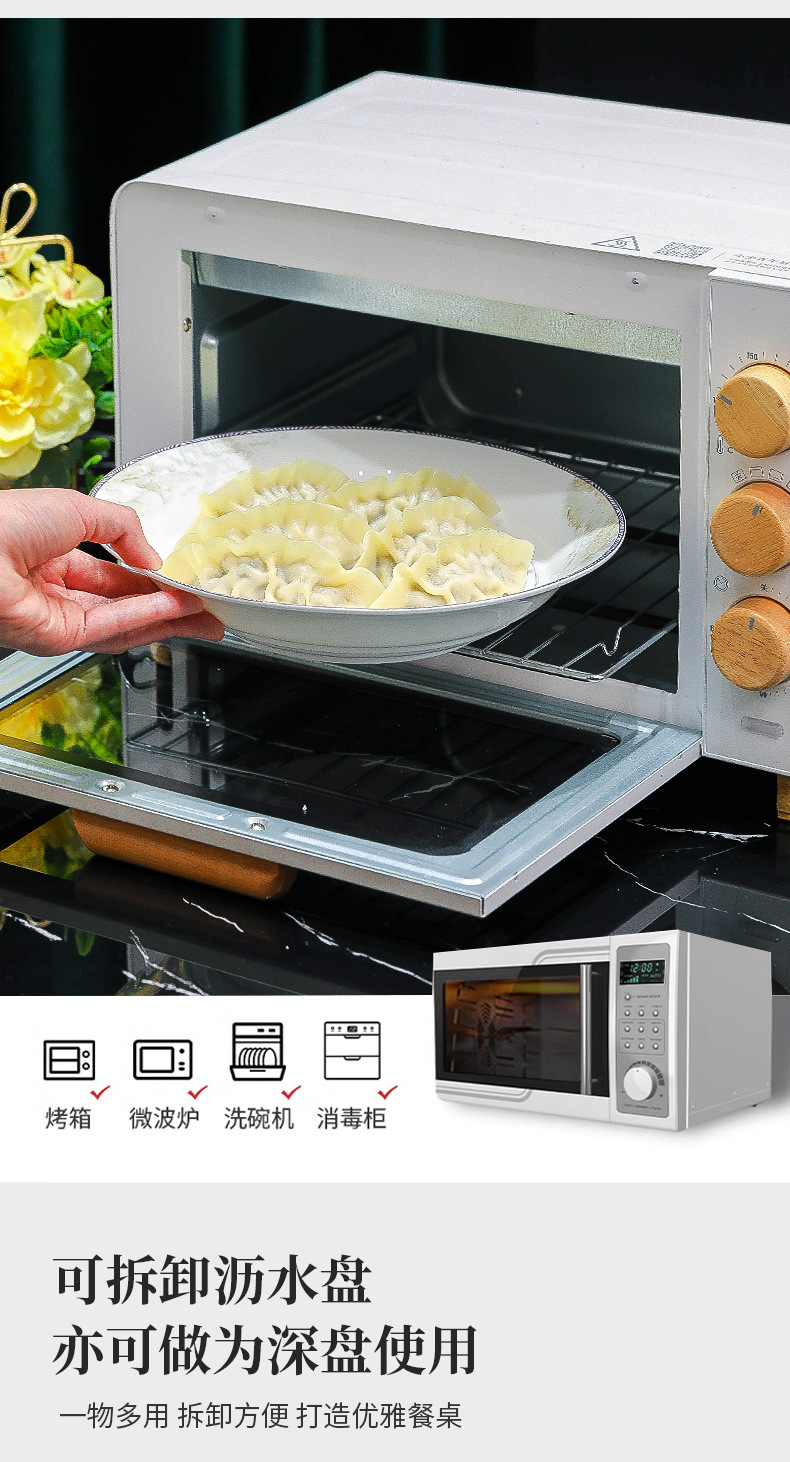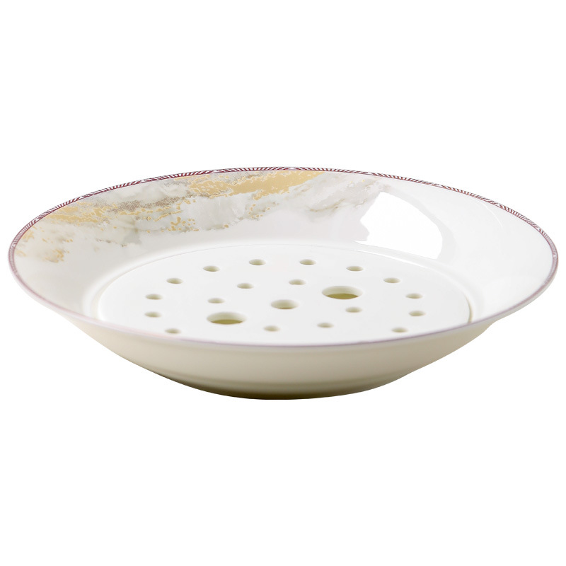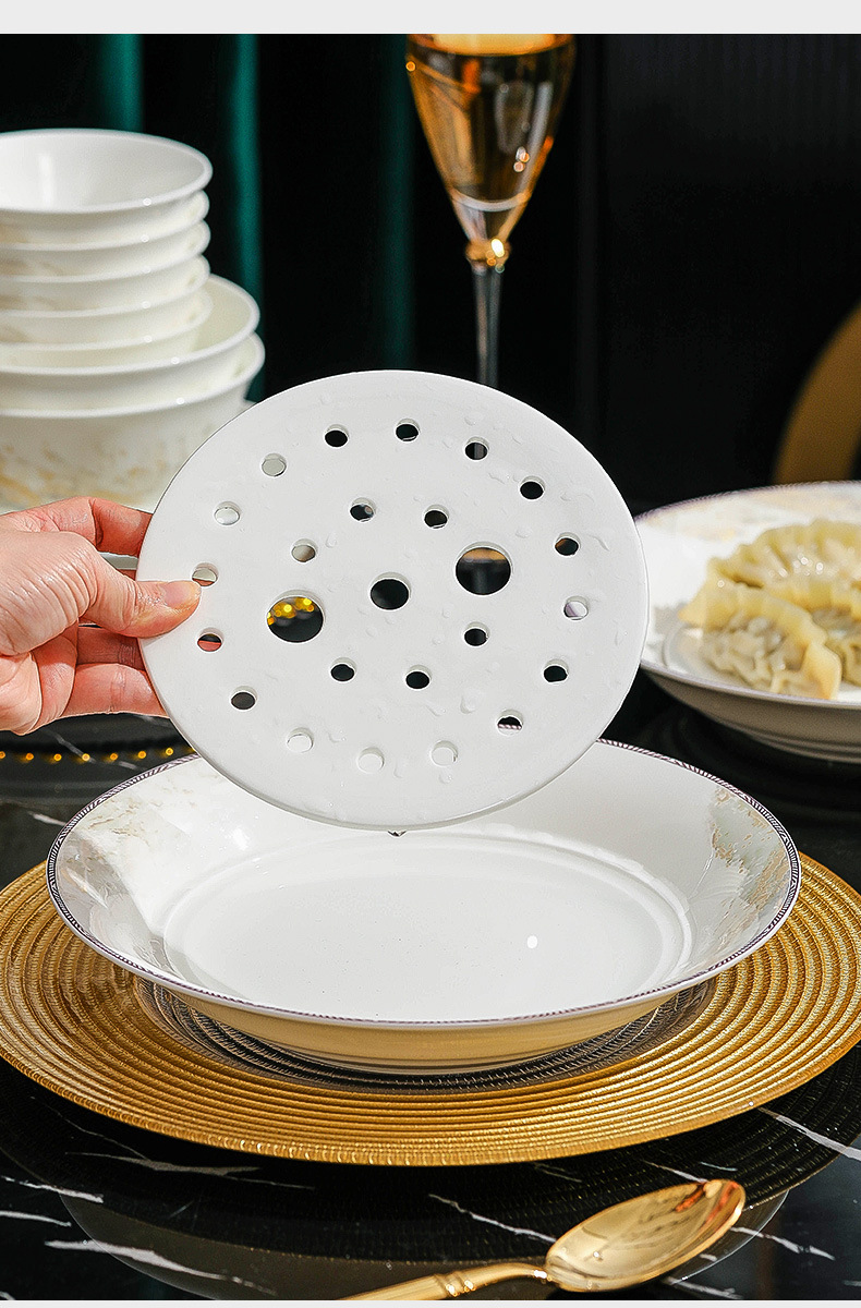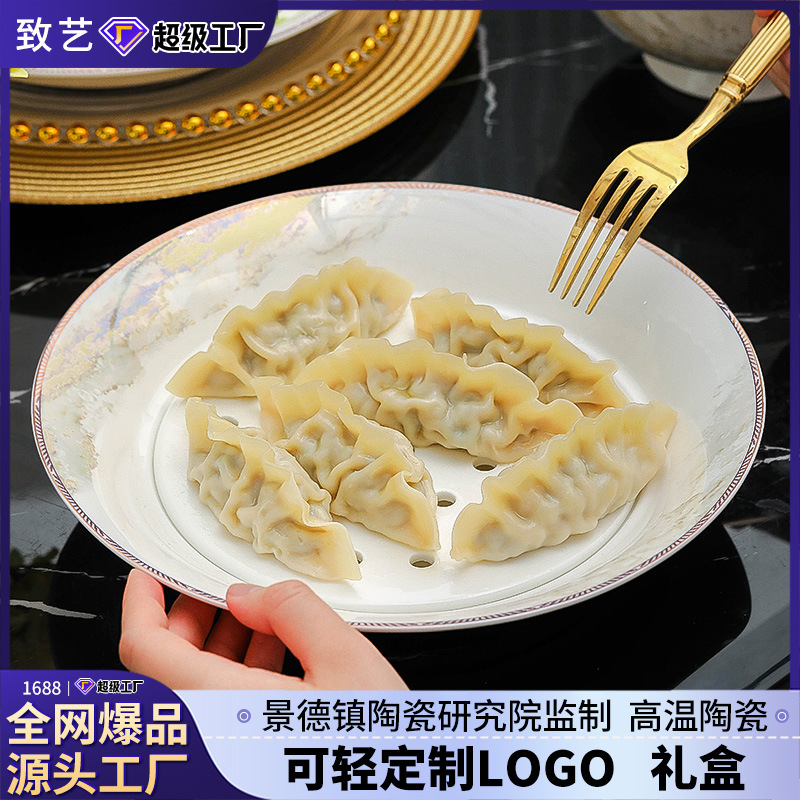 Jingdezhen 흰색 도자기 맞춤형 만두 접시 가정용 라운드 과일 플레이트 더블 레이어 드로잉 플레이트 식기 만두 플레이트