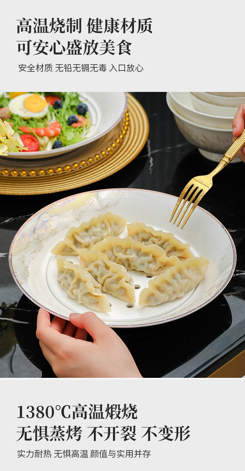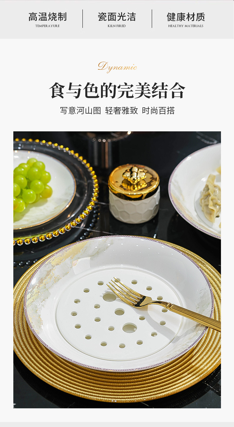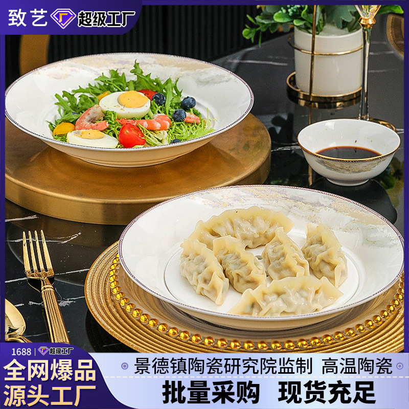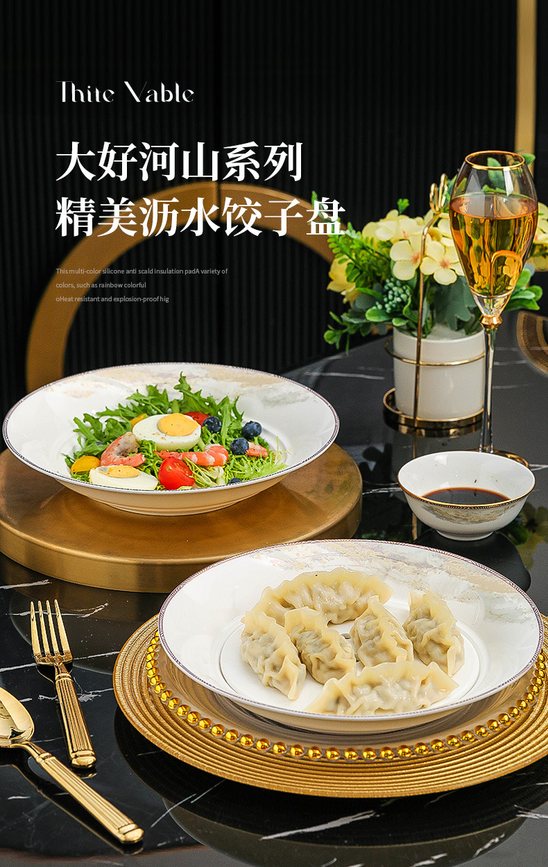 Jingdezhen 흰색 도자기 맞춤형 만두 접시 가정용 라운드 과일 플레이트 더블 레이어 드로잉 플레이트 식기 만두 플레이트