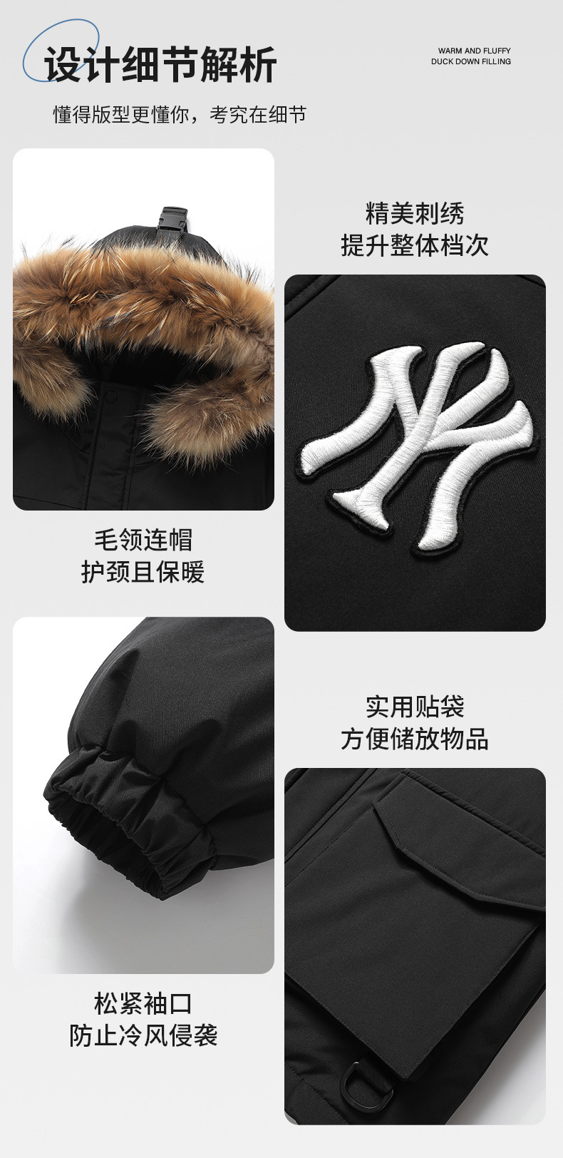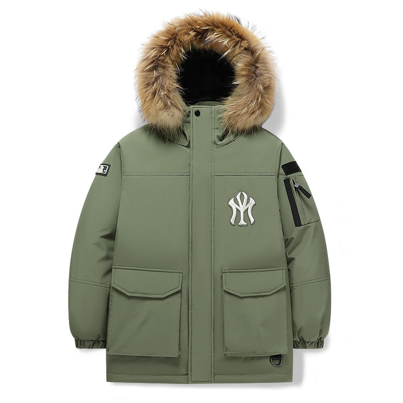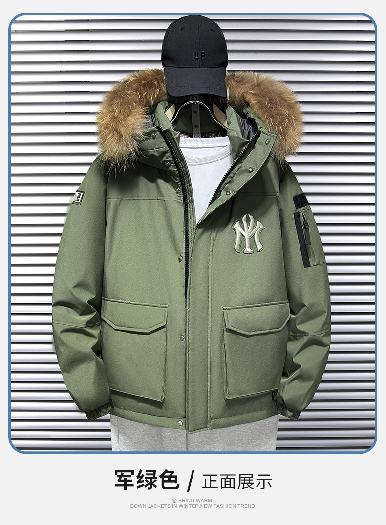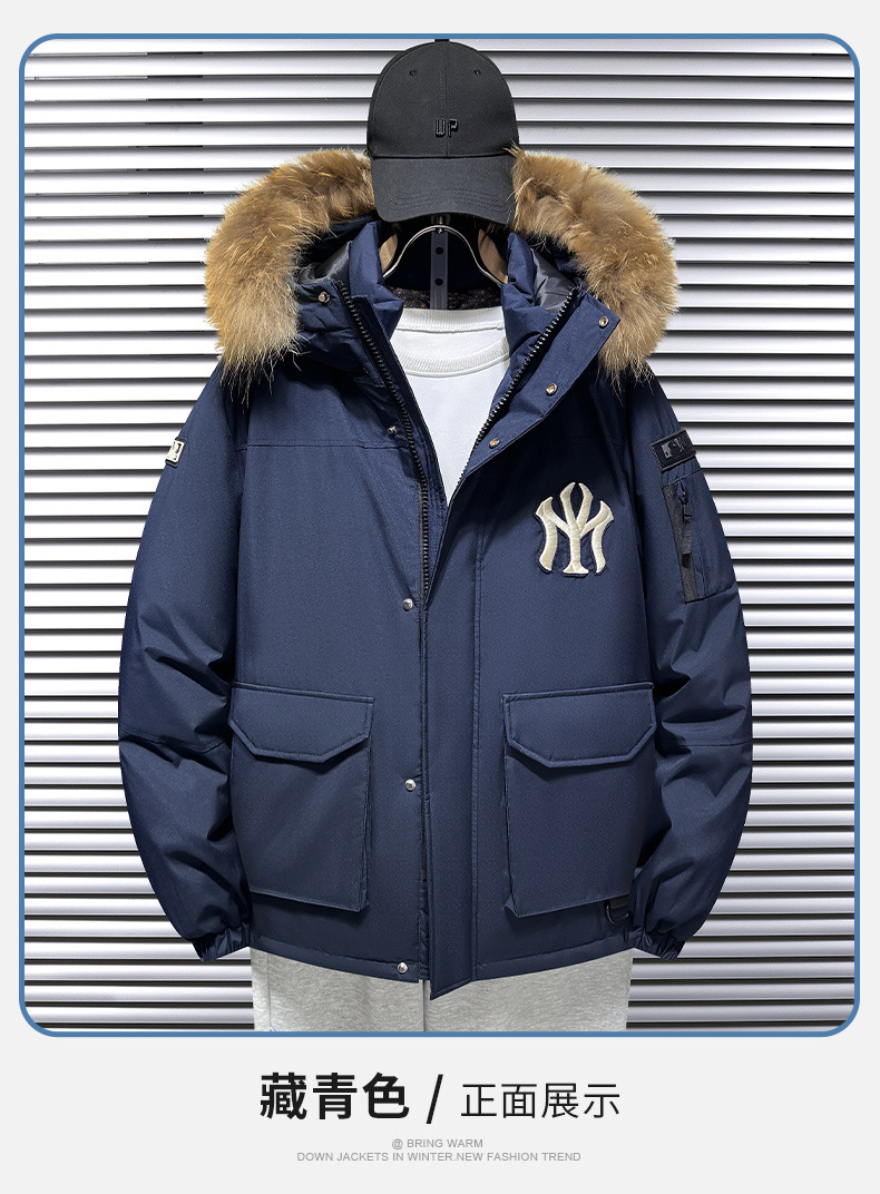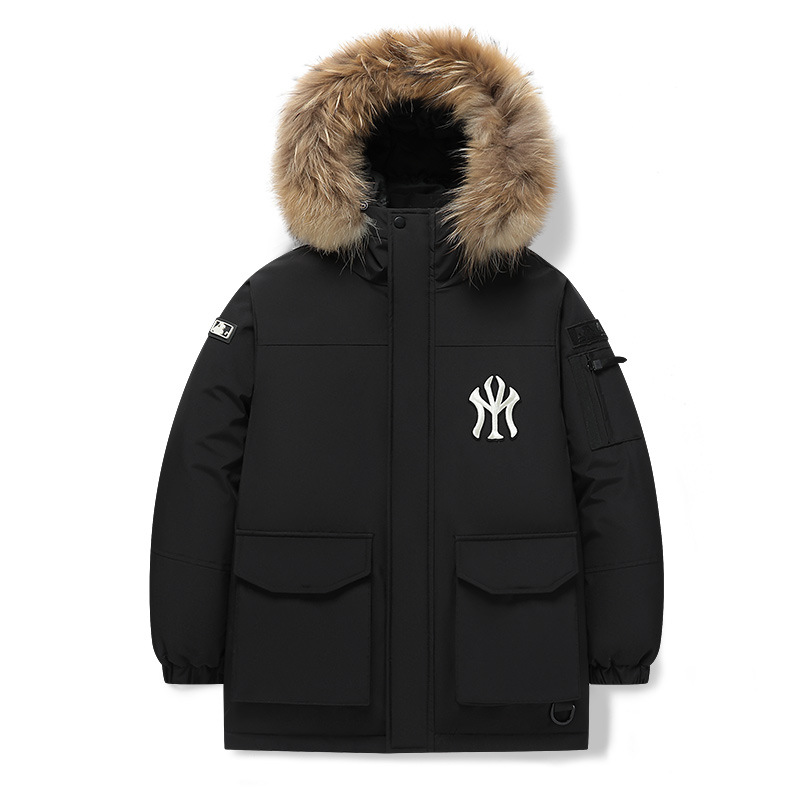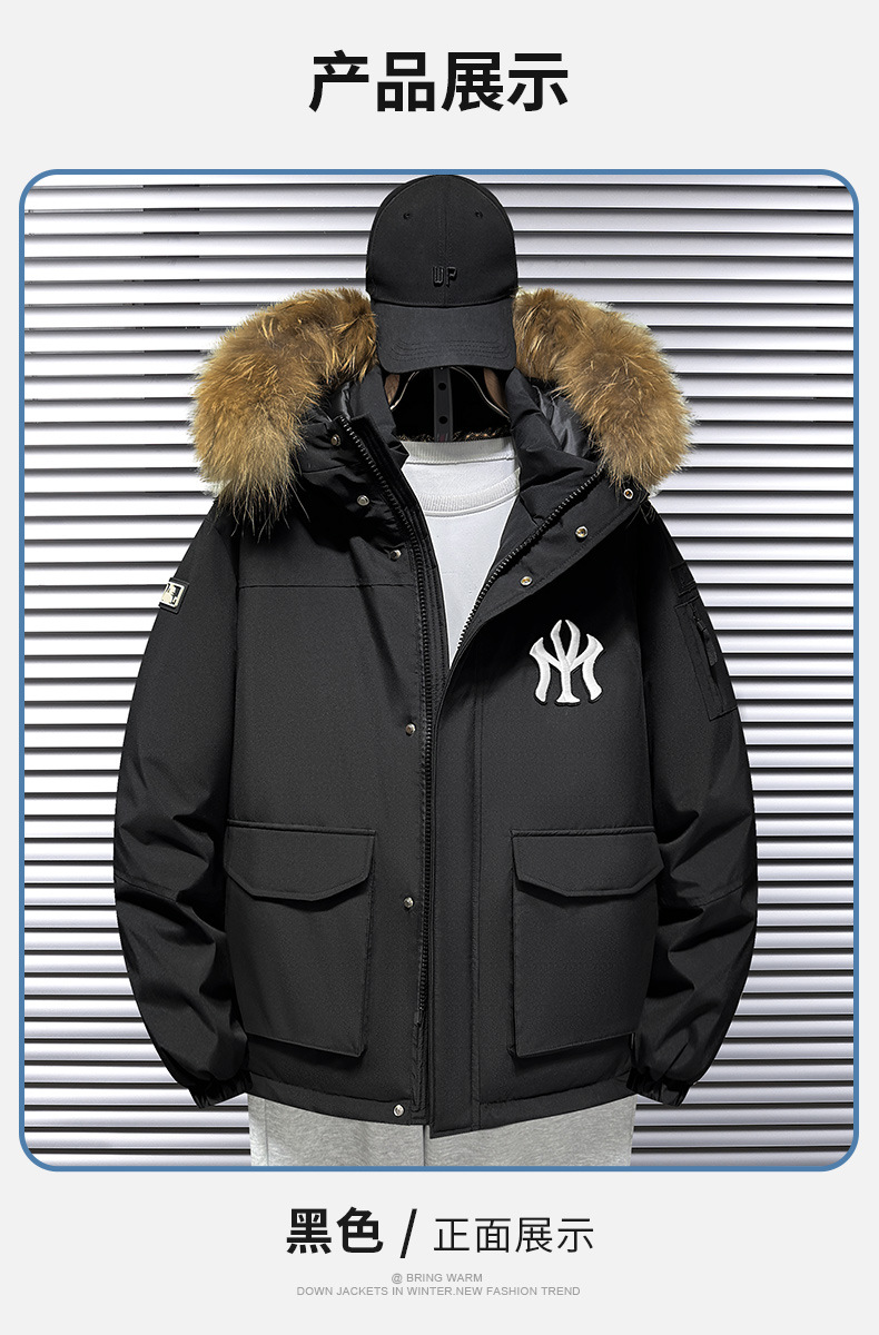 트렌디 한 울 칼라 국경 간 따뜻한 조커 2 오픈 다운 재킷 겨울 라이브 남자 후드 자켓 블랙