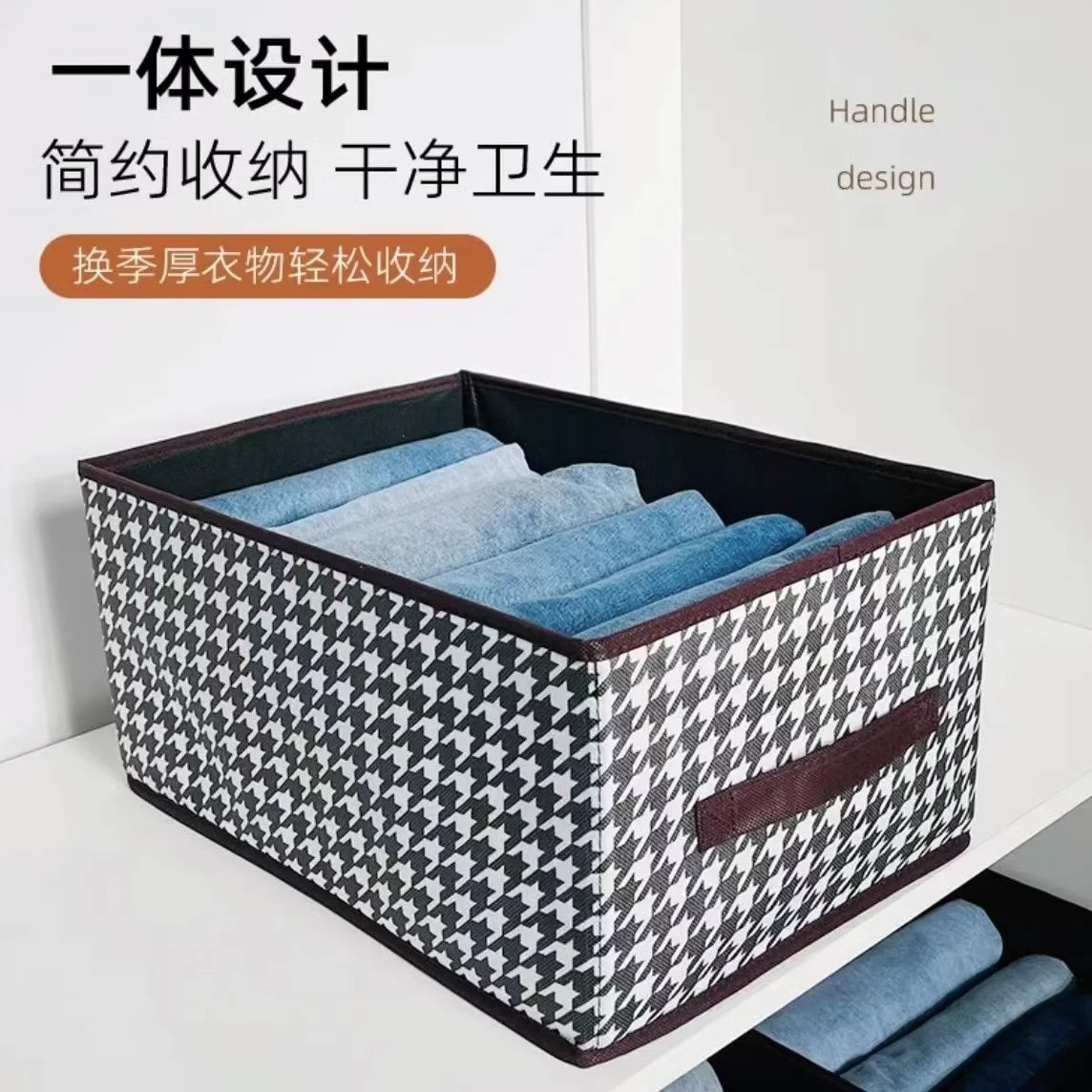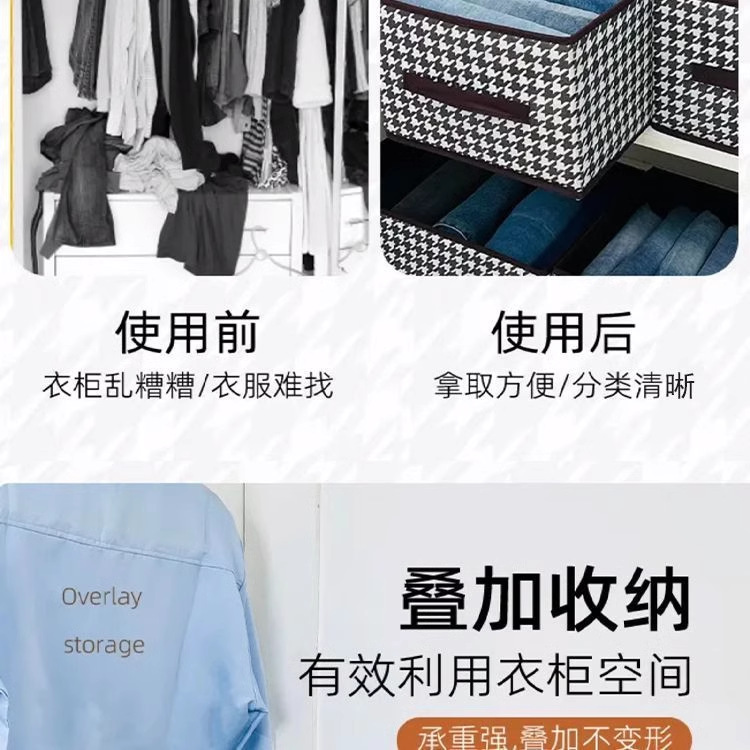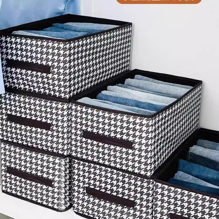 의류 보관 상자 Houndstooth 가정용 옷장 바지 마감 상자 패브릭 상자 접이식 하드 보드 기숙사 보관 프레임