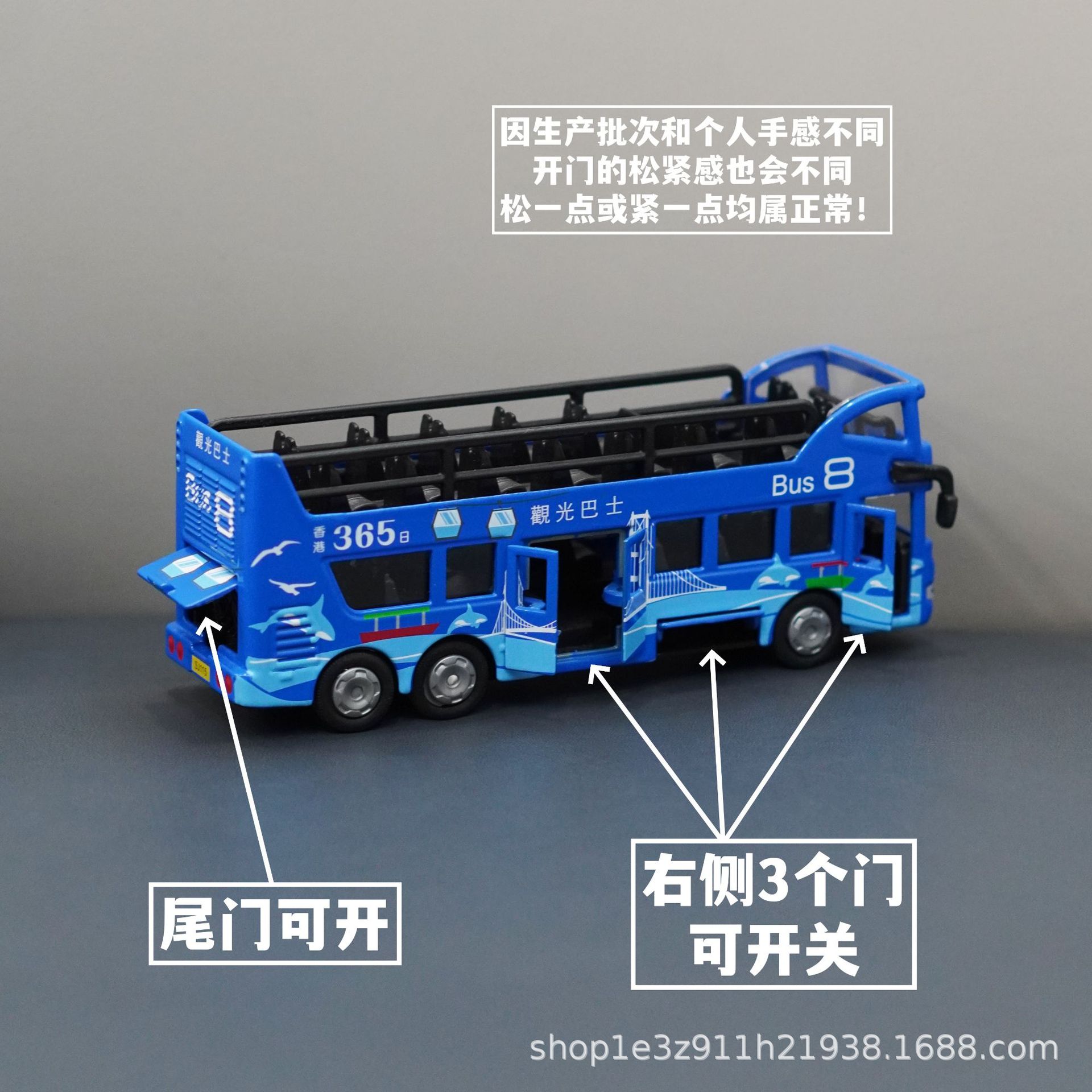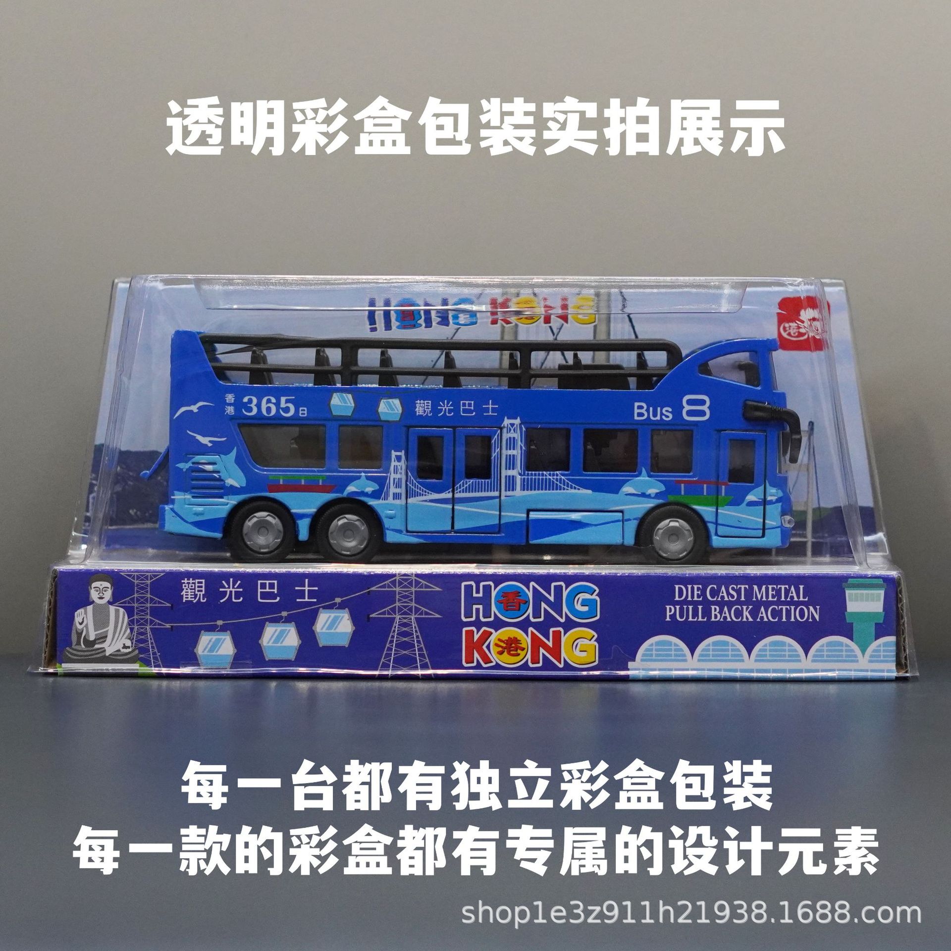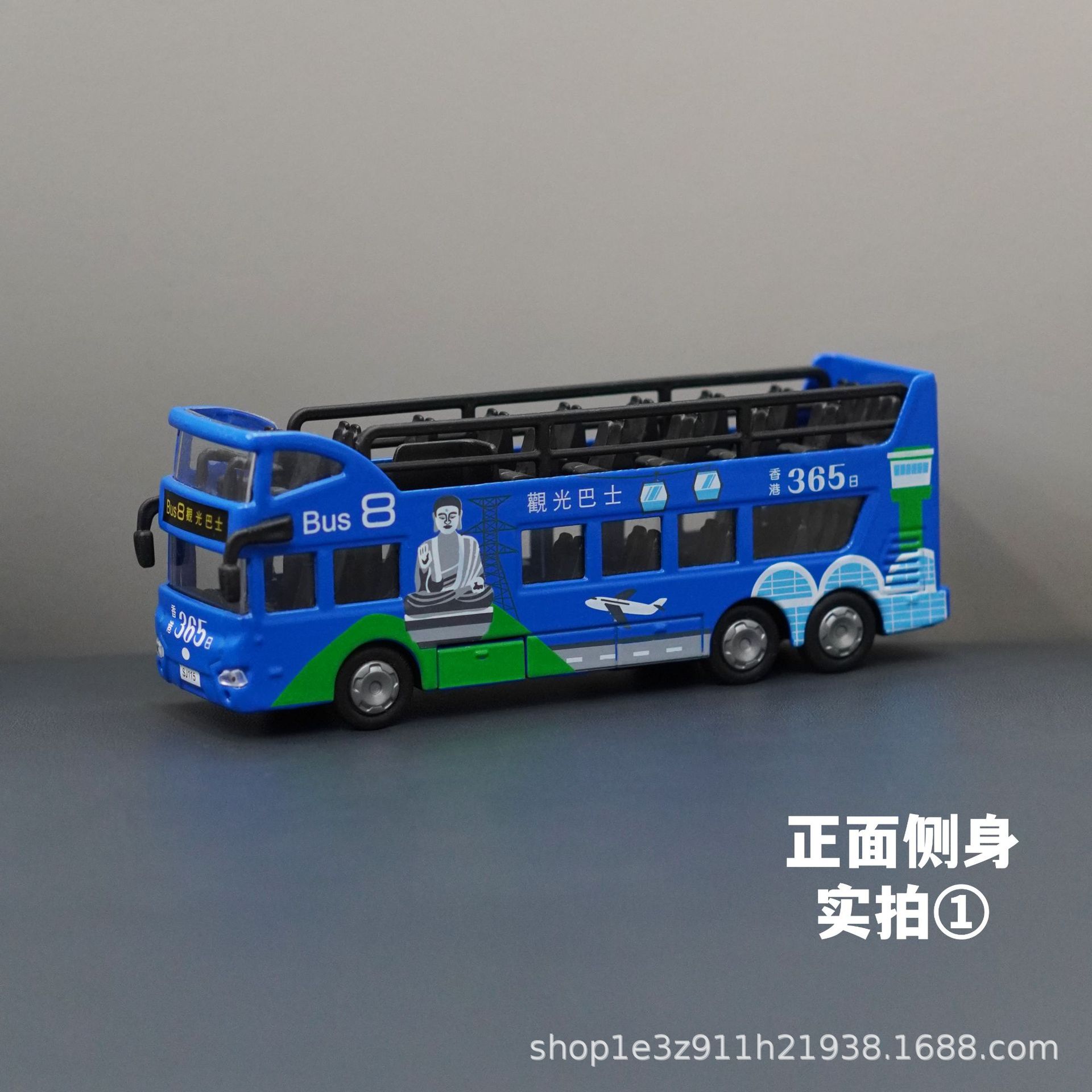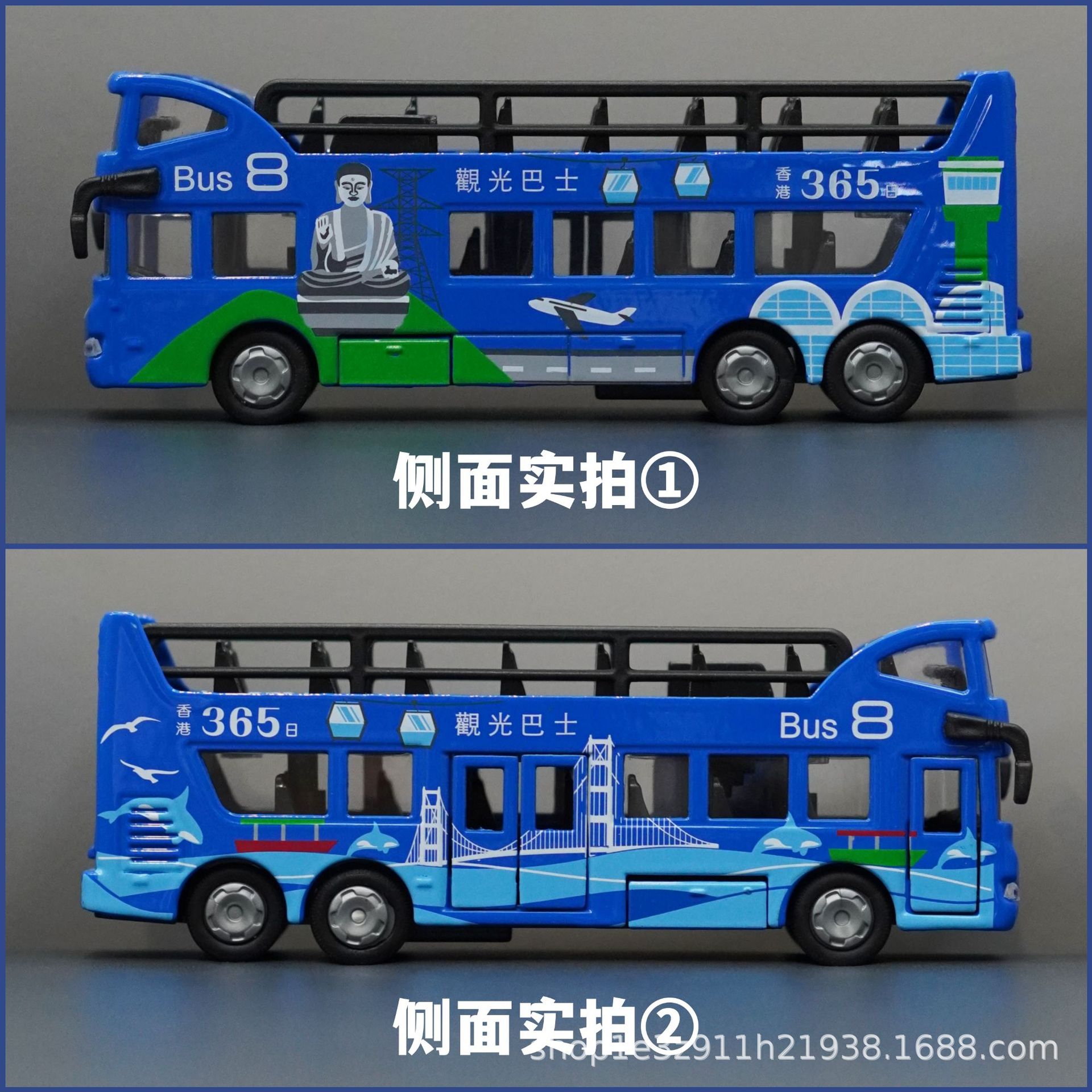 홍콩 오픈 캐노피 이층 관광 버스 일몰 비행 버스 시뮬레이션 자동차 모델 어린이 장난감 합금 자동차 모델