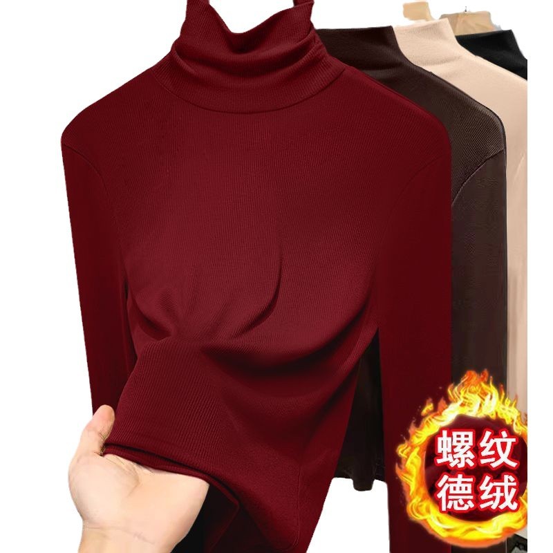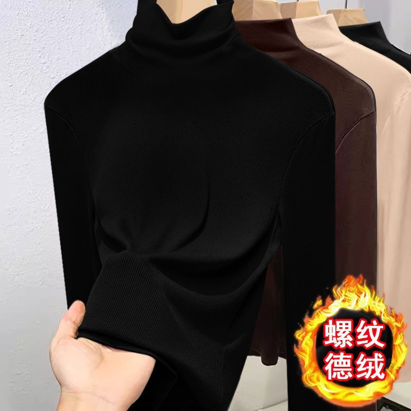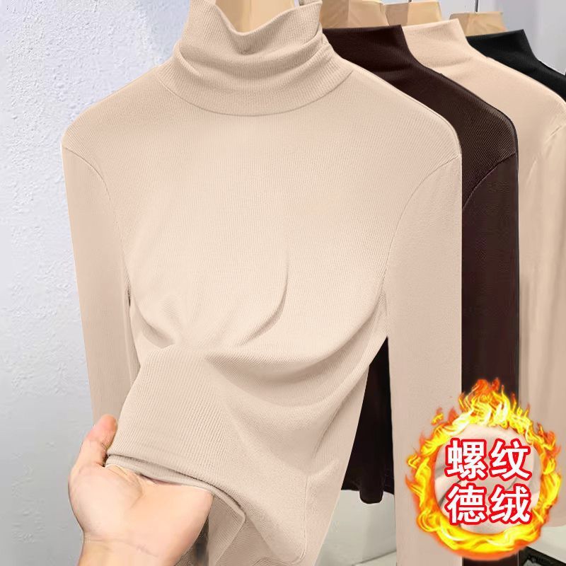 2024 새로운 가을과 겨울 독일 벨벳 높은 칼라 긴팔베이스 셔츠 여성용 내부 티셔츠 슬림 핏 슬림 따뜻한 긴팔 탑
