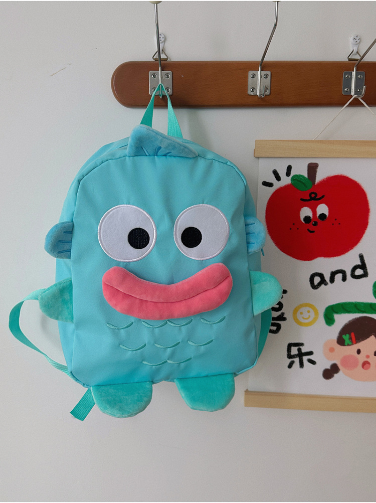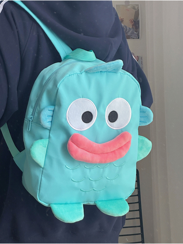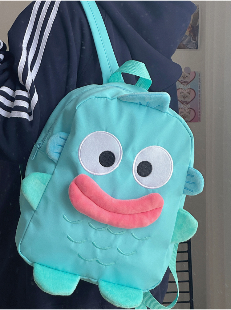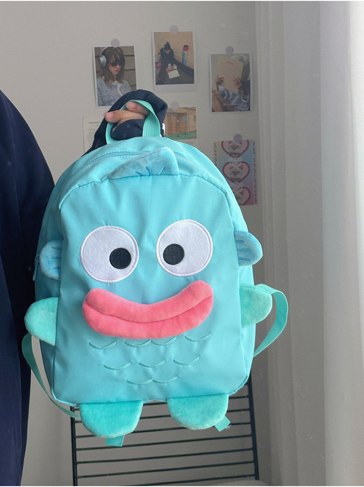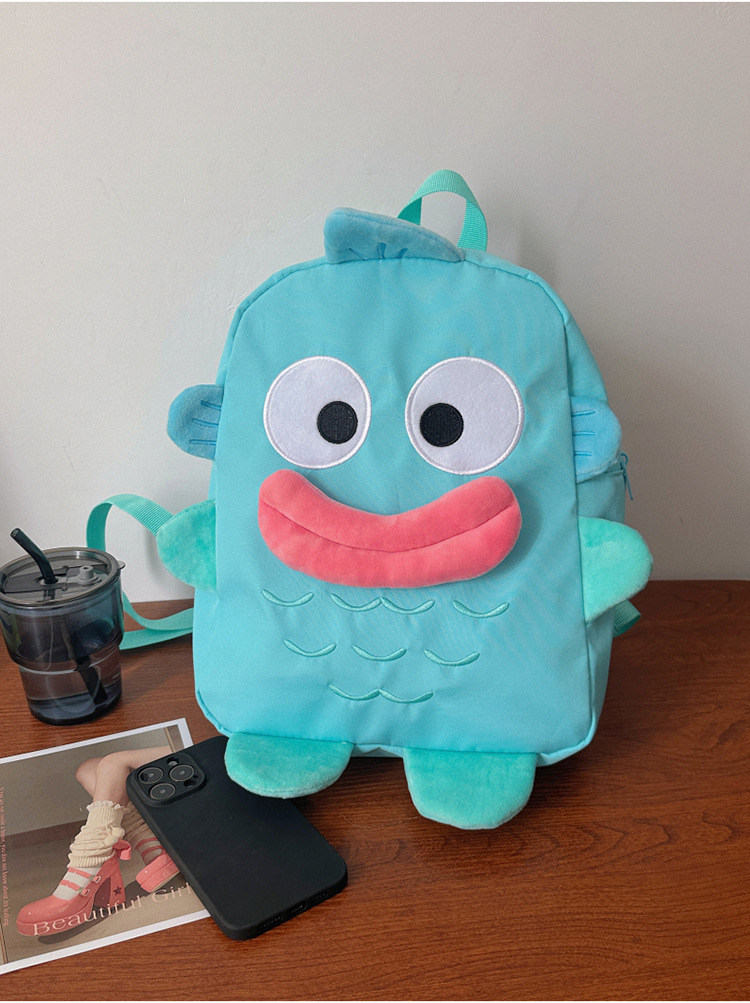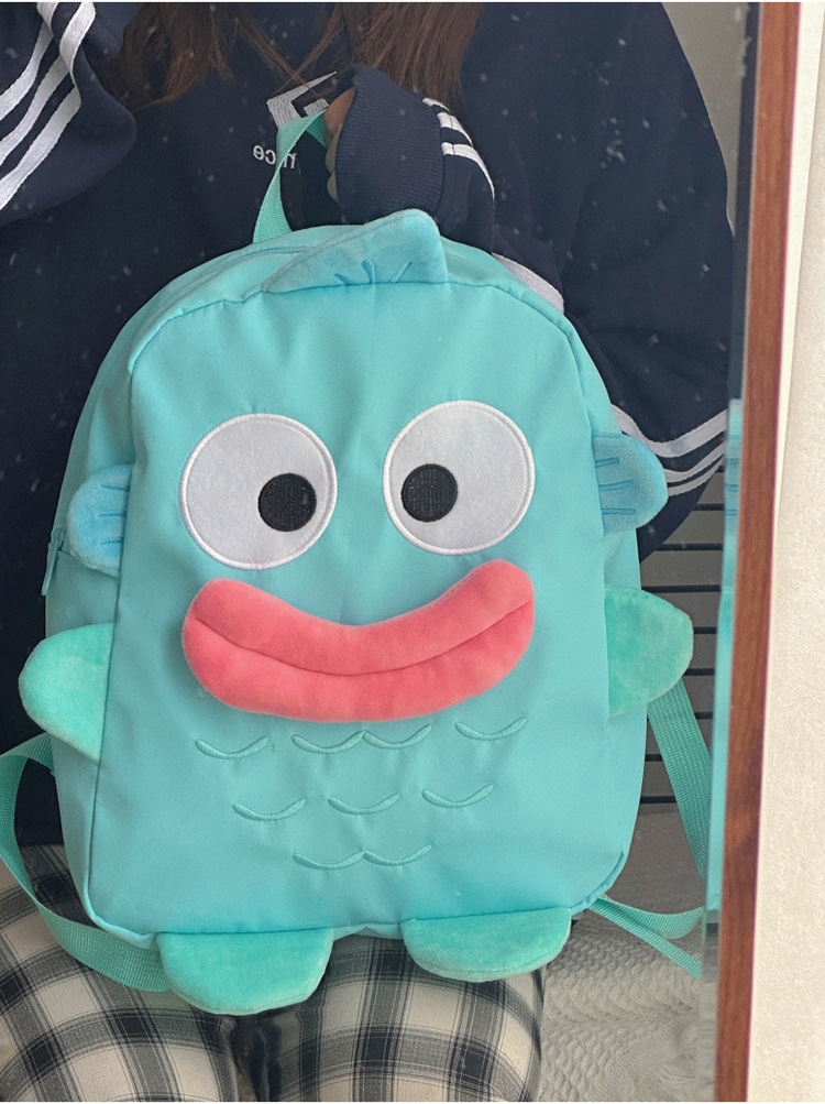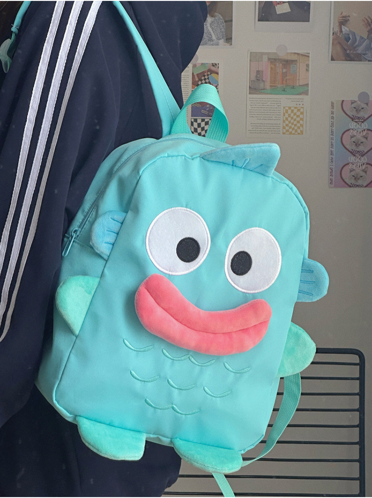 2023 새로운 일본 귀여운 만화 큰 입 물고기 배낭 못생긴 귀여운 괴물 학교 가방 대용량 어린이 배낭