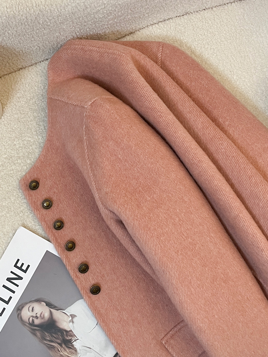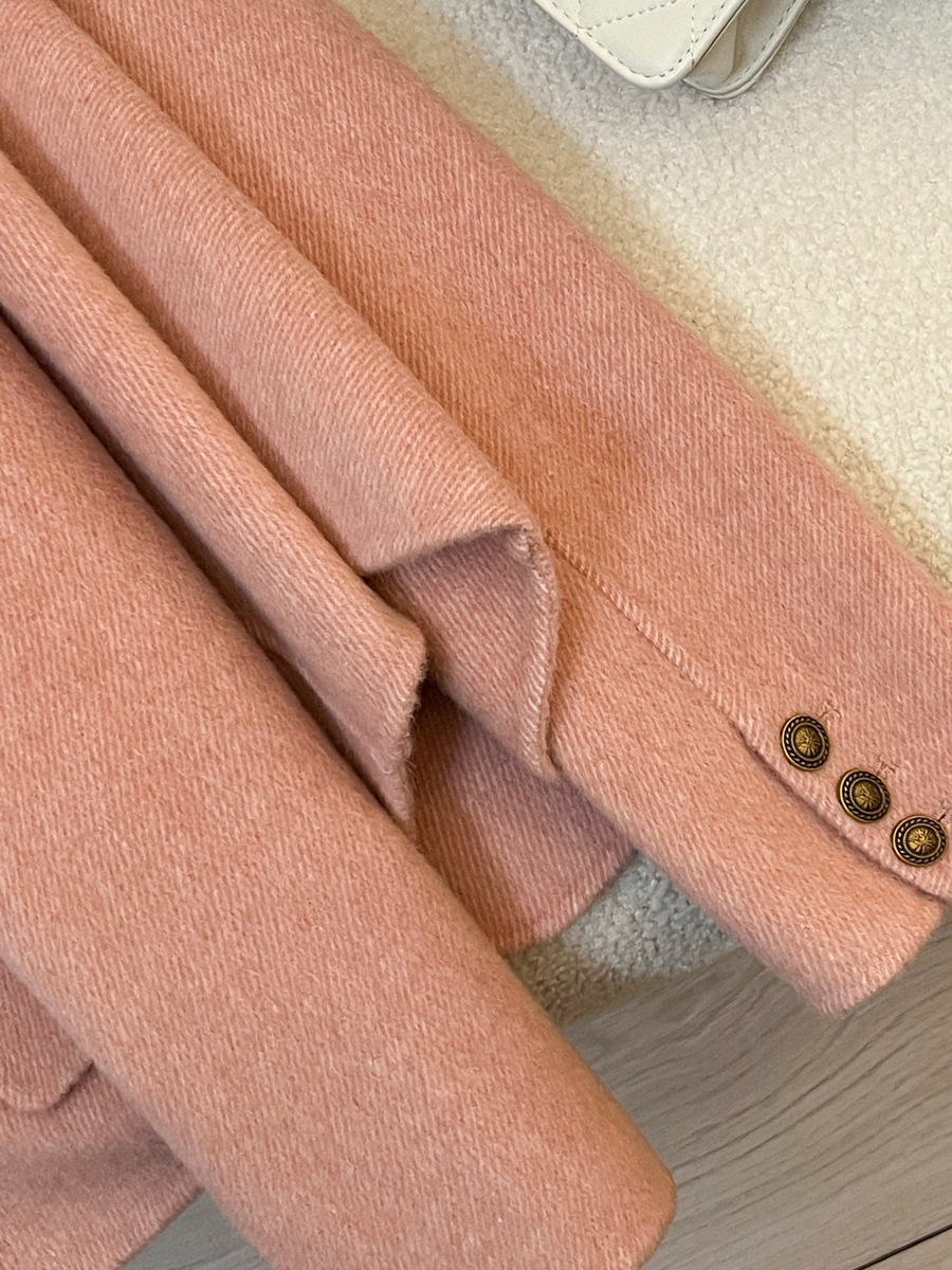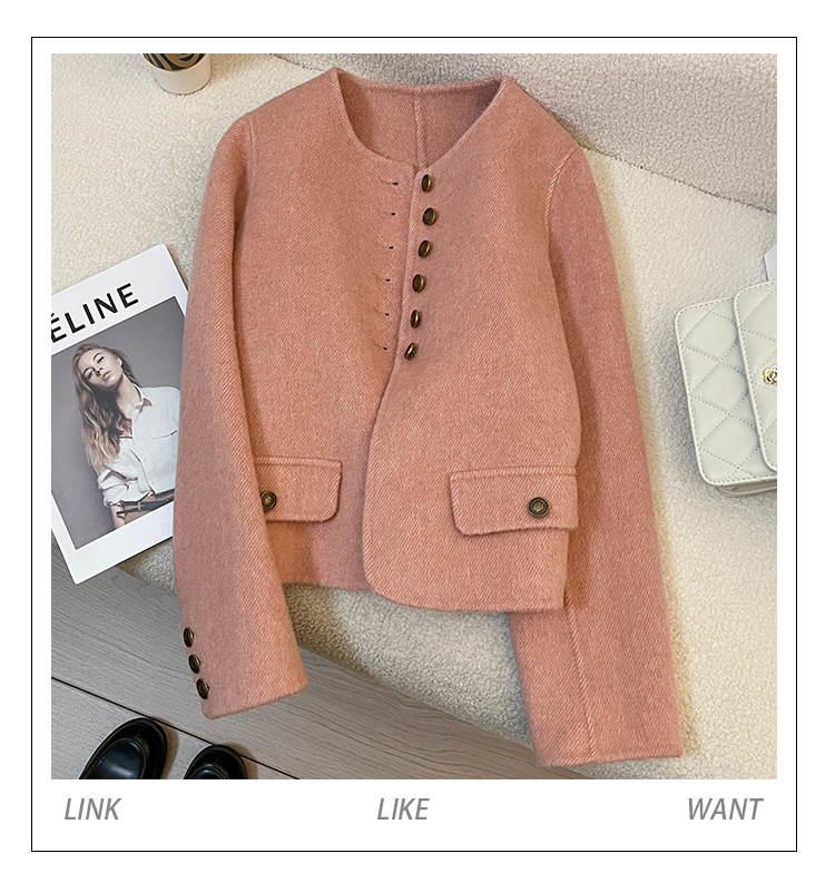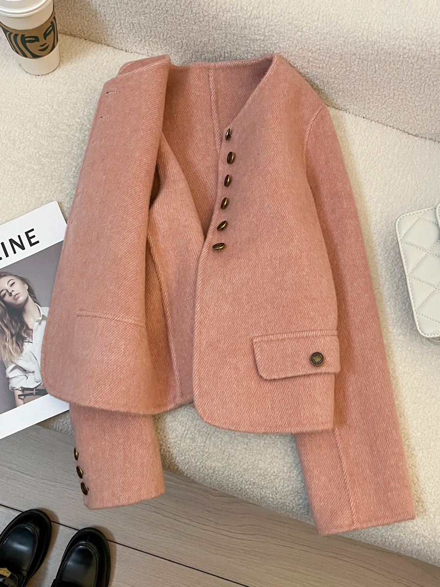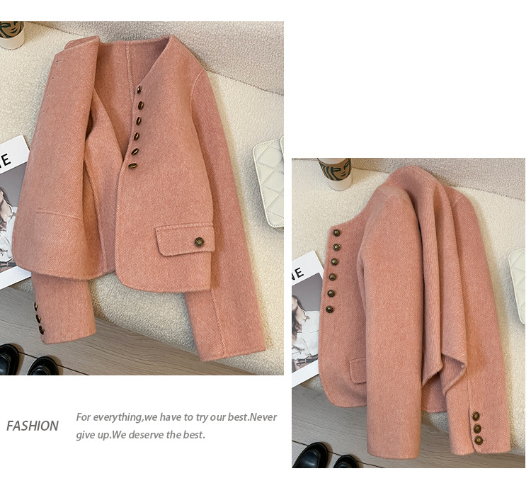 핑크색 짧은 고급 양모 양면 모직 여성 코트 2025 가을 겨울 신상 69% 울 소재 샤넬 스타일 재킷