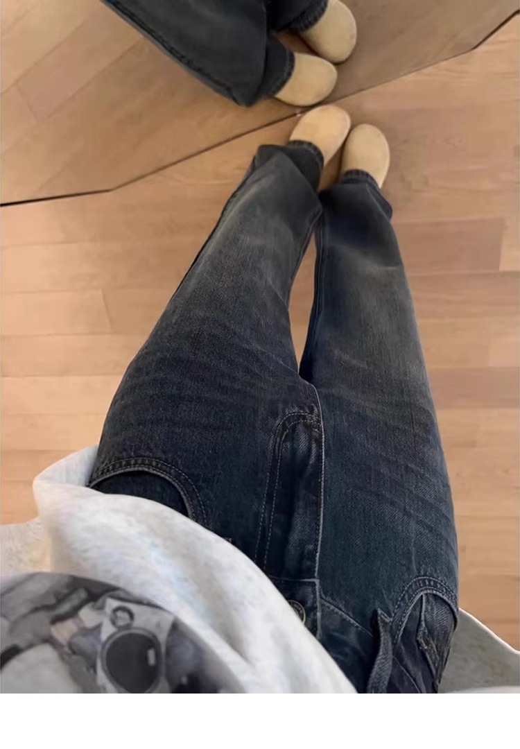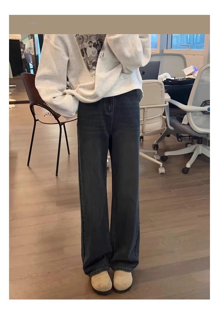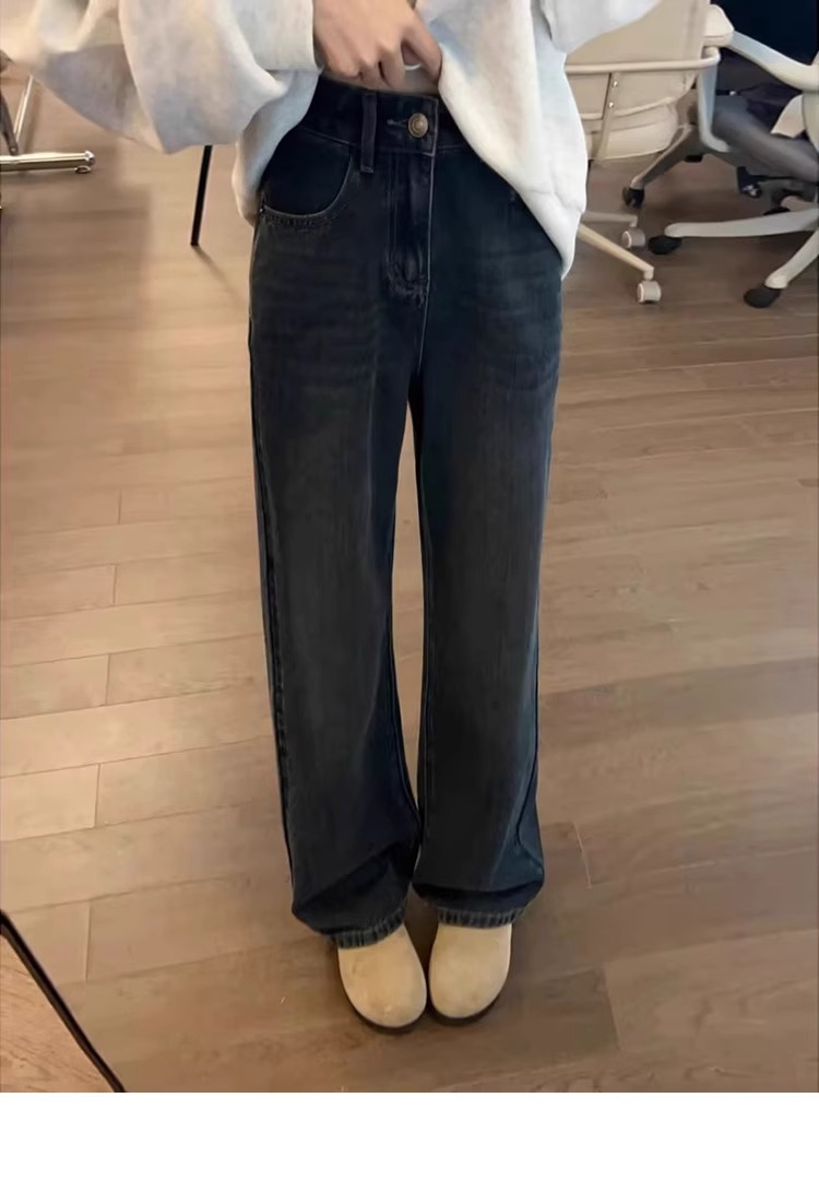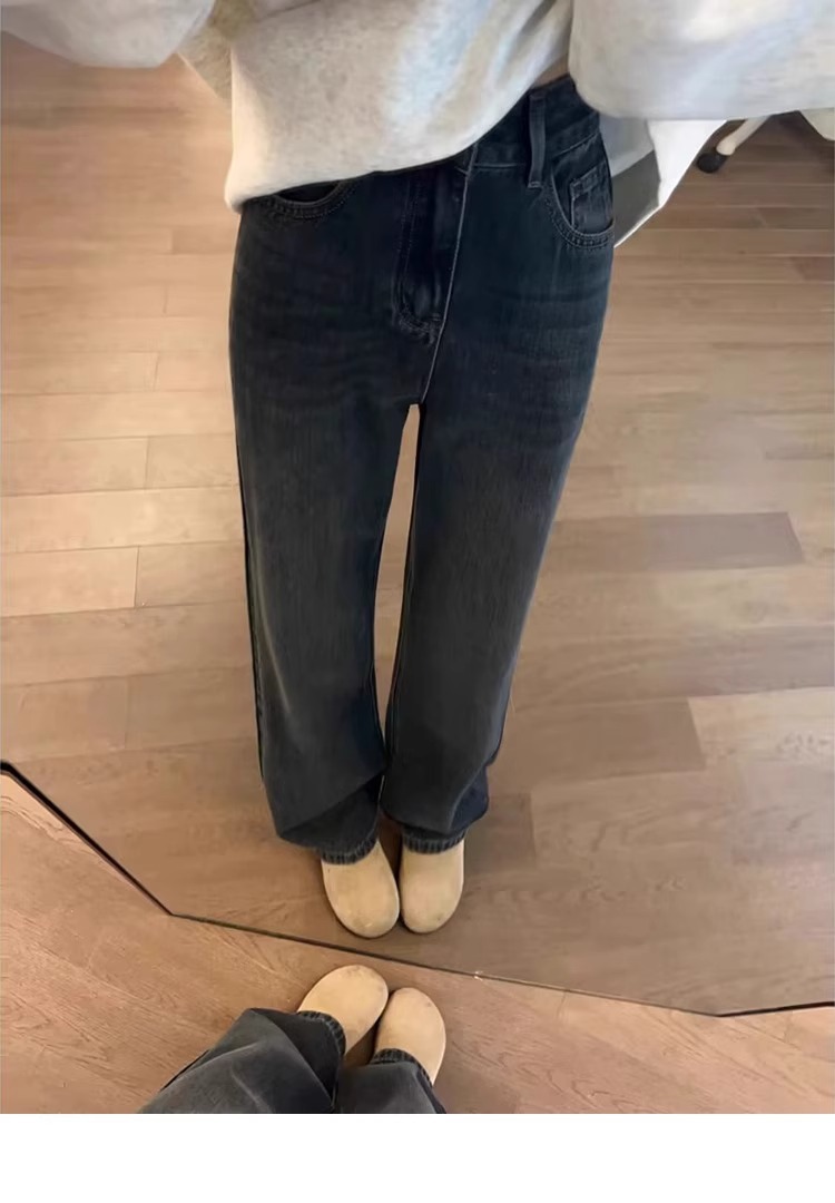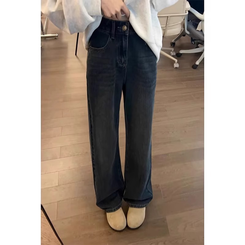 좁은 스트레이트 청바지 플러스 사이즈 여성 통통녀 슬림 바지 가을과 겨울 2025 봄과 가을 배 모양의 바지 패션
