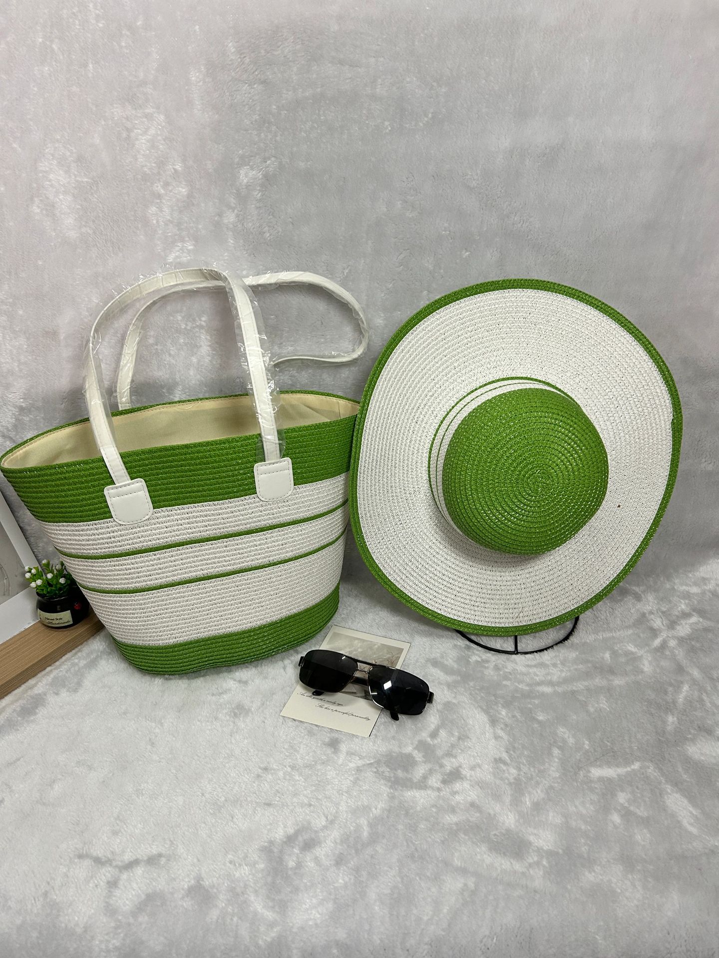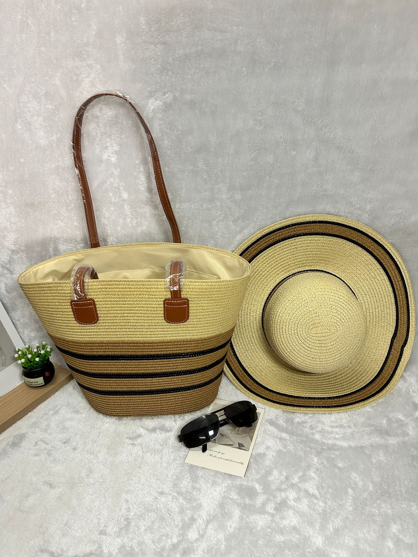 컬러풀한 밀짚 토트백 세트 - 넓은 스트라이프 흑백