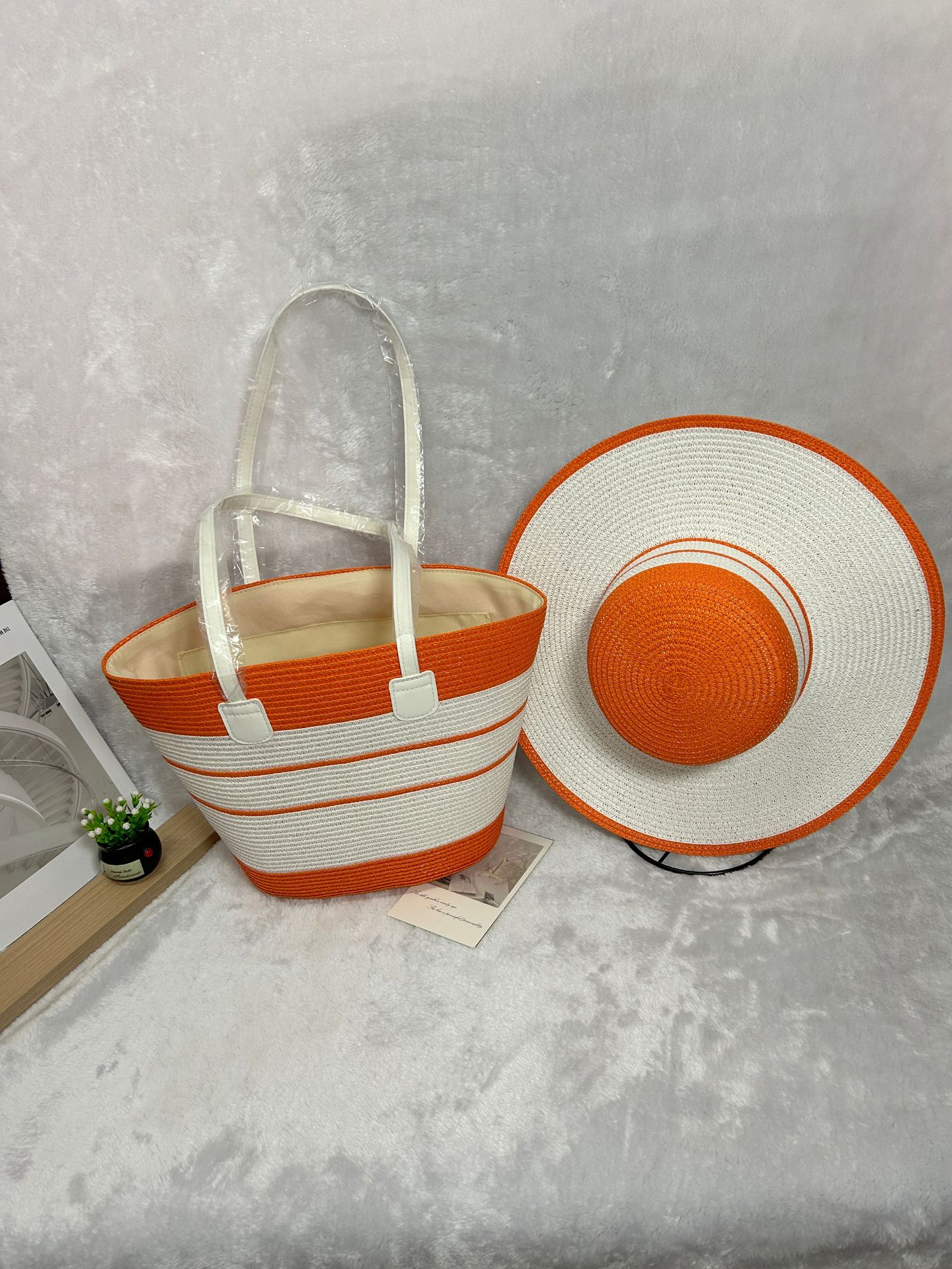 컬러풀한 밀짚 토트백 세트 - 블루와 오렌지