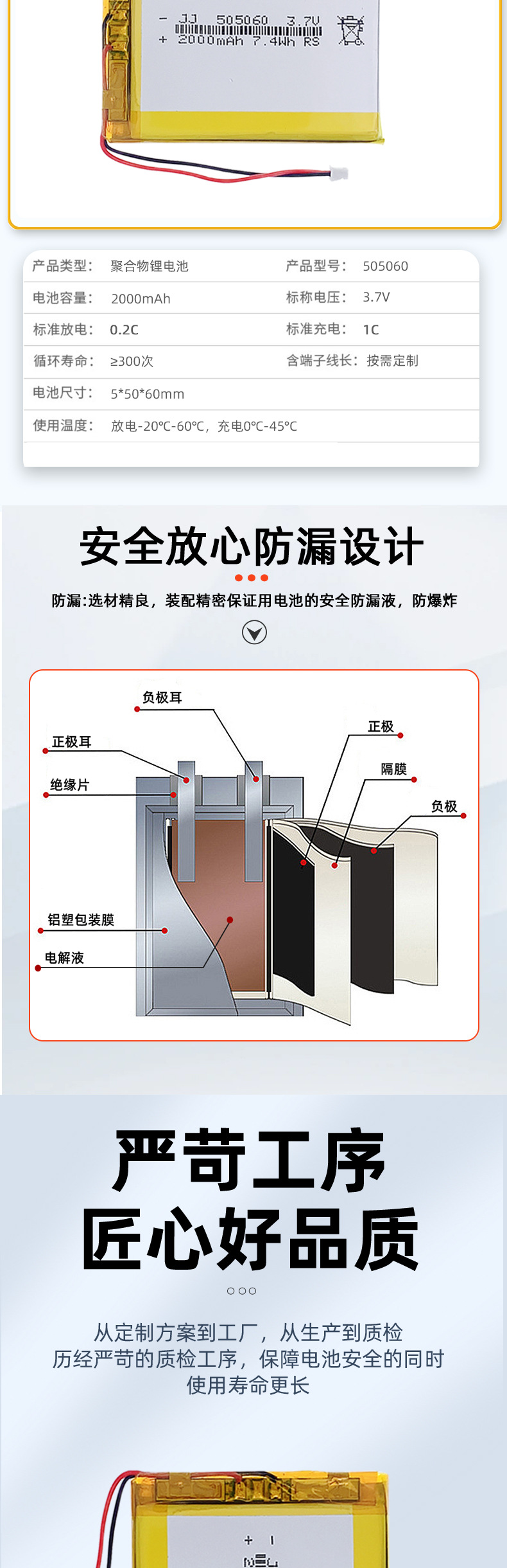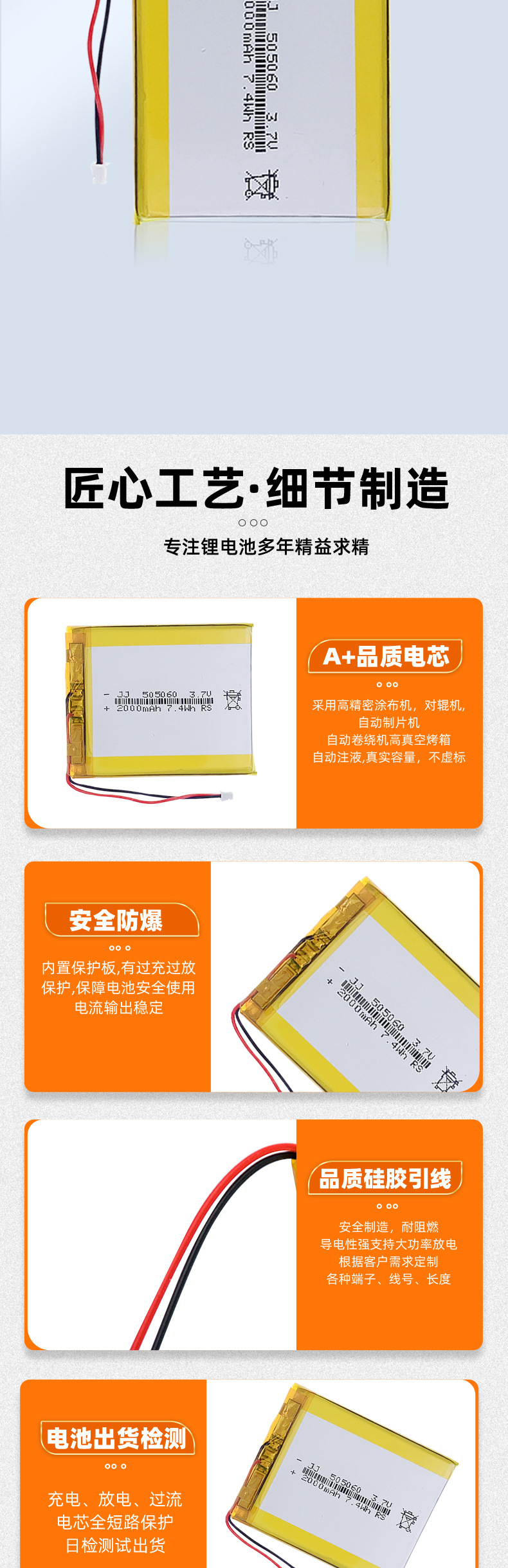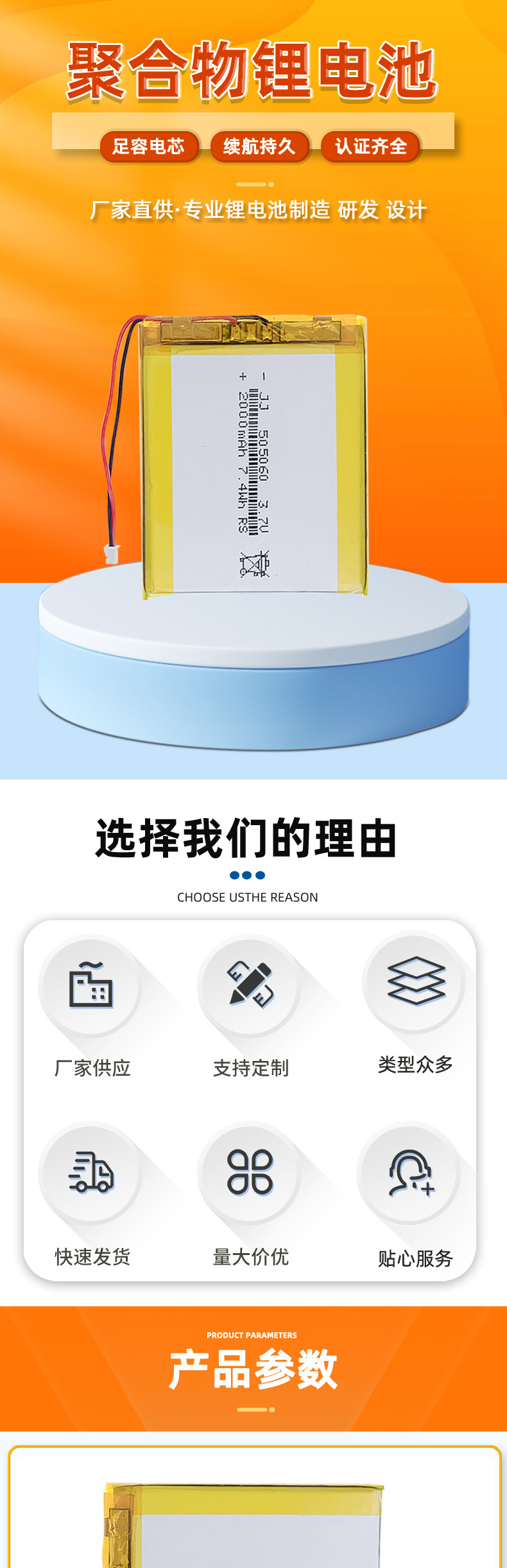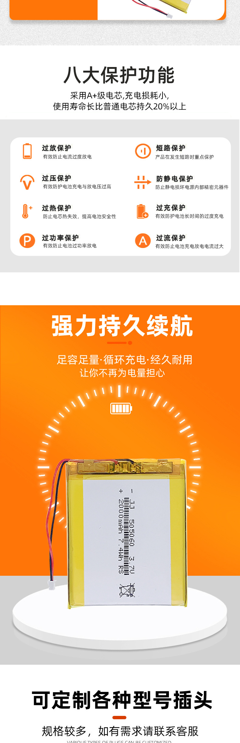 폴리머 리튬 배터리 505060 화장 거울 램프 2000mAh3.7V 전원 공급 장치 화장 거울용 특수 배터리
