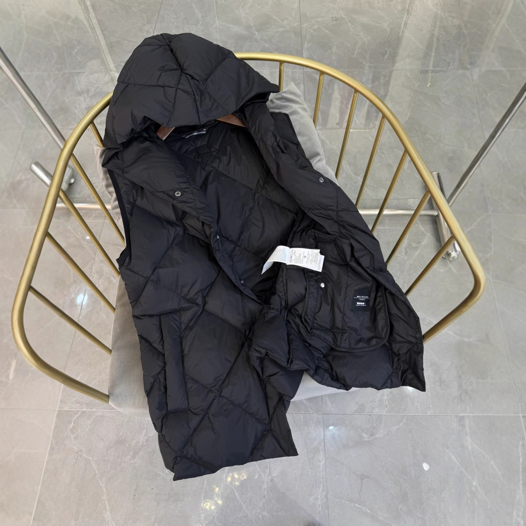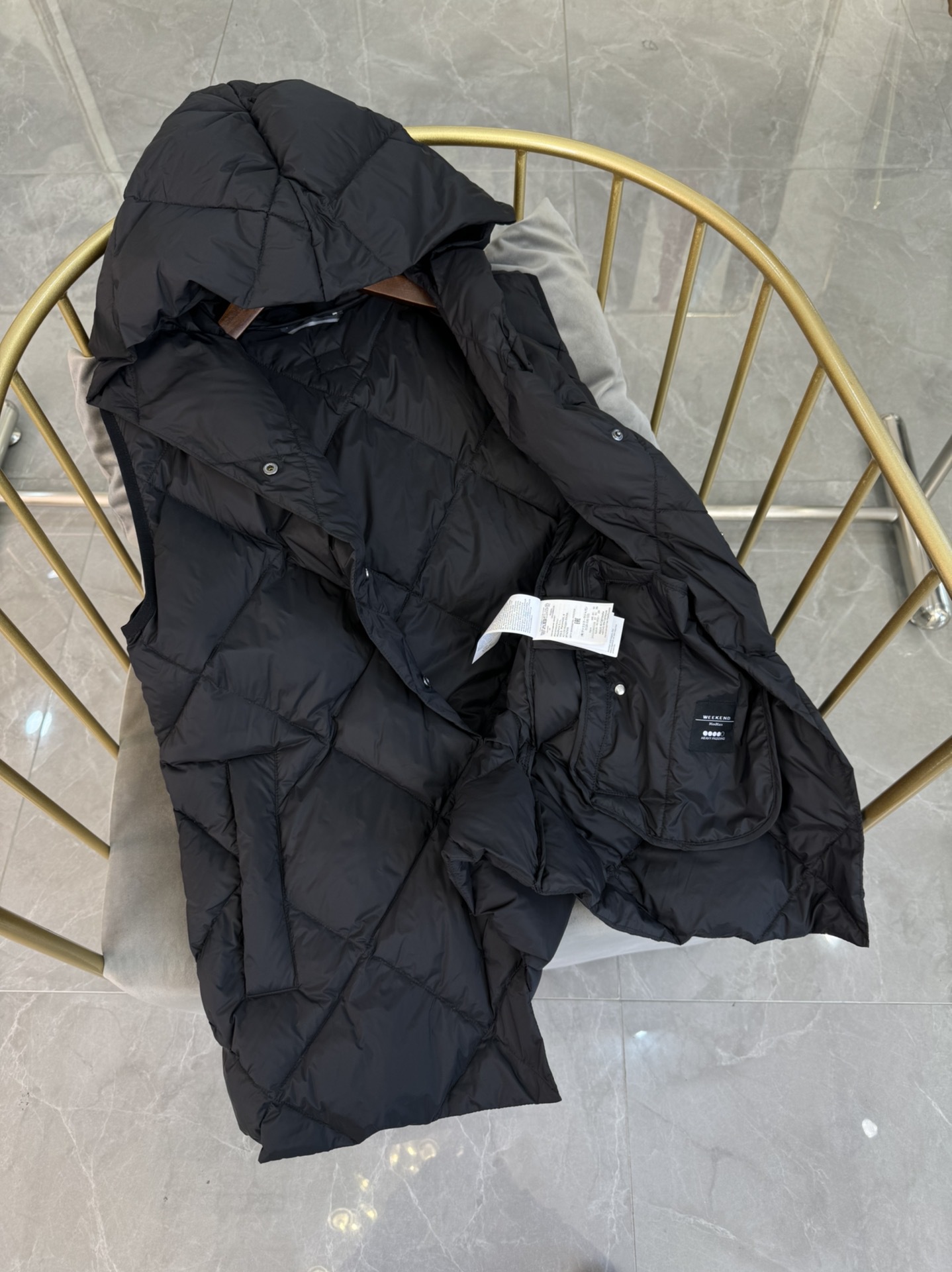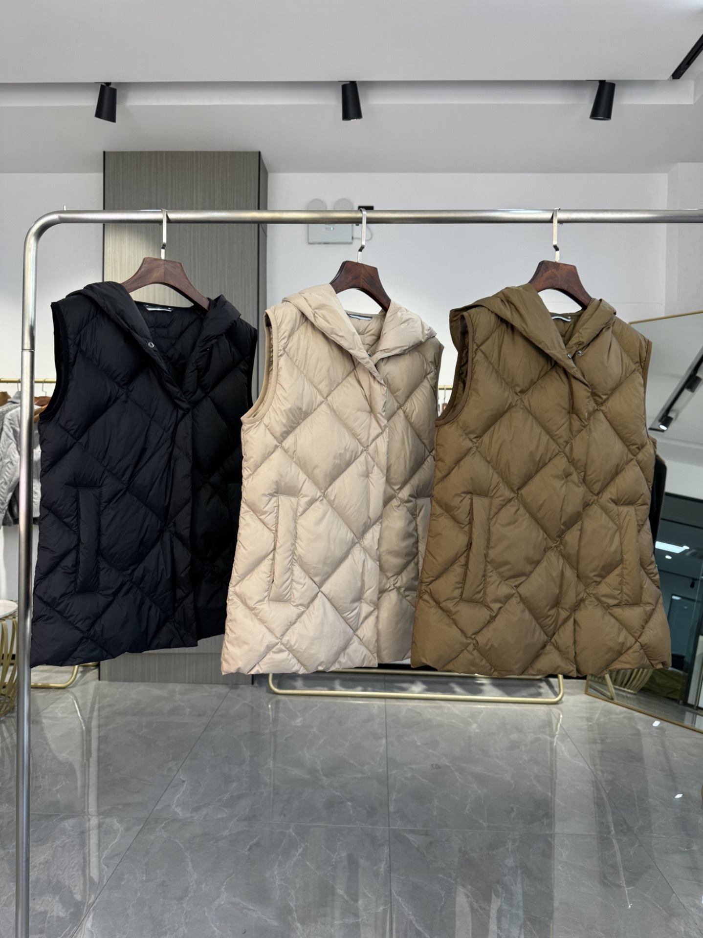 保zhen,we*kend羽绒马甲,原厂尾货剩余一点,G网未更新,客供面辅料,中长款连帽不可拆卸设计,绗缝菱格,百搭不挑人实用耐穿!显瘦视觉效果非常明显,上身的帅气程度大气场只有上身才能体会!羽绒马甲不仅兼具羽绒服的保暖功能,又显利落干练气质,无论与卫衣、毛衣都可以完美匹配!焦糖色,米色,黑色,三色36 38 40码。