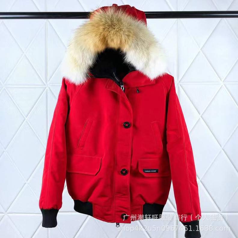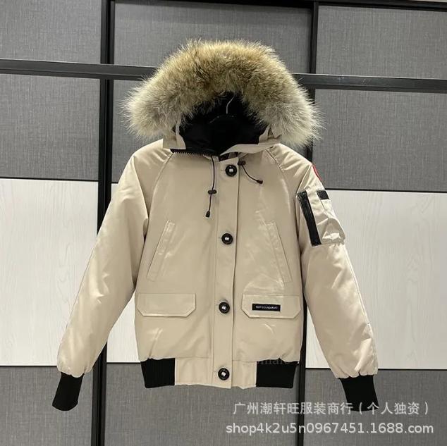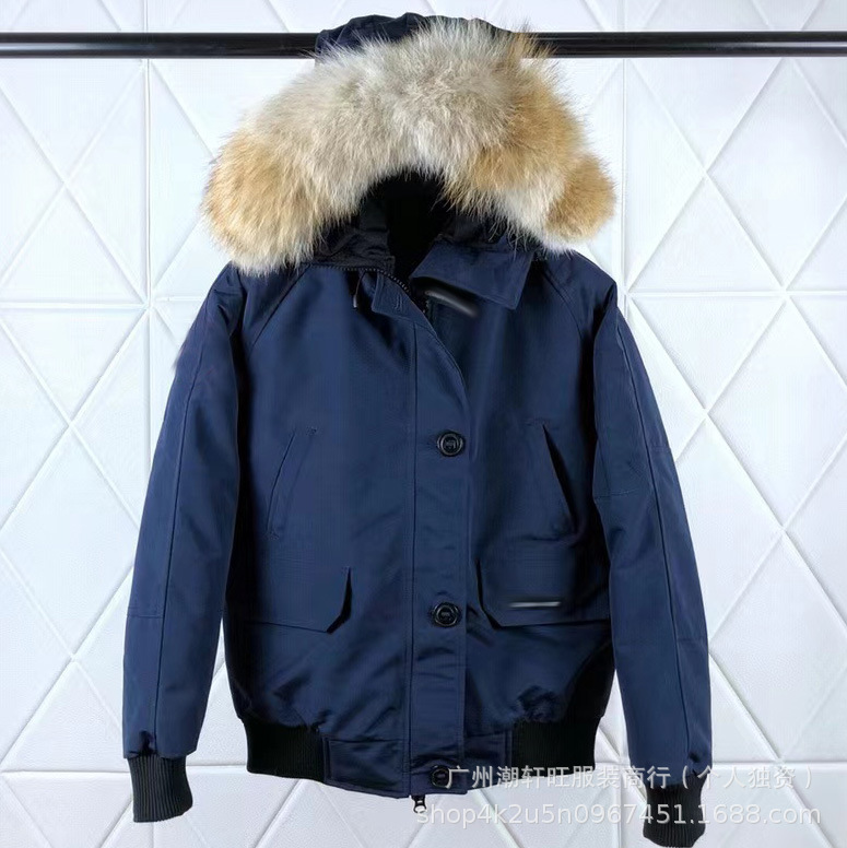 국경 간 무역 다운 재킷 캐나다 02 모델 여성용 숏 재킷 대형 늑대털 장식