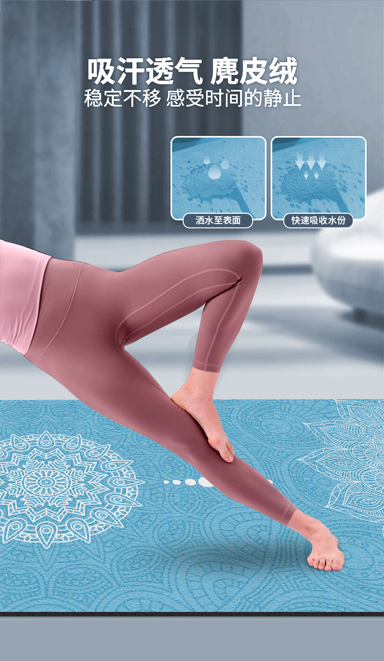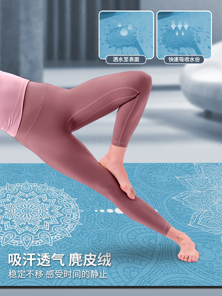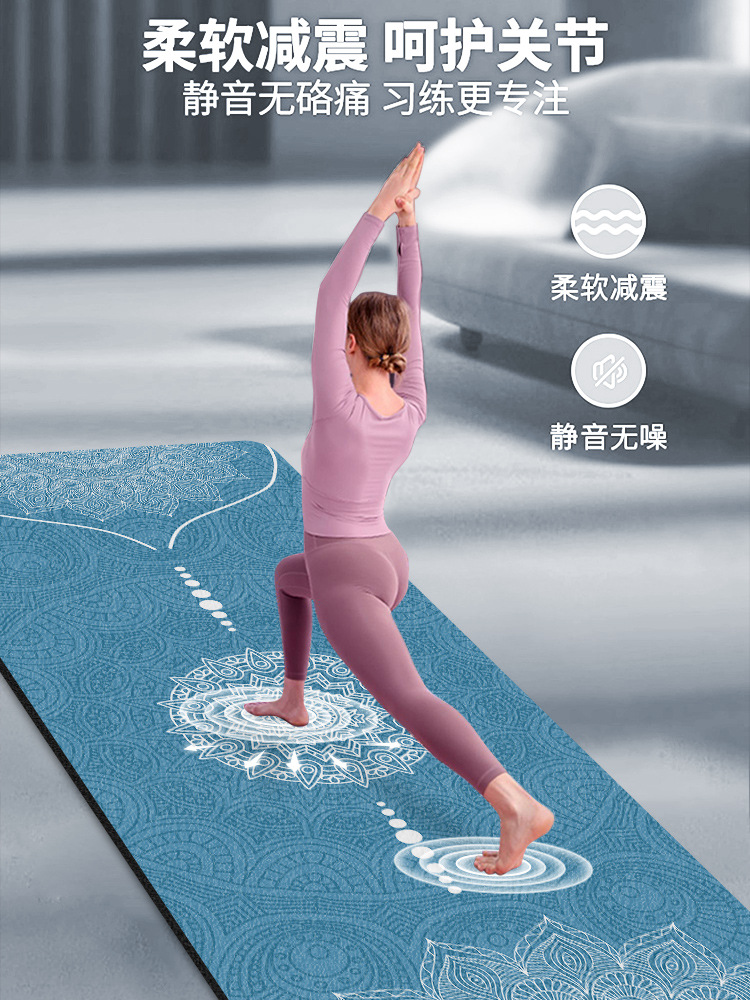두껍고 맛없는 8mm 스웨이드 고무 인쇄 요가 매트 높은 리바운드 소프트 충격 흡수 피트니스 매트 플로어 매트 미끄럼 방지