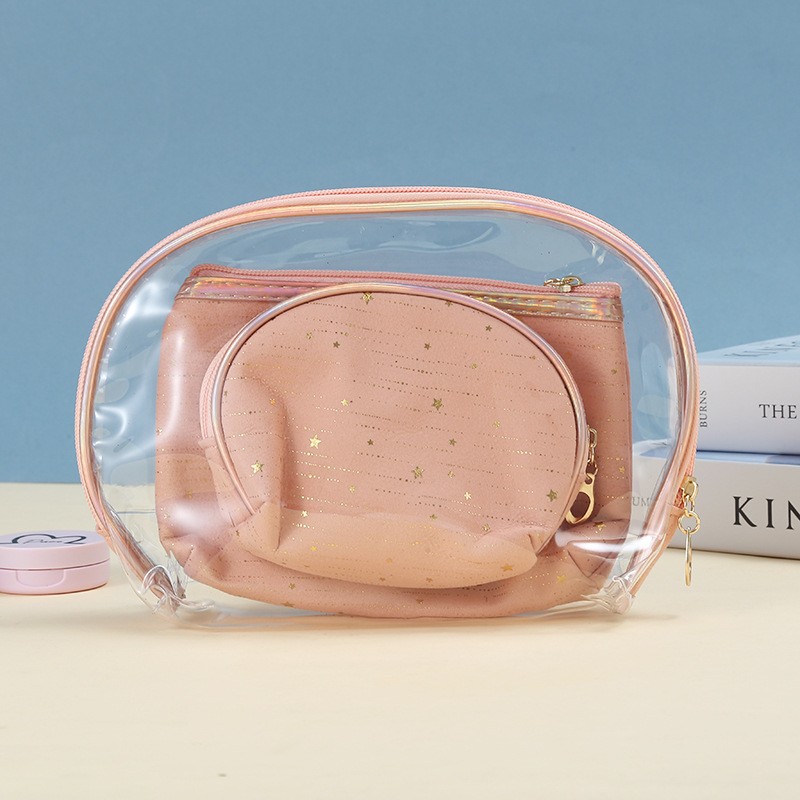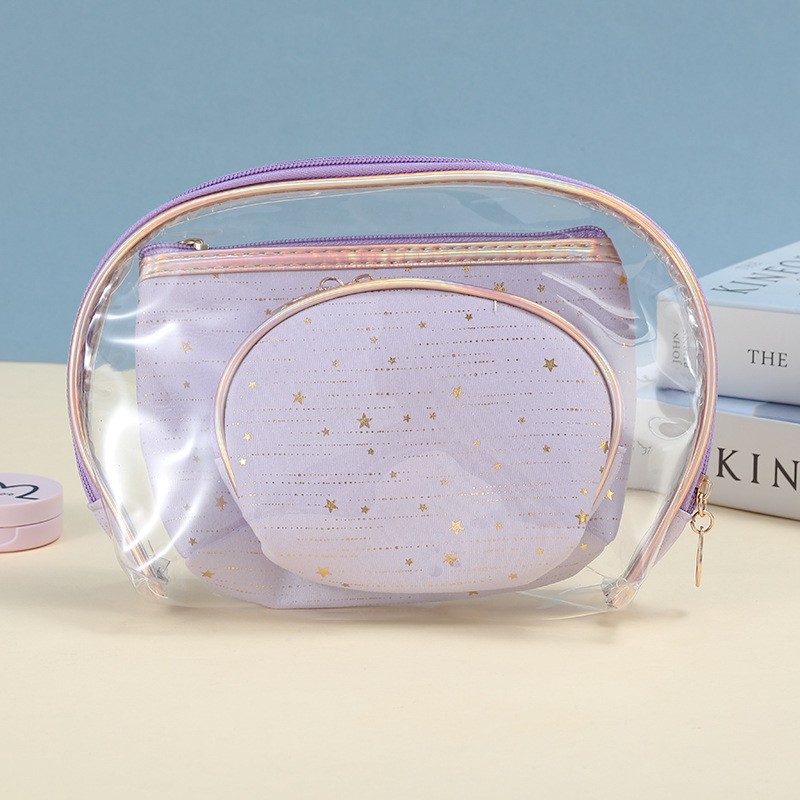 국경 간 제조업체 맞춤형 핫 스탬핑 입술 반원형 화장품 가방 3 피스 세트 대용량 방수 쉘 세면 용품 동전 지갑