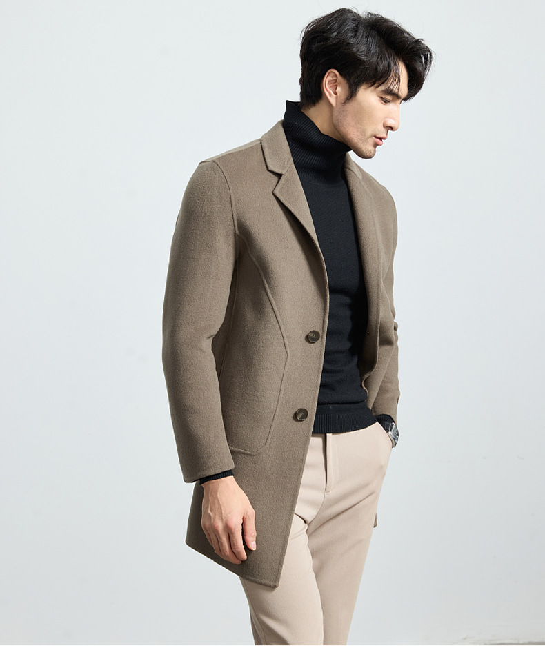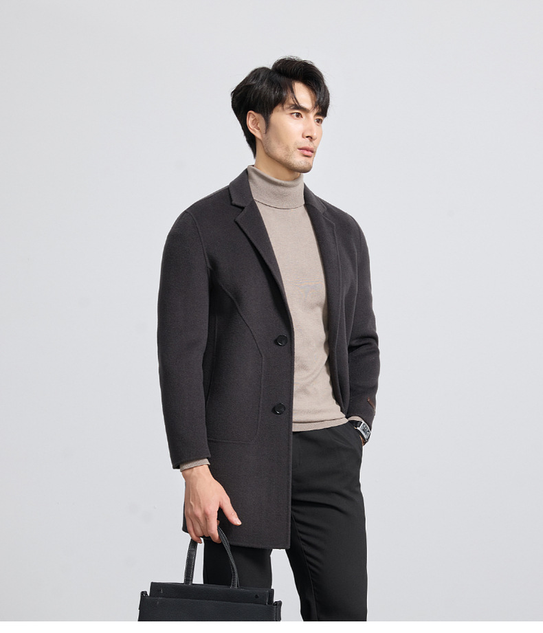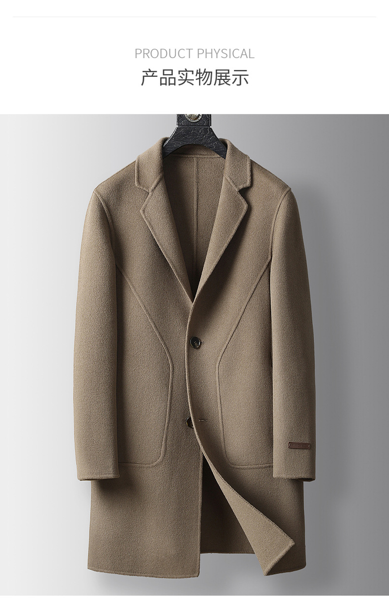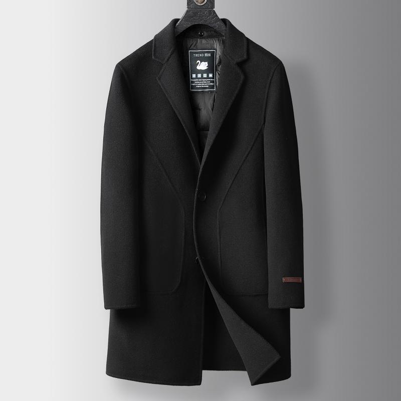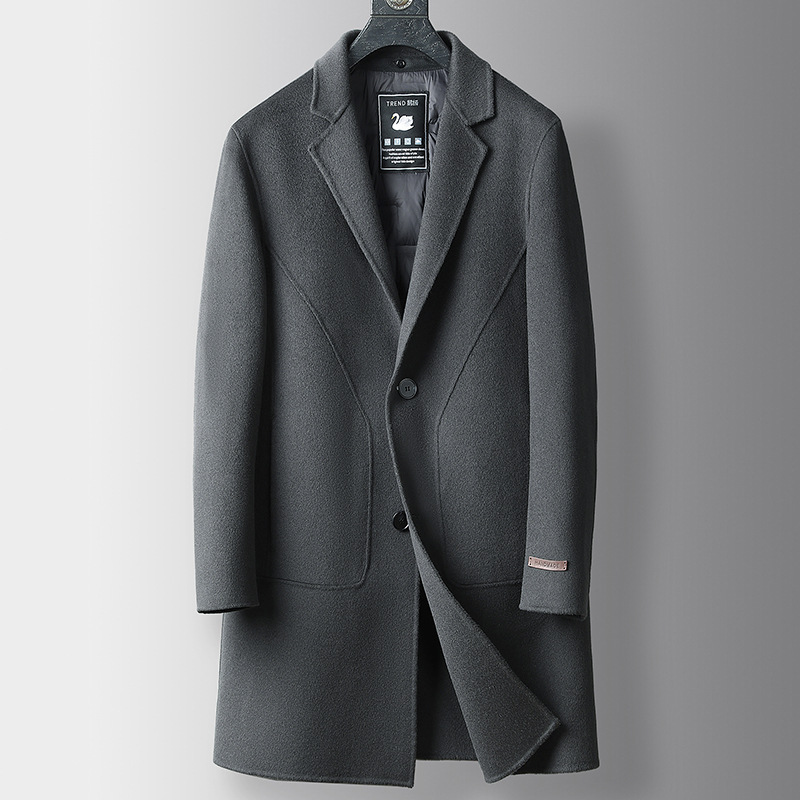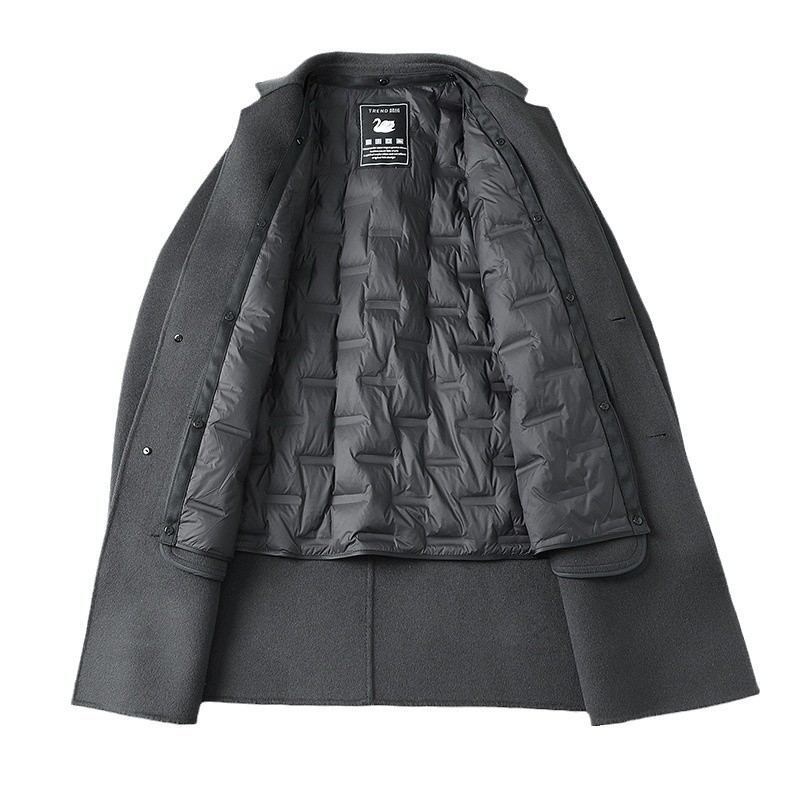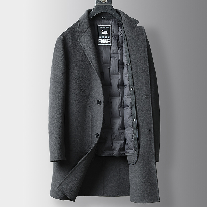 2024 년 겨울 남자 중장 양면 퓨어 울 울 캐시미어 코트 비즈니스 남성용 따뜻한 다운 재킷