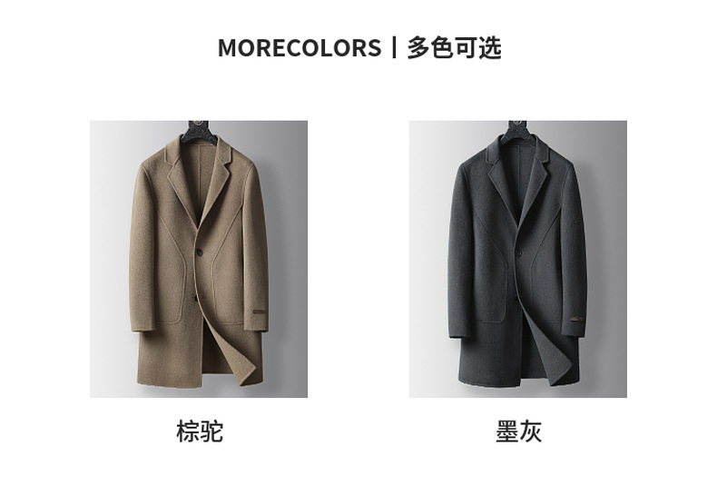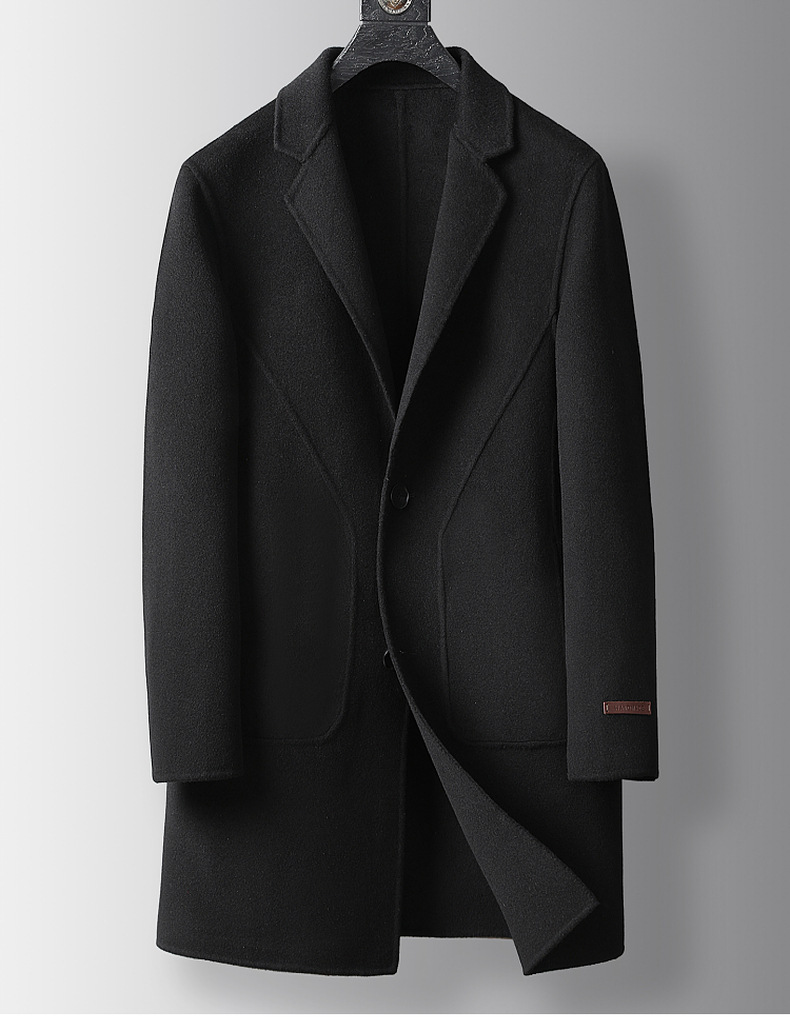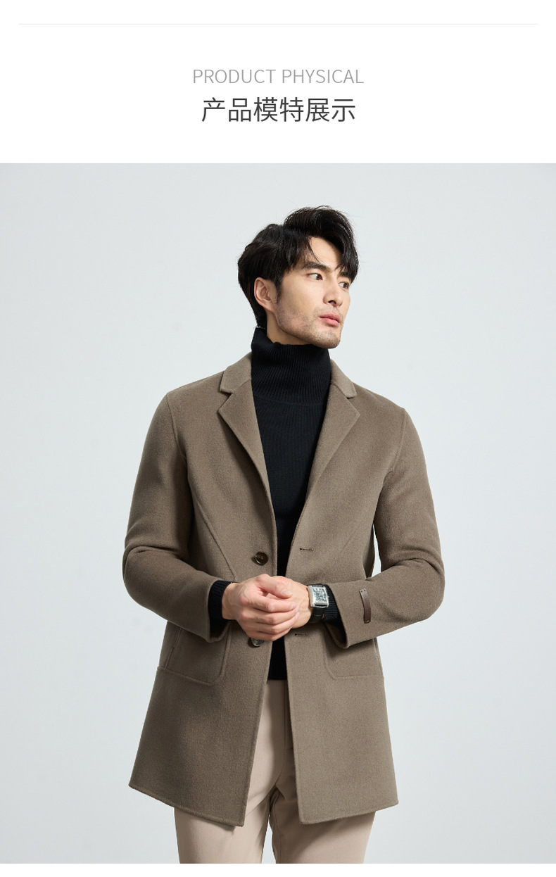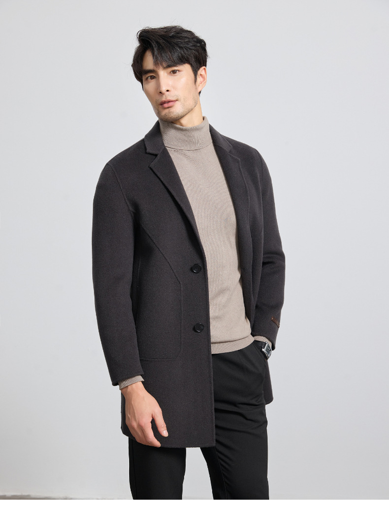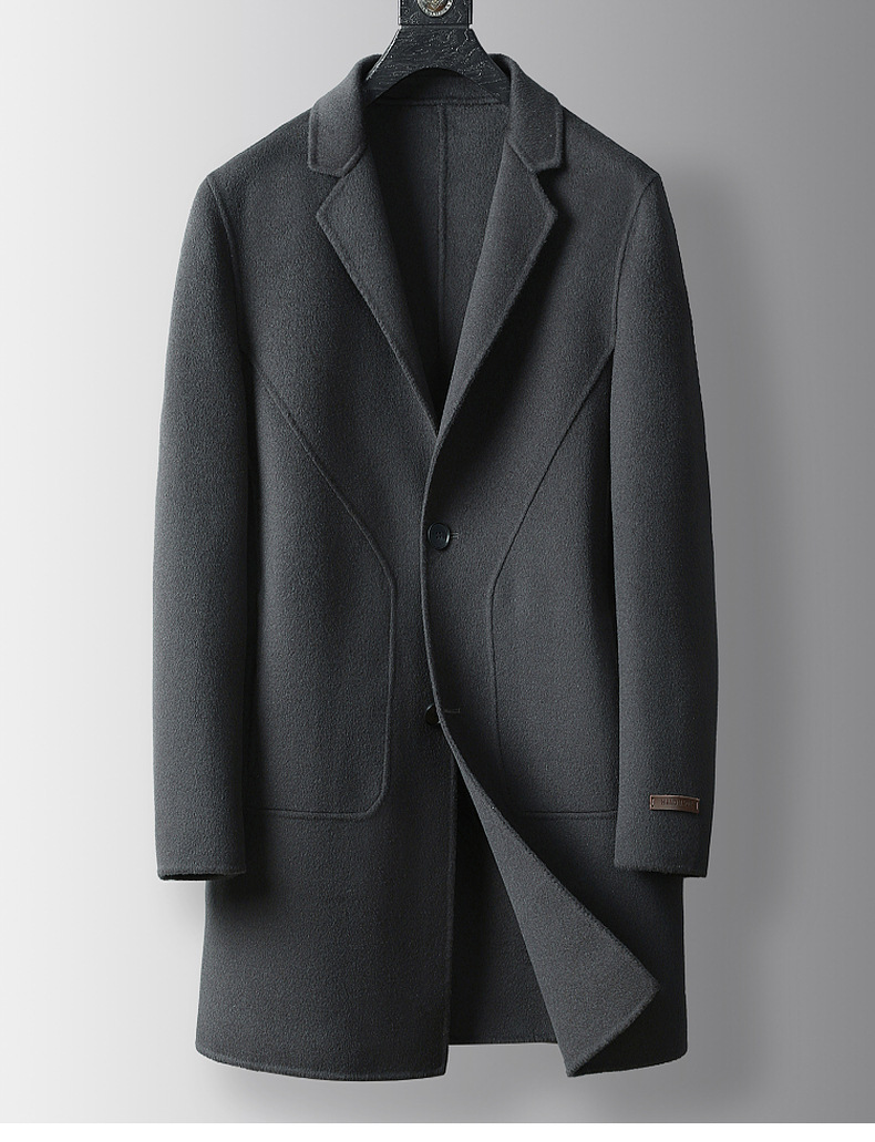 2024 년 겨울 남자 중장 양면 퓨어 울 울 캐시미어 코트 비즈니스 남성용 따뜻한 다운 재킷