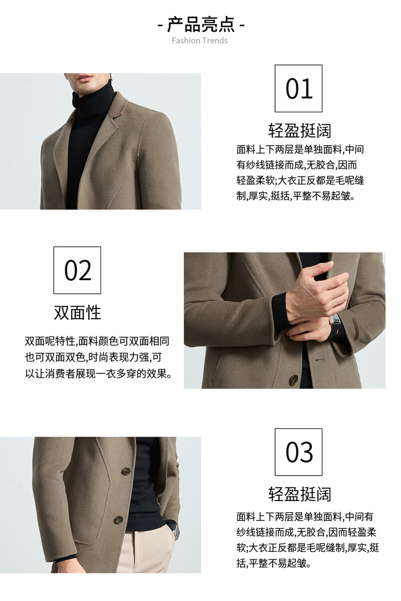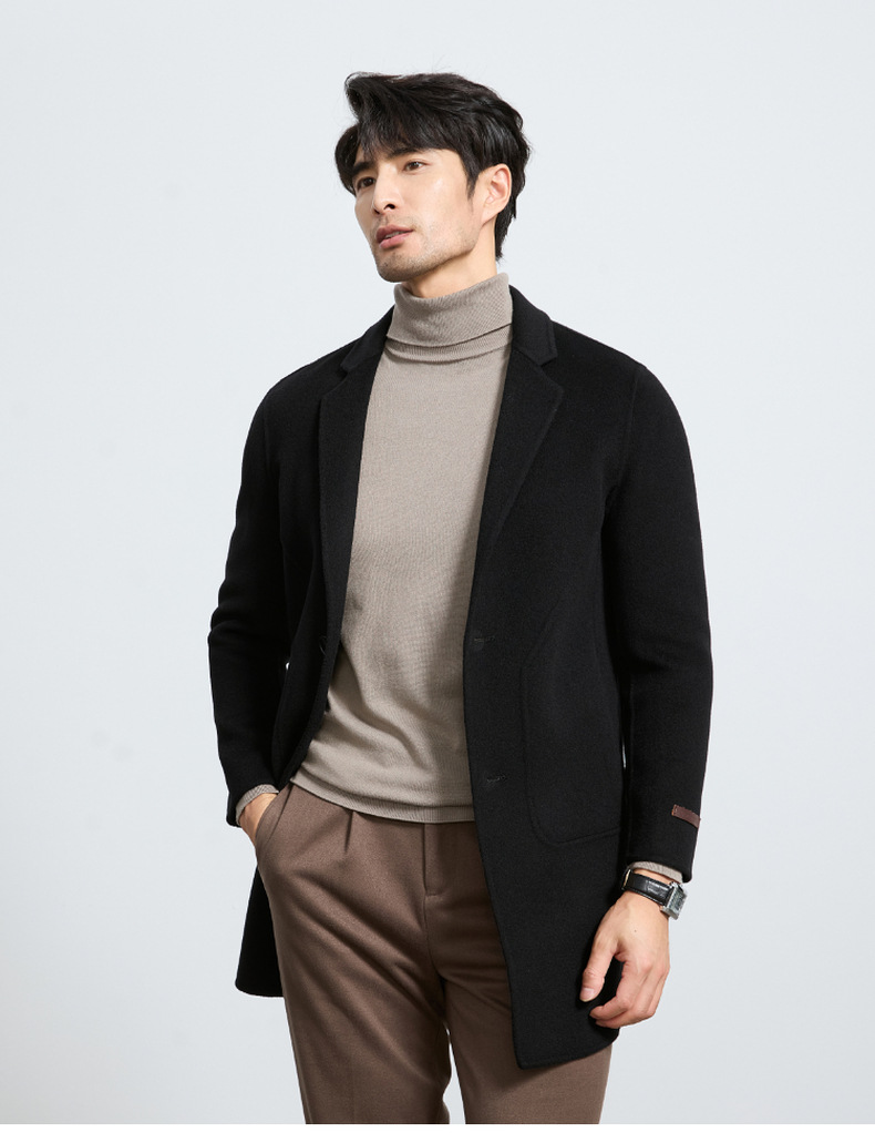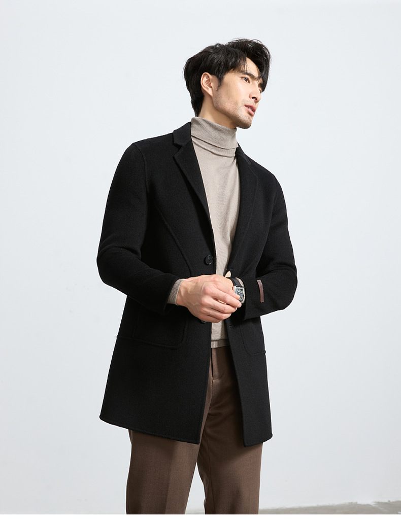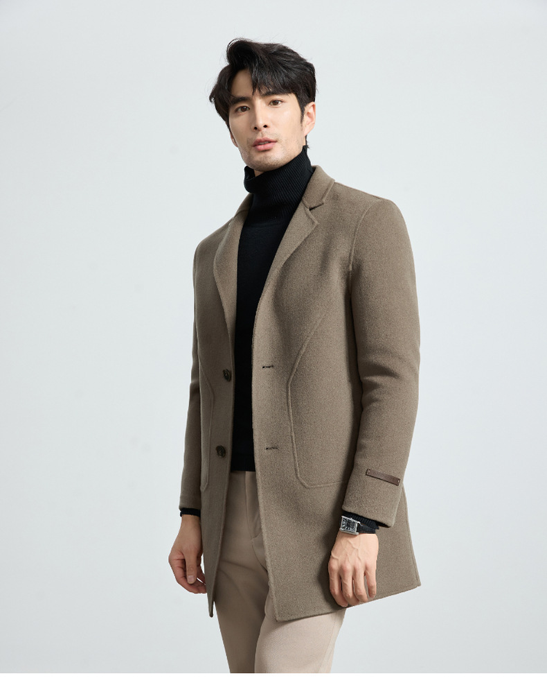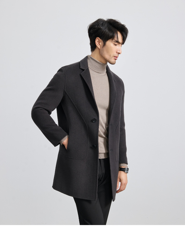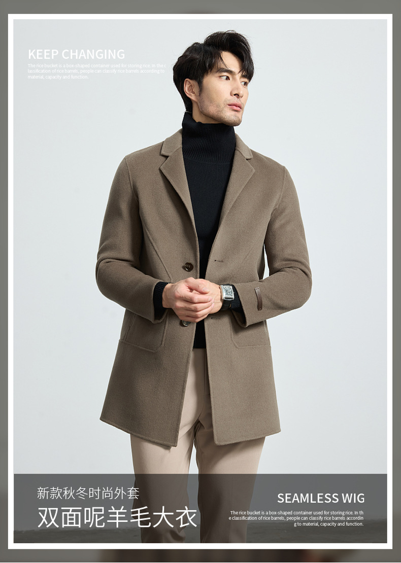 2024 년 겨울 남자 중장 양면 퓨어 울 울 캐시미어 코트 비즈니스 남성용 따뜻한 다운 재킷