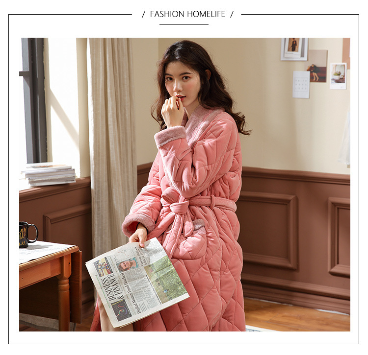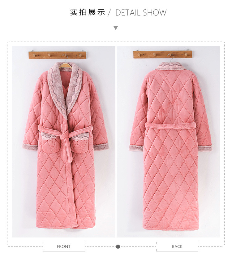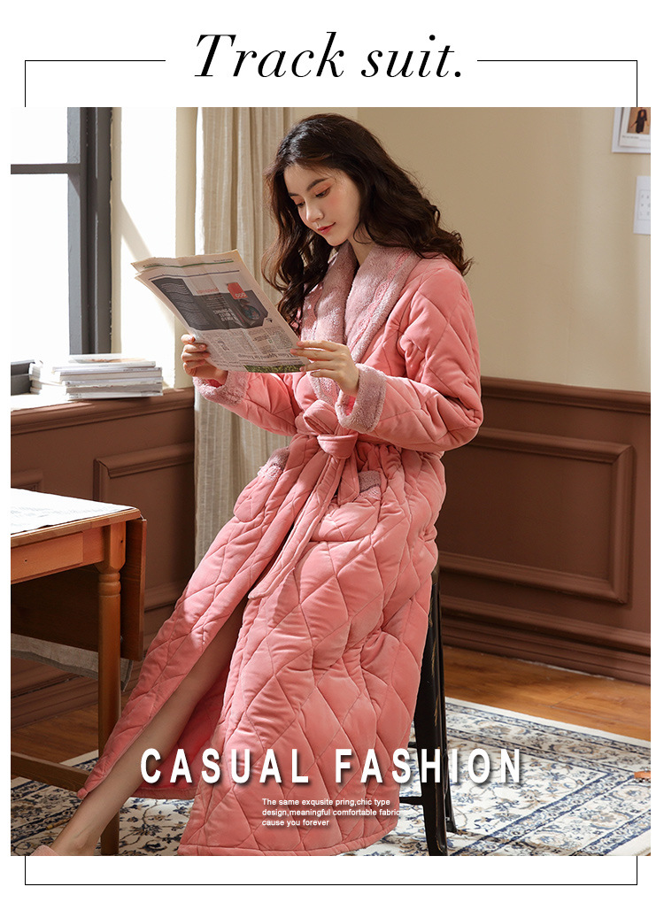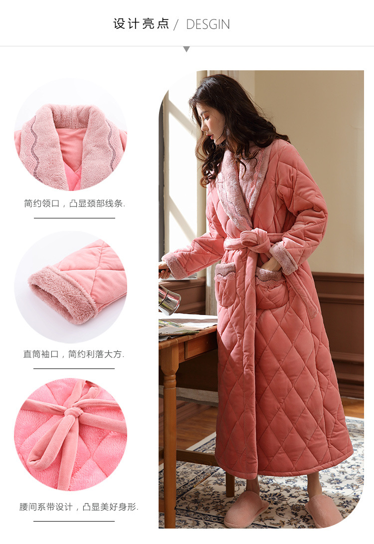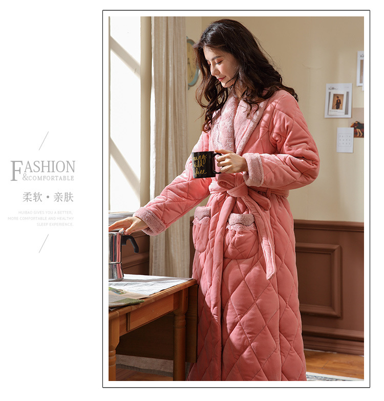 겨울 잠옷 여자 3 층 두꺼운 긴 산호 양털 퀼트 파자마 가을과 겨울 여자 기모 따뜻한 목욕 가운