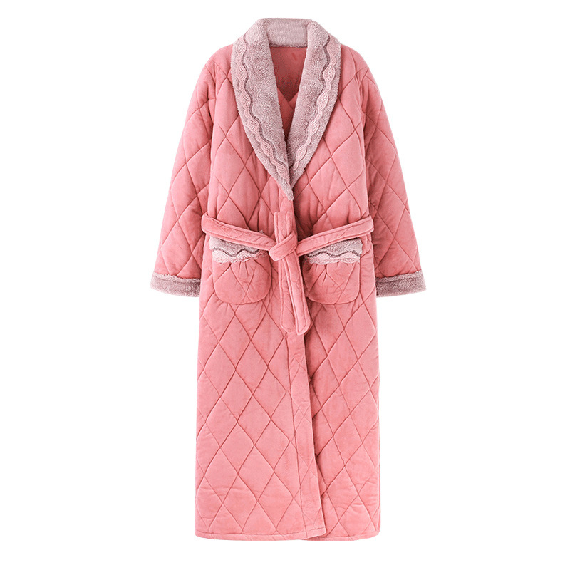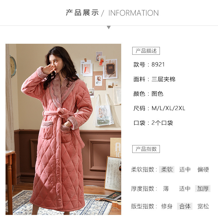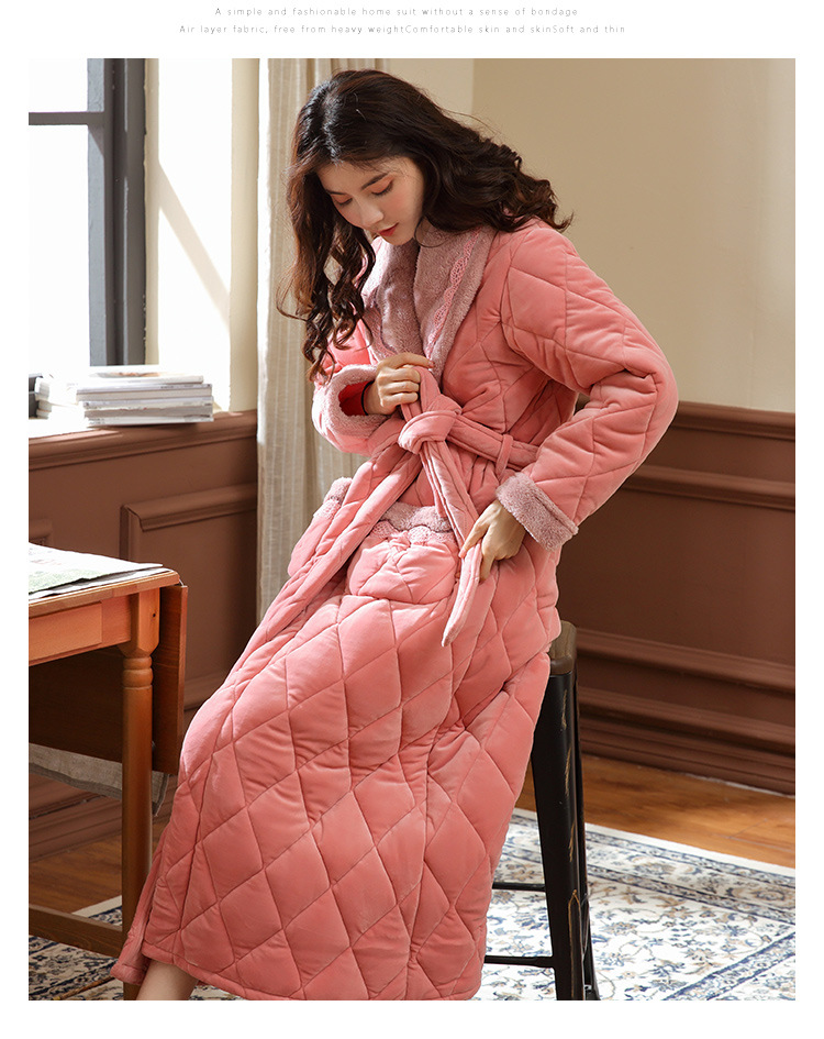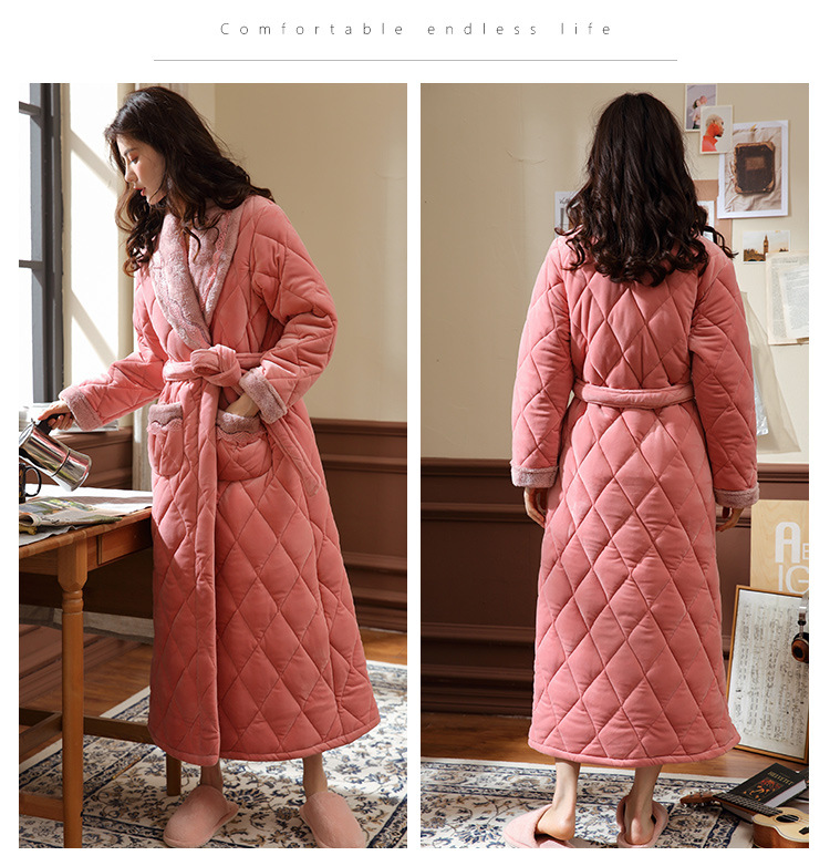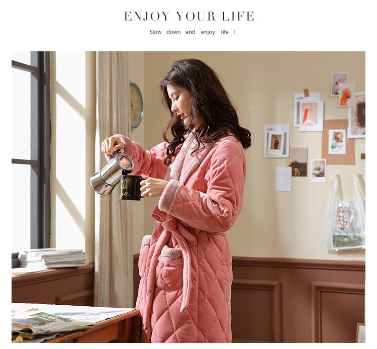 겨울 잠옷 여자 3 층 두꺼운 긴 산호 양털 퀼트 파자마 가을과 겨울 여자 기모 따뜻한 목욕 가운