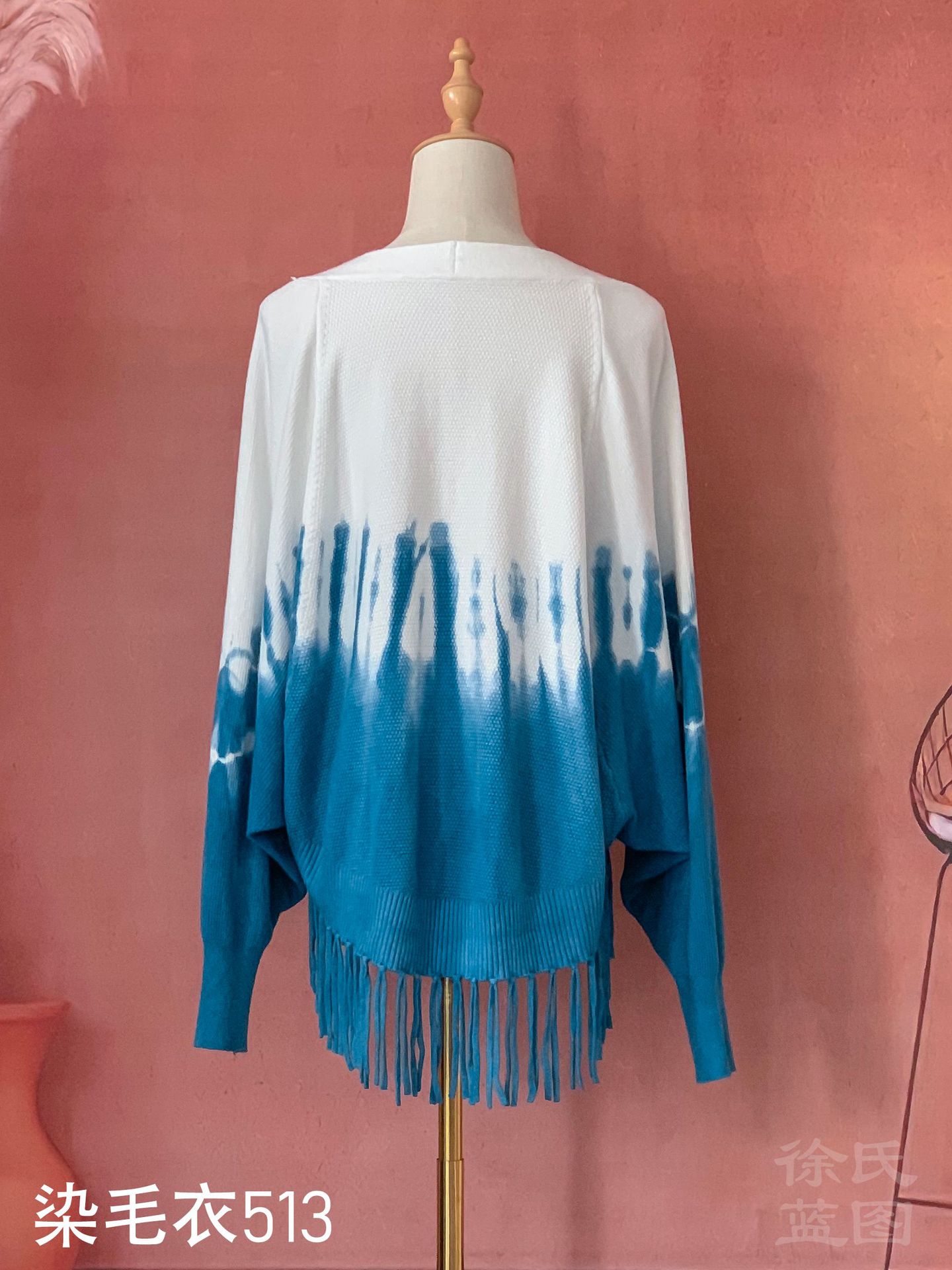 대리 수제 타이다이 가을 신상품 신선한 문예풍 여성 니트웨어 블루 다이 프린지 가디건 스웨터 코트