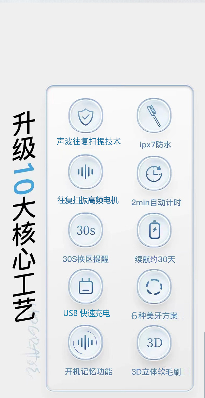 파란색 자기 부상 음파 모델 + 칫솔모 4개