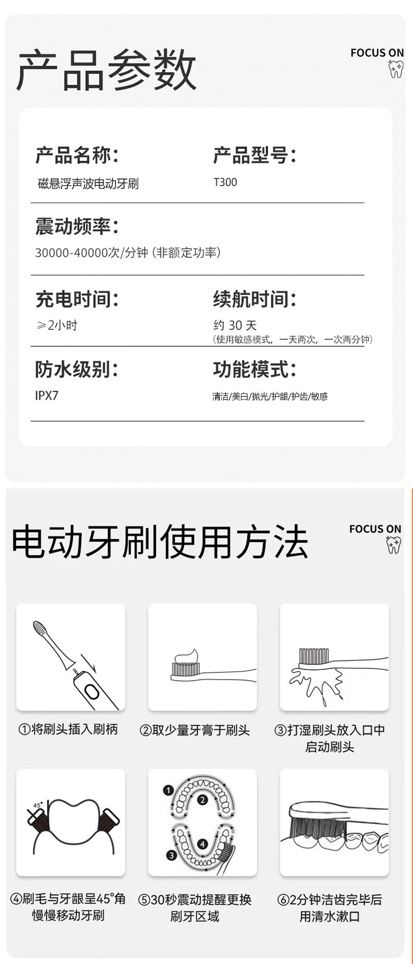 흰색 자기 부상 음파 모델 + 칫솔모 4개