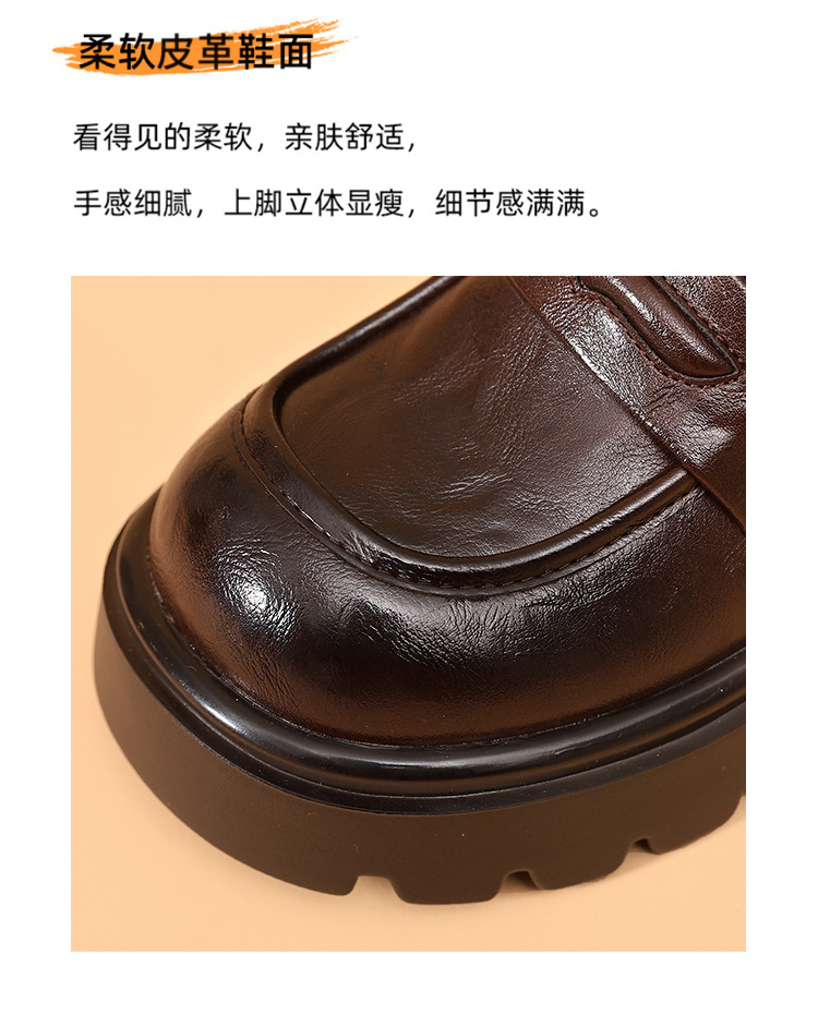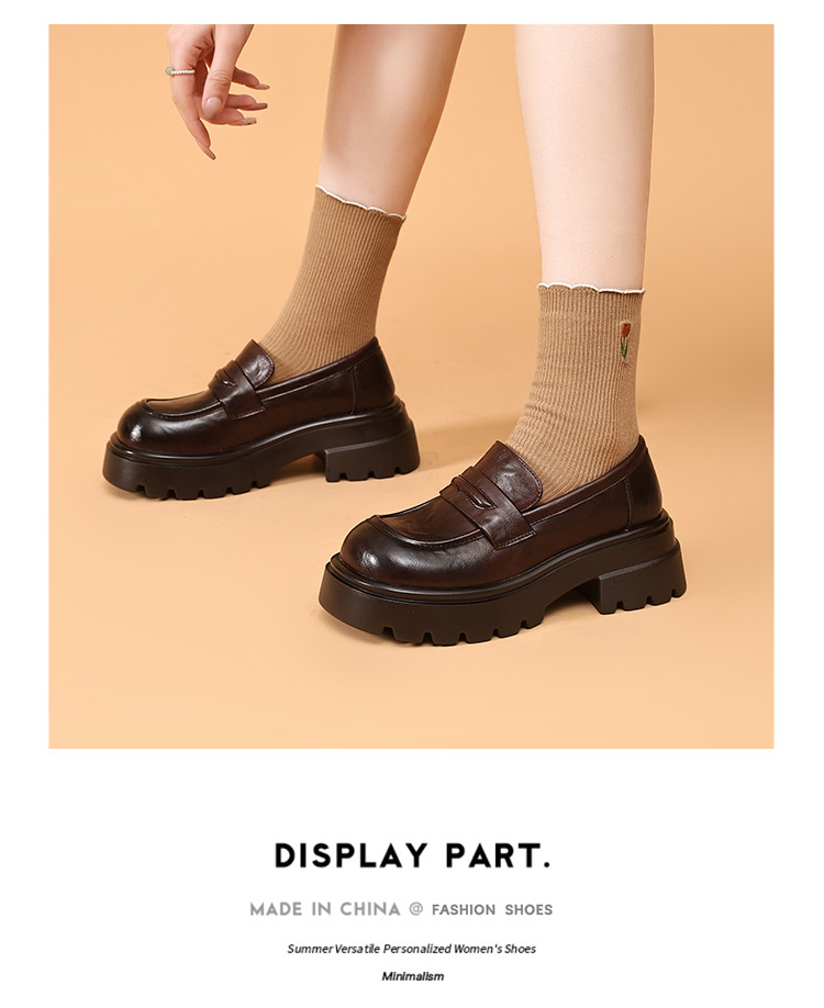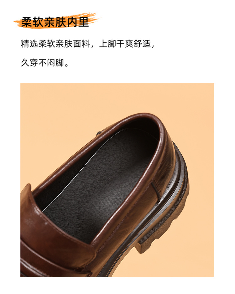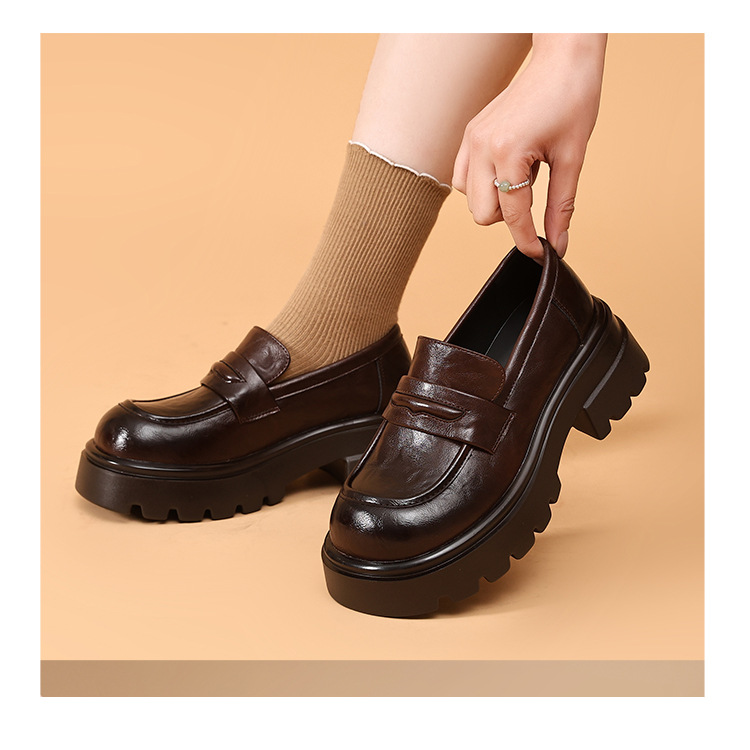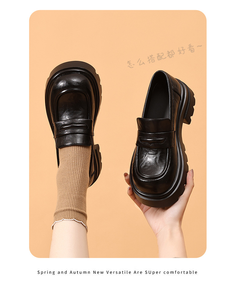 여성용 두꺼운 밑창 로퍼 2024 봄 가을 신상품, 스커트와 함께 입는 여성용 가죽 슈즈, 다용도 슬립온 슈즈, 굽이 두꺼운