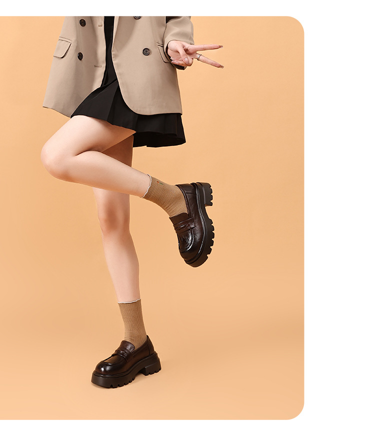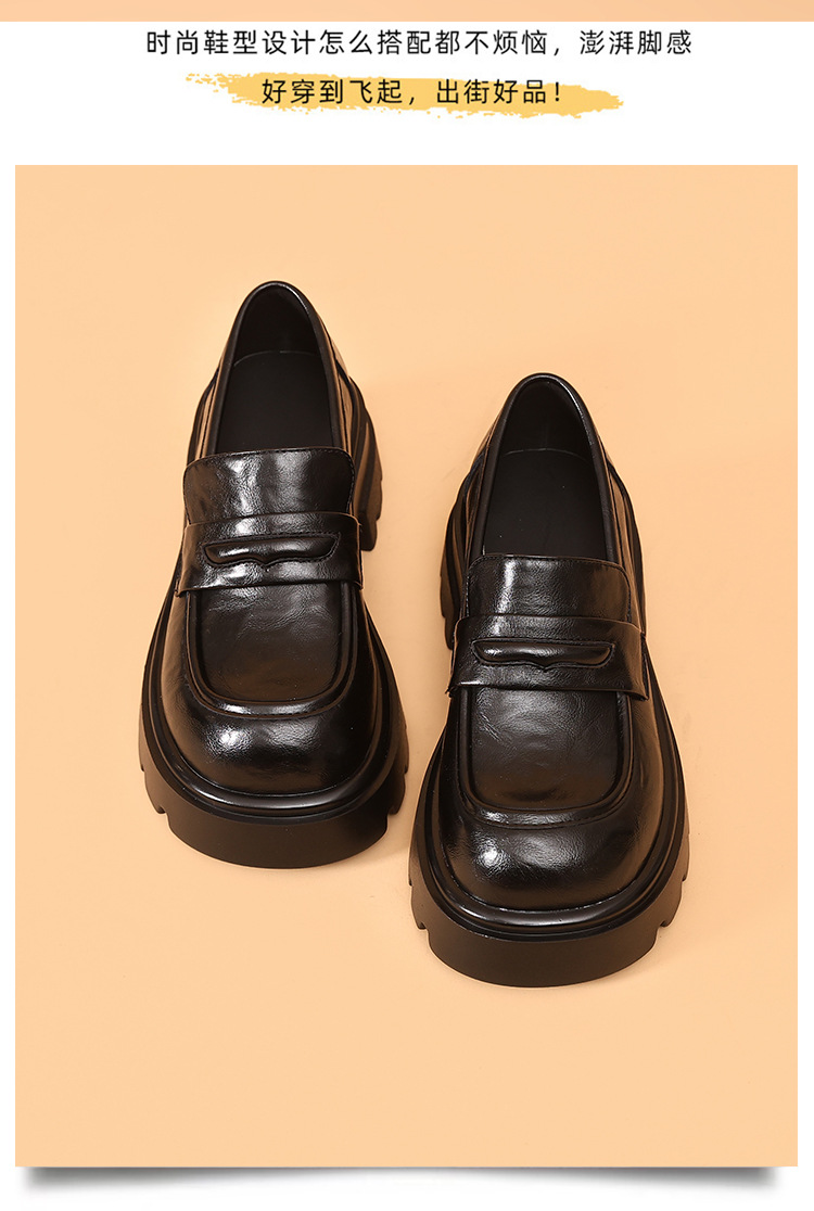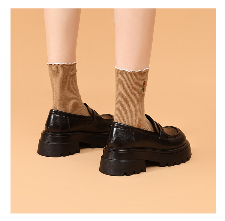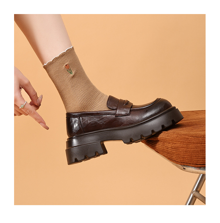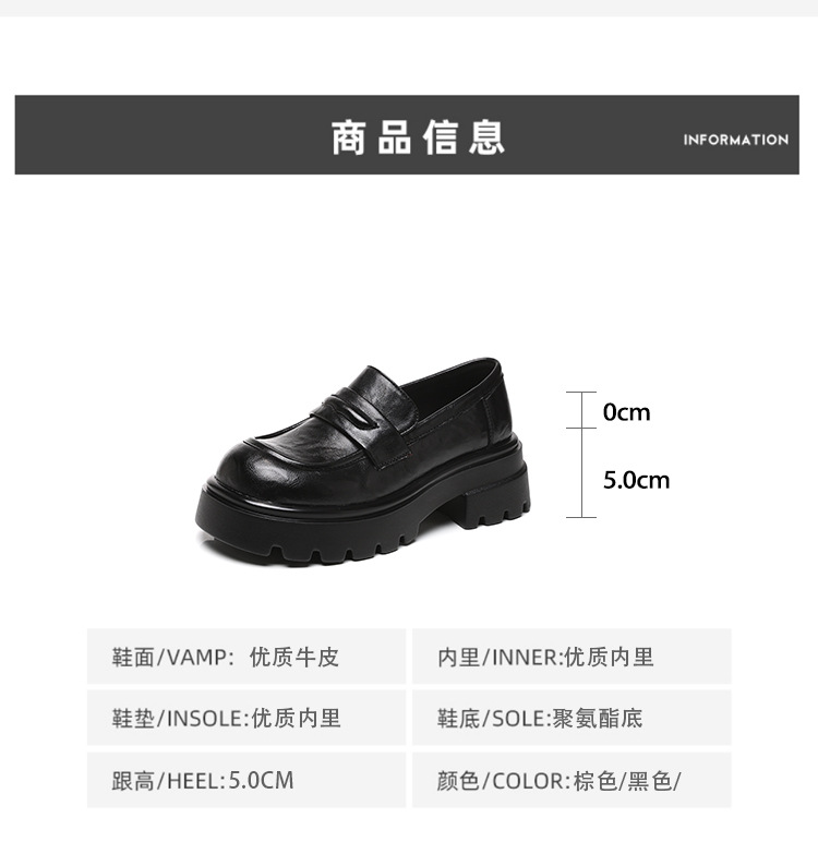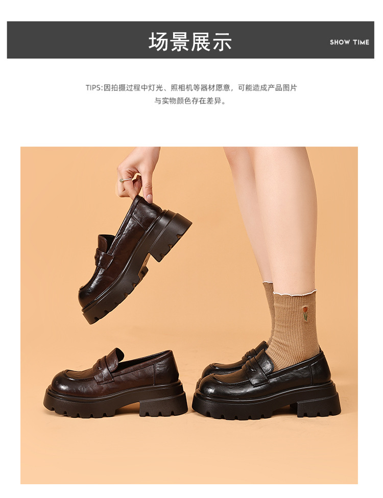여성용 두꺼운 밑창 로퍼 2024 봄 가을 신상품, 스커트와 함께 입는 여성용 가죽 슈즈, 다용도 슬립온 슈즈, 굽이 두꺼운