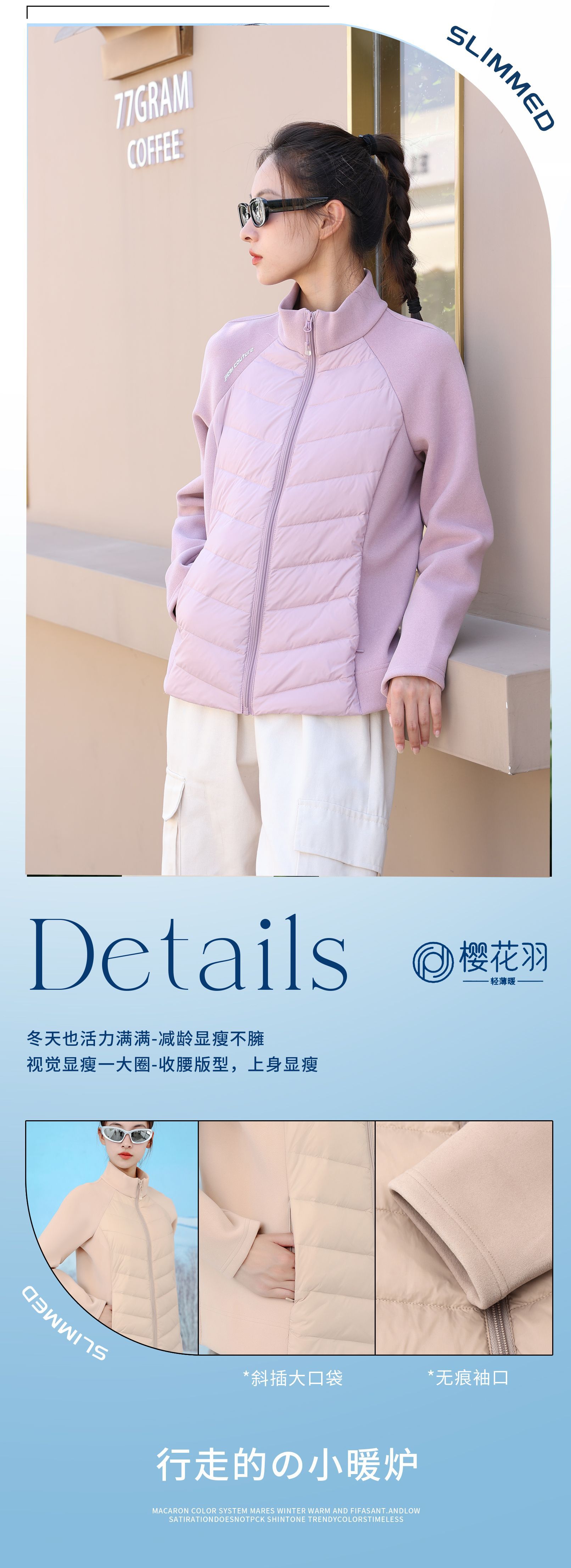2024 새로운 다운 재킷 새로운 국가 표준 90 벨벳 얇은 스탠드 칼라 여성 요가 스티칭 단색 슬림 올 매치 스포츠 스타일