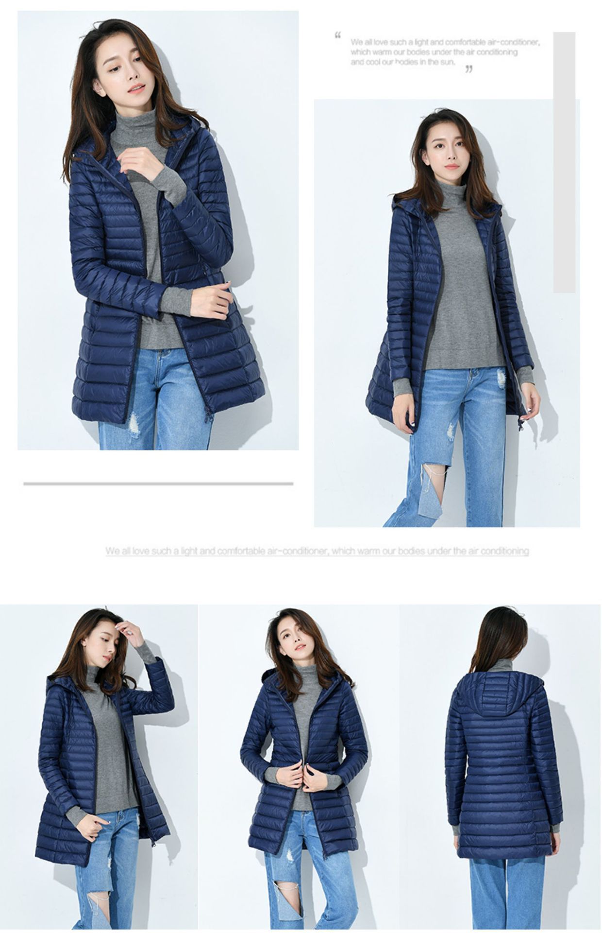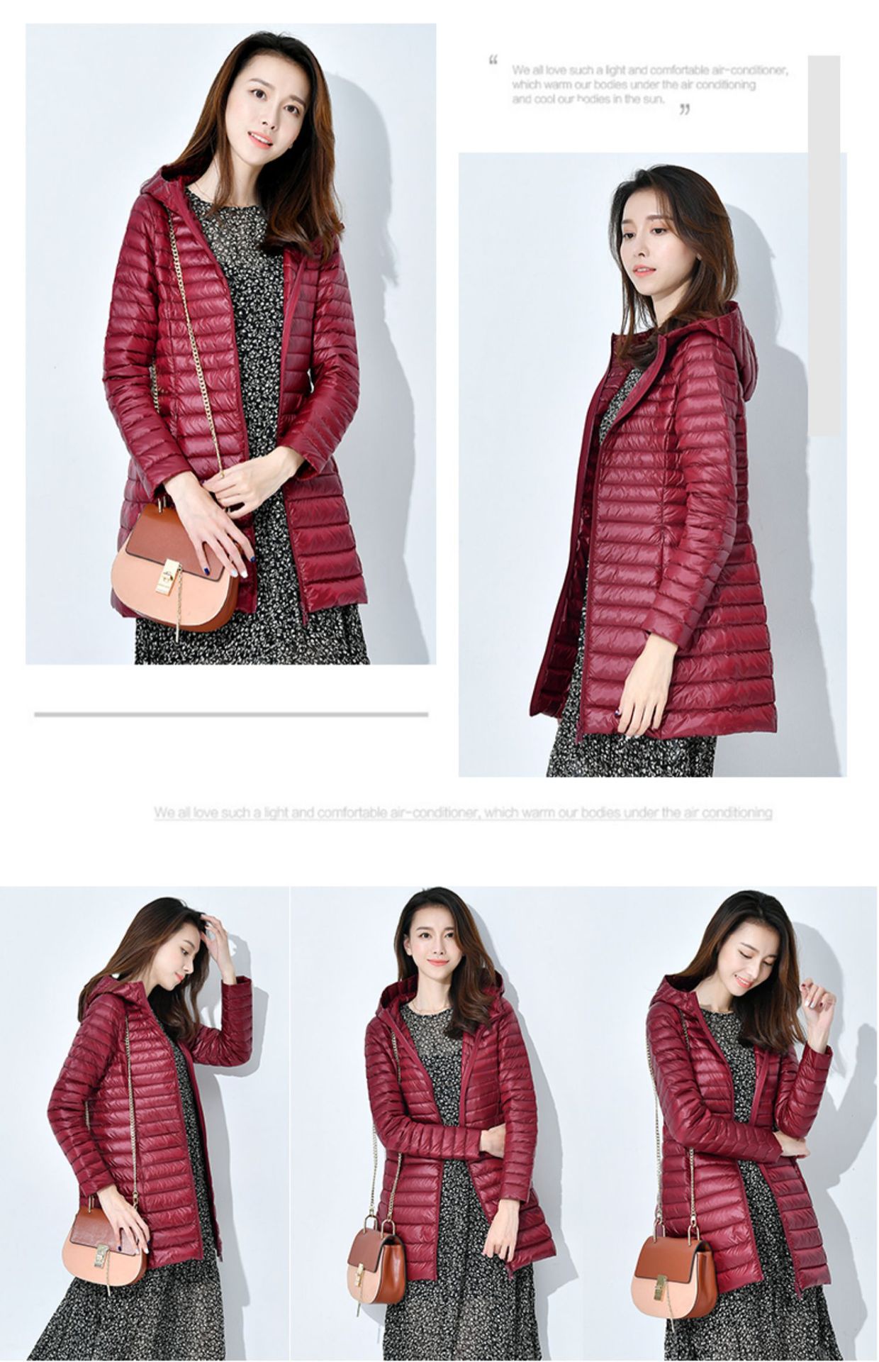 여성용 겨울 신상 중간 길이 경량 화이트 덕다운 다운 재킷, 두꺼운 보온성, 슬림핏, 한국 스타일 패션