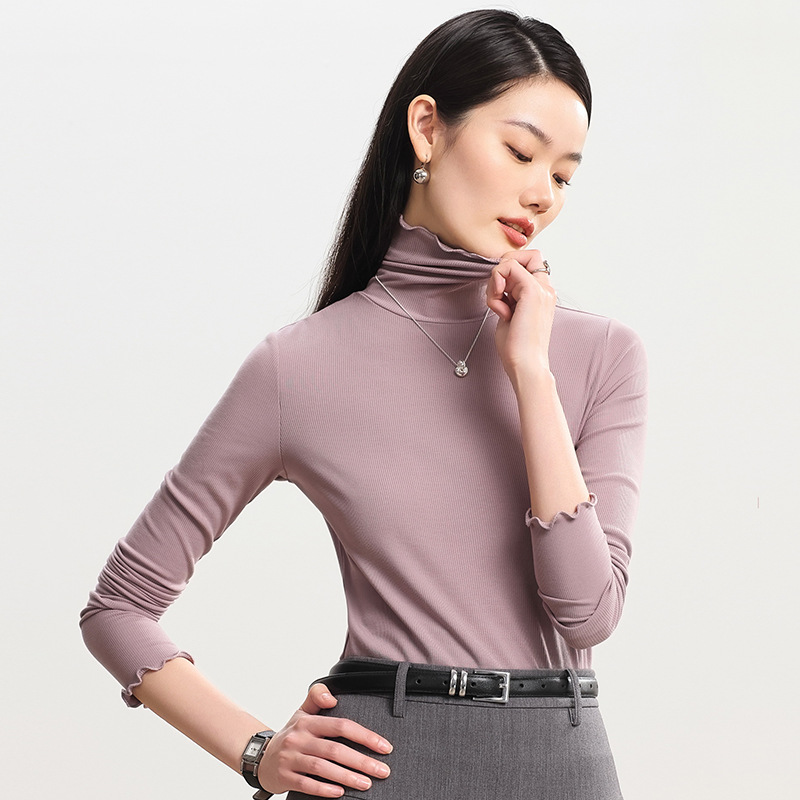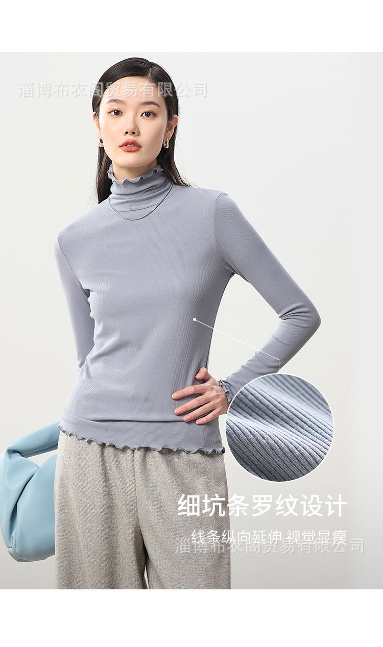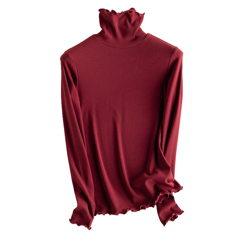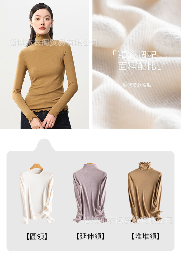 레이스 파일 칼라 하이 칼라베이스 셔츠 여성용 긴팔 티셔츠 가을과 겨울 샌딩 두꺼운 따뜻한 내부