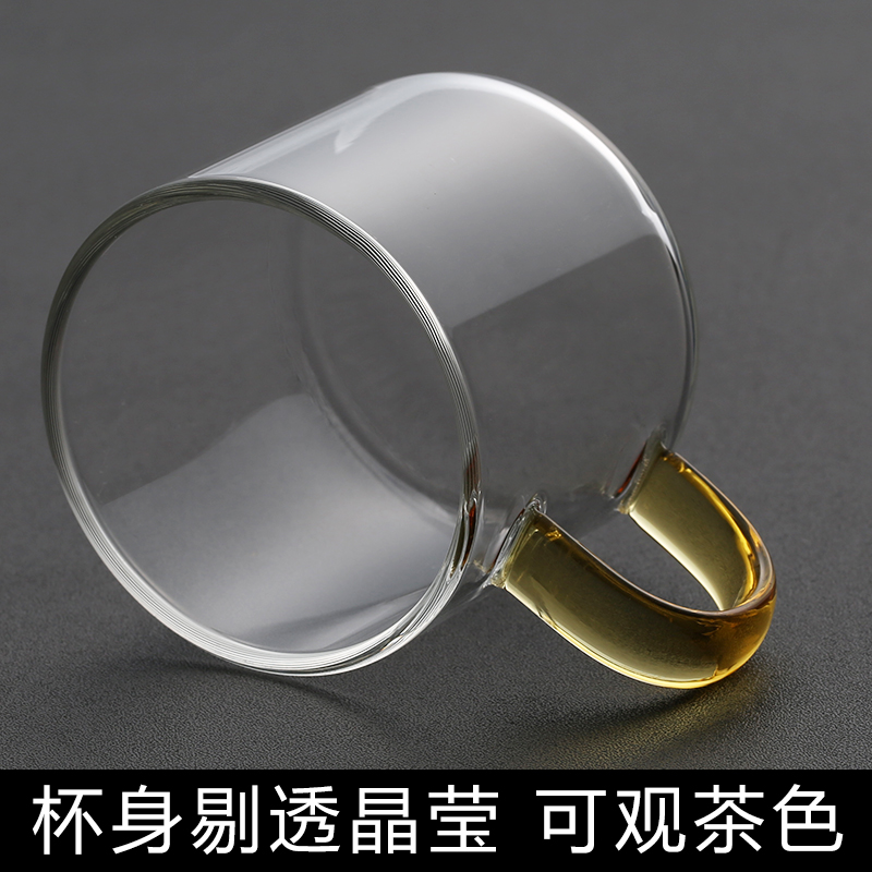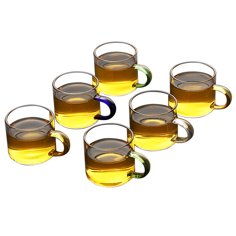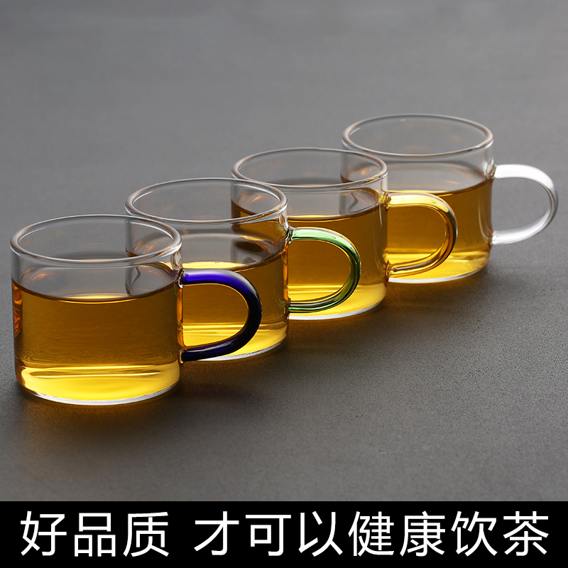 두꺼운 내열 유리 티 컵 작은 티 컵 핸들 컵 쿵푸 티 세트 티 이어 컵 티 그릇 가정용 세트