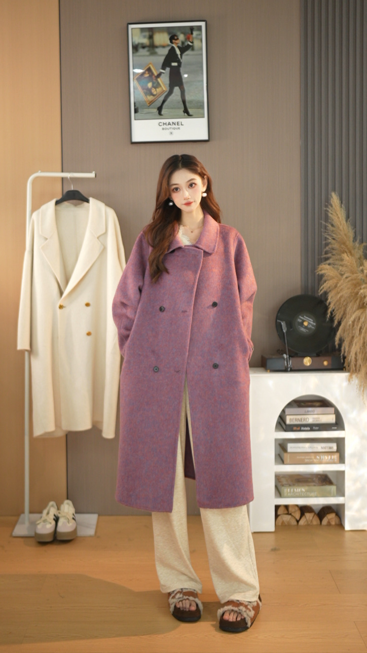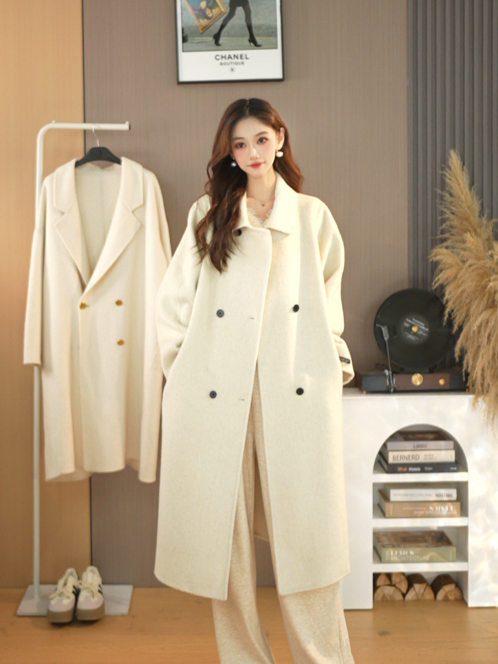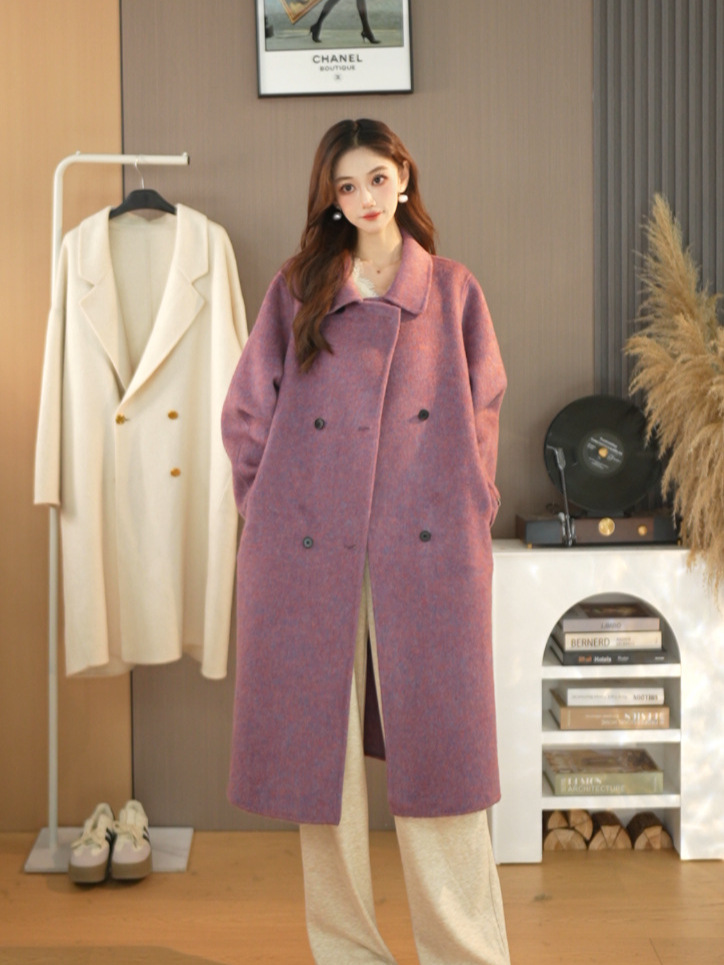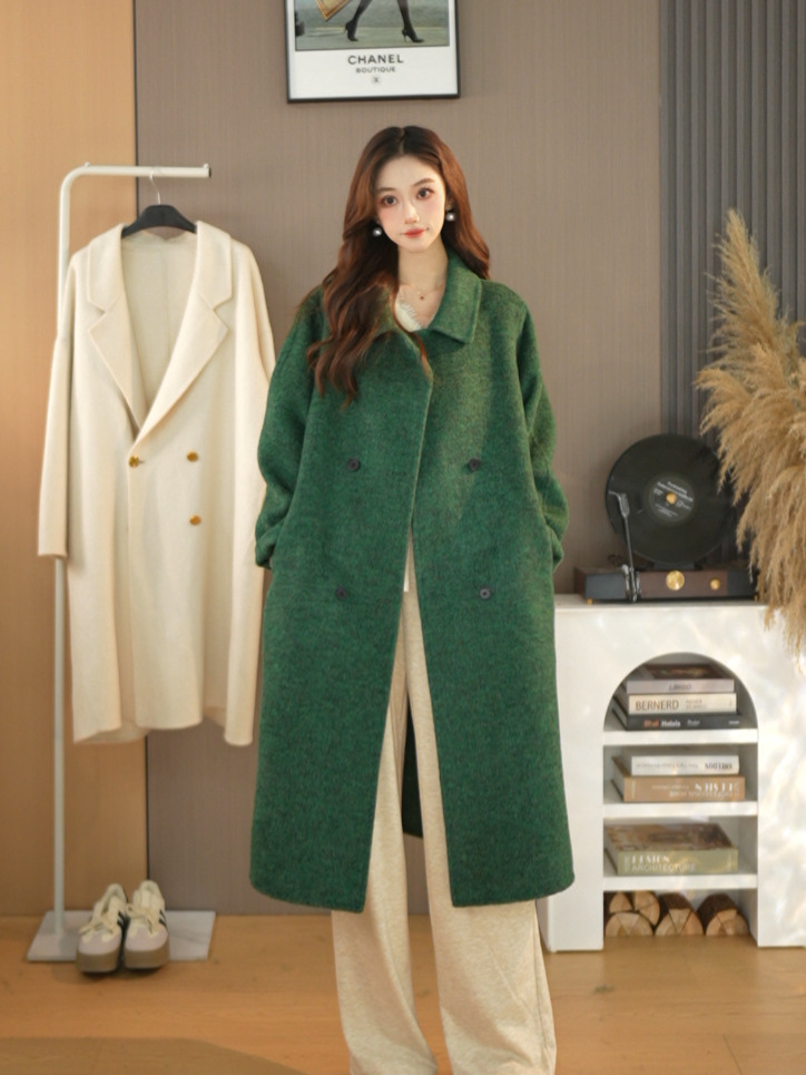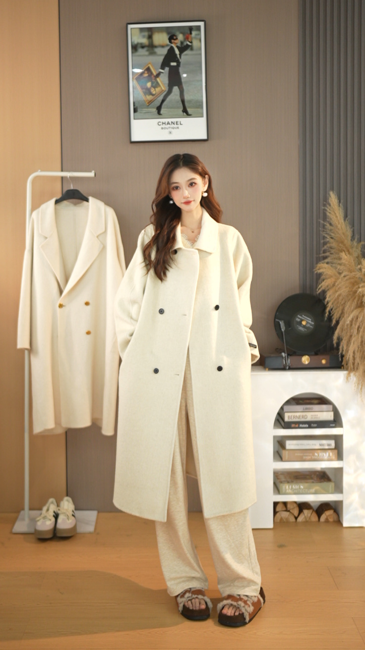 25가지 인기 한국 스타일 루즈핏 슬림 울 코트, 롱 패션 자켓, 여성용 고급스러운 분위기