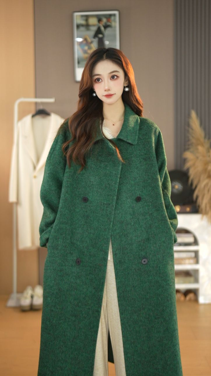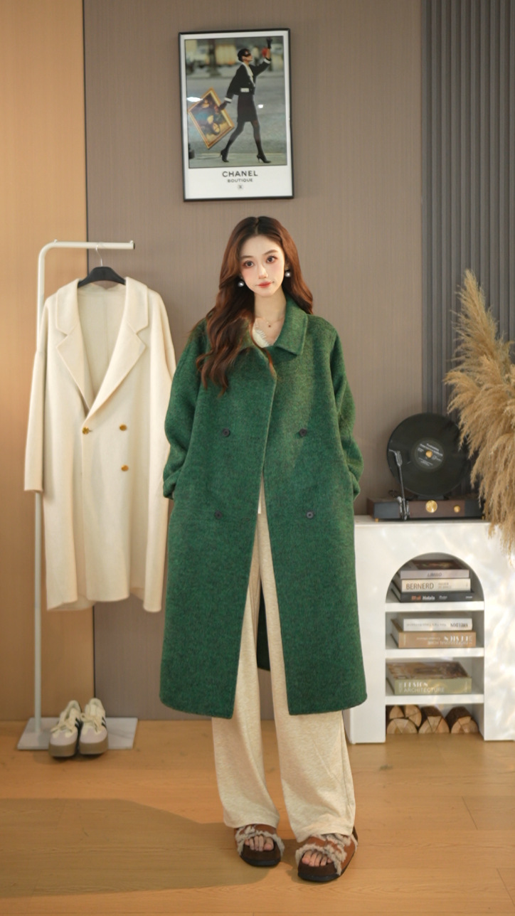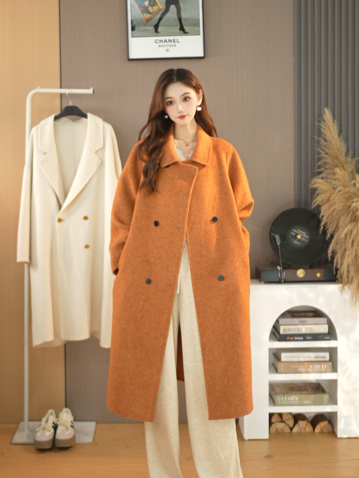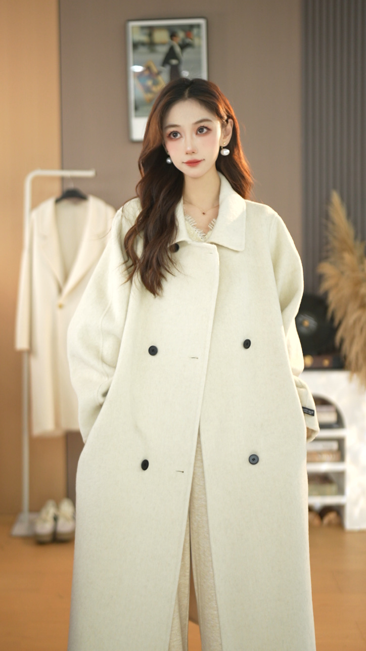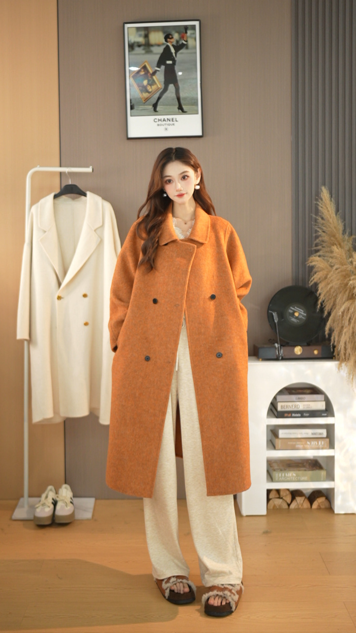 25가지 인기 한국 스타일 루즈핏 슬림 울 코트, 롱 패션 자켓, 여성용 고급스러운 분위기