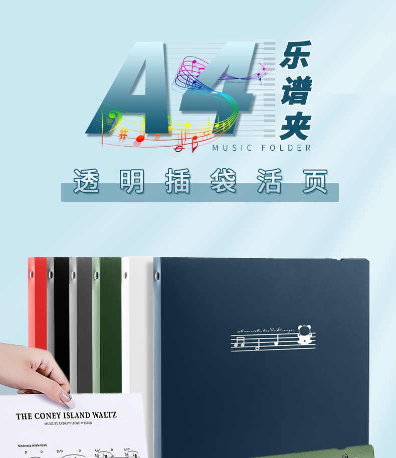 A4 다층 투명 삽입 악보 폴더 사무실 학생 데이터 책 저장 책 바인더 피아노 음악 폴더