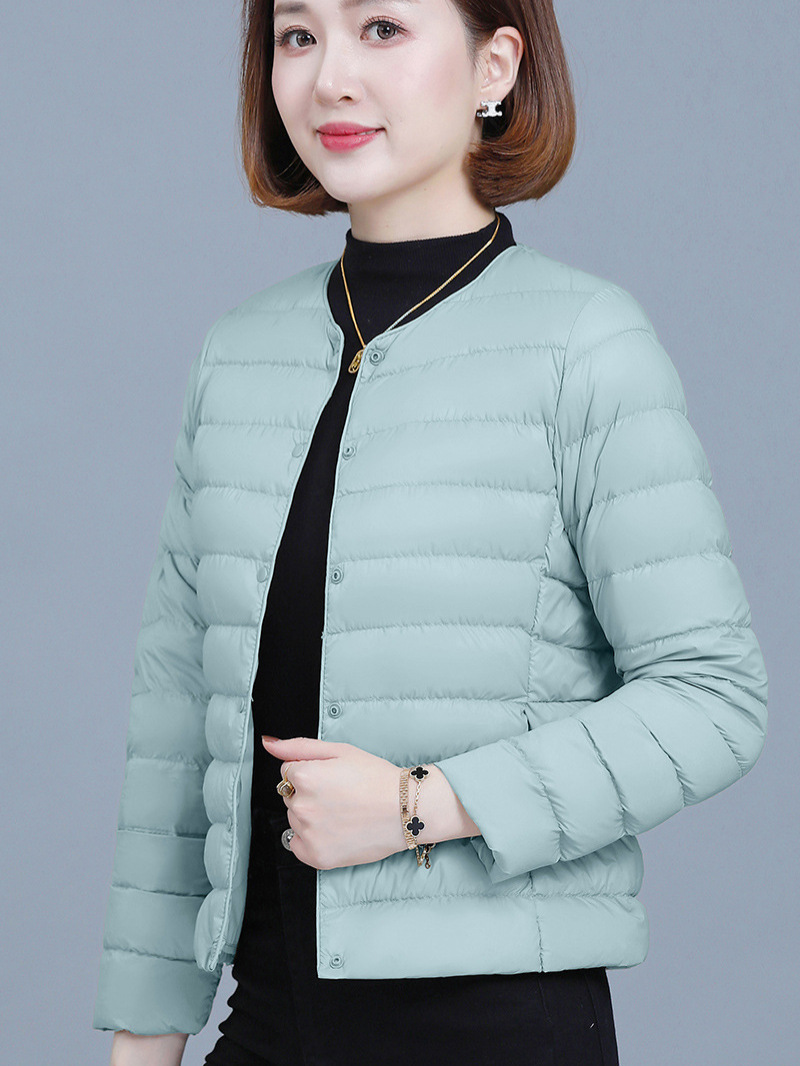 가볍고 얇은 라이너 바닥 칼라리스 다운 재킷 여성의 2024 년 새로운 겨울 폭발 고급 오리 다운 따뜻한 짧은 코트