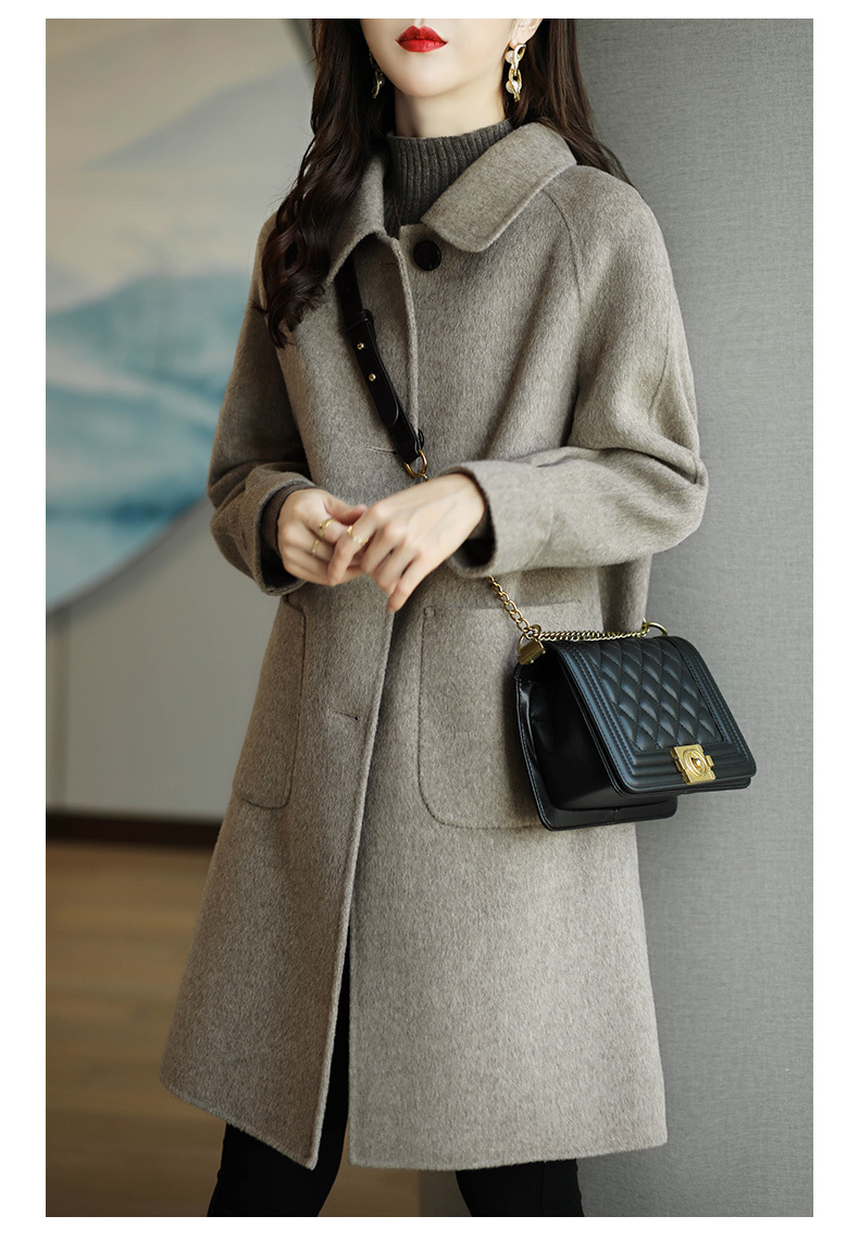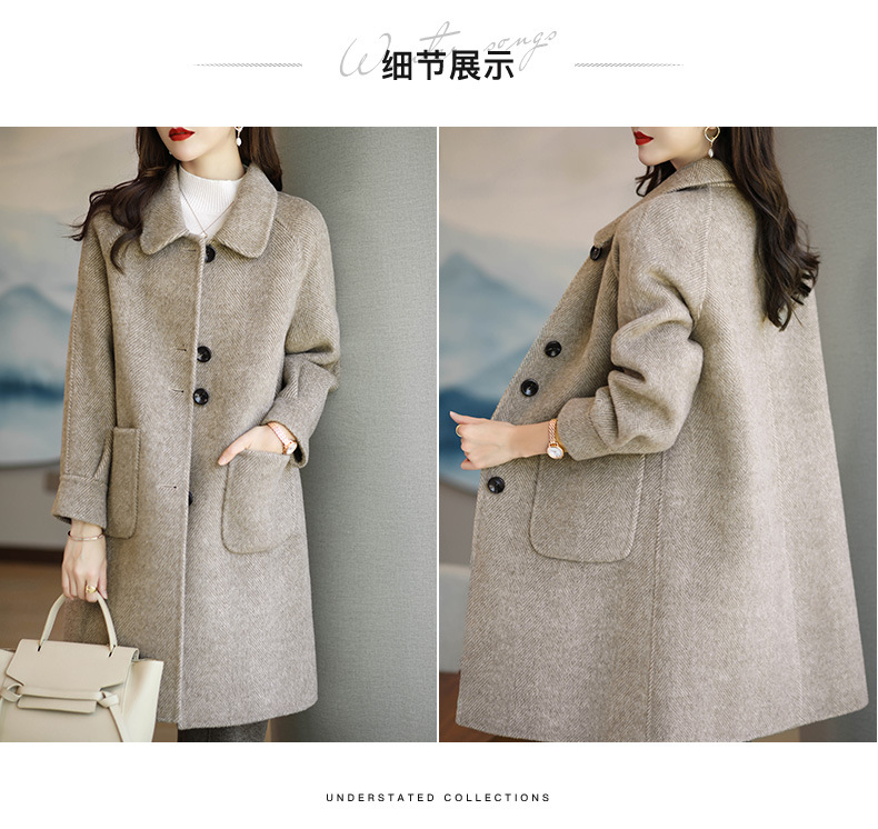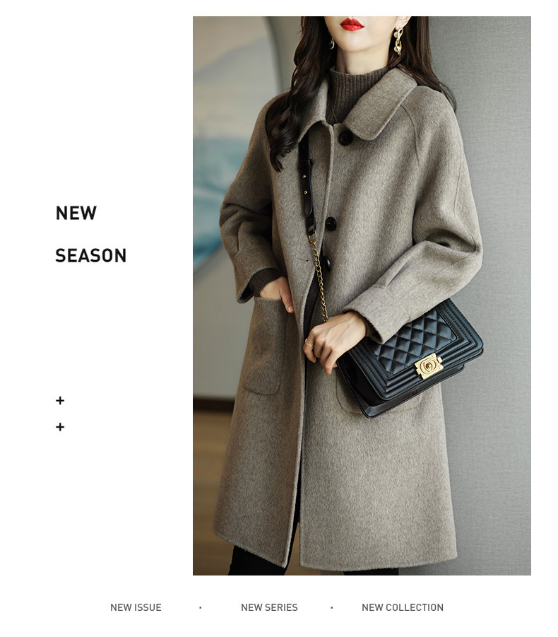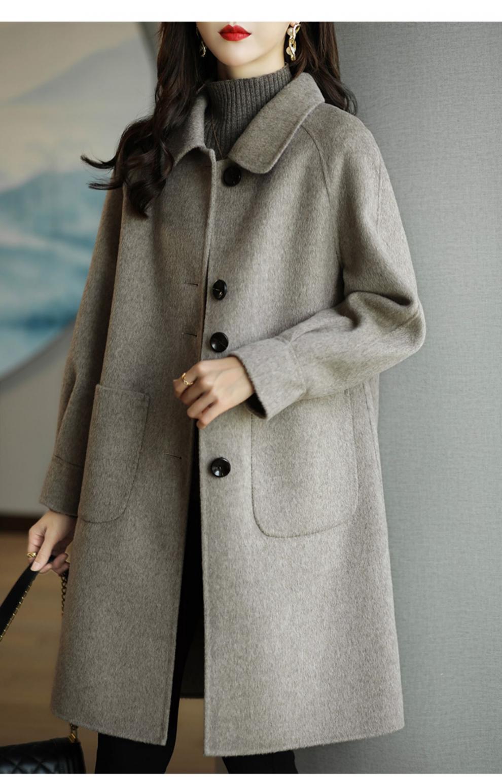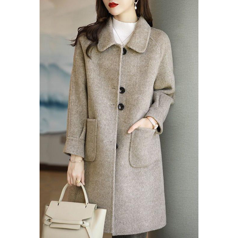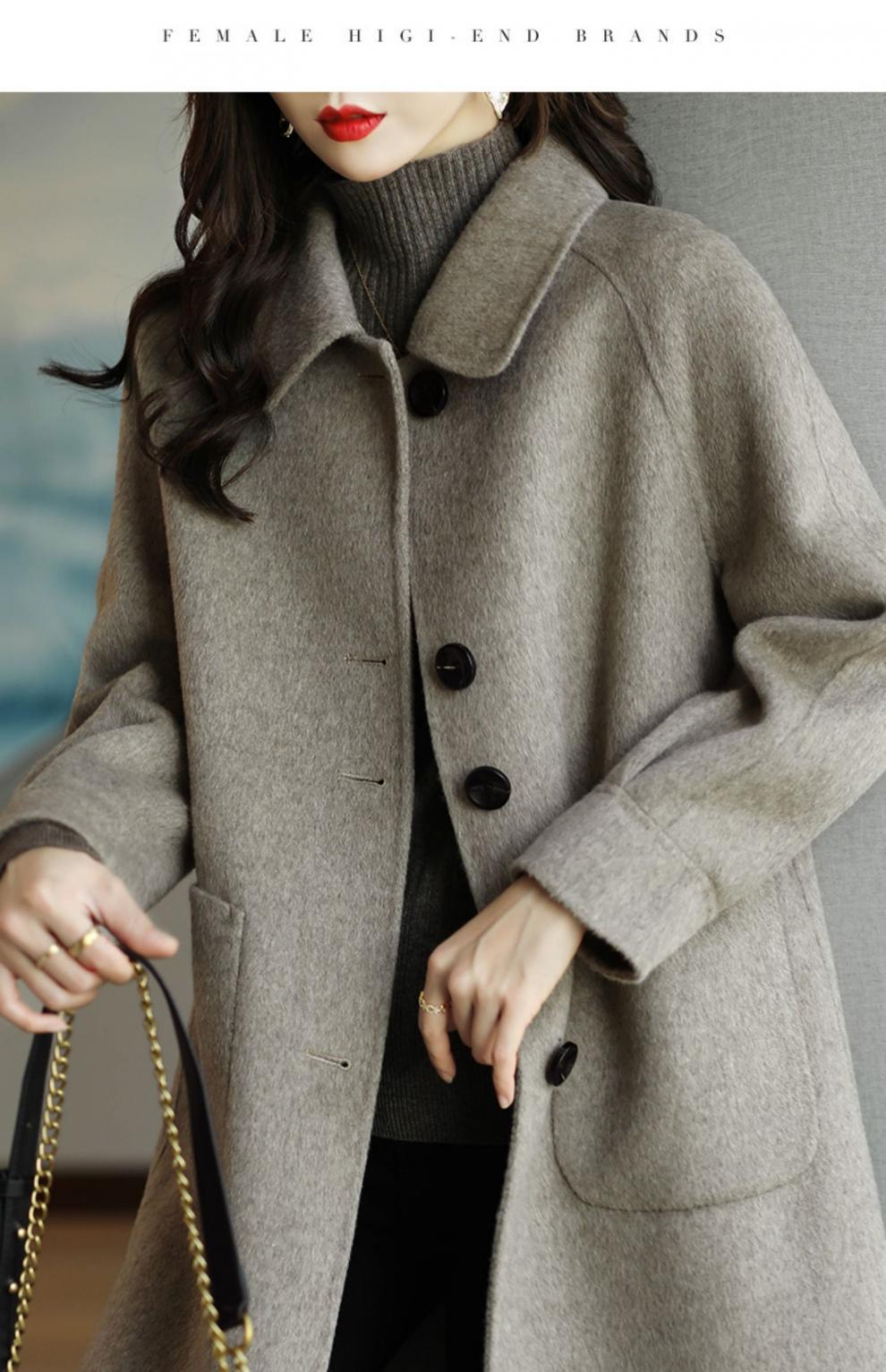 2024 년 가을과 겨울 새 중장 양모 코트 여성 고급 한국식 슬림형 캐시미어 양면 코트